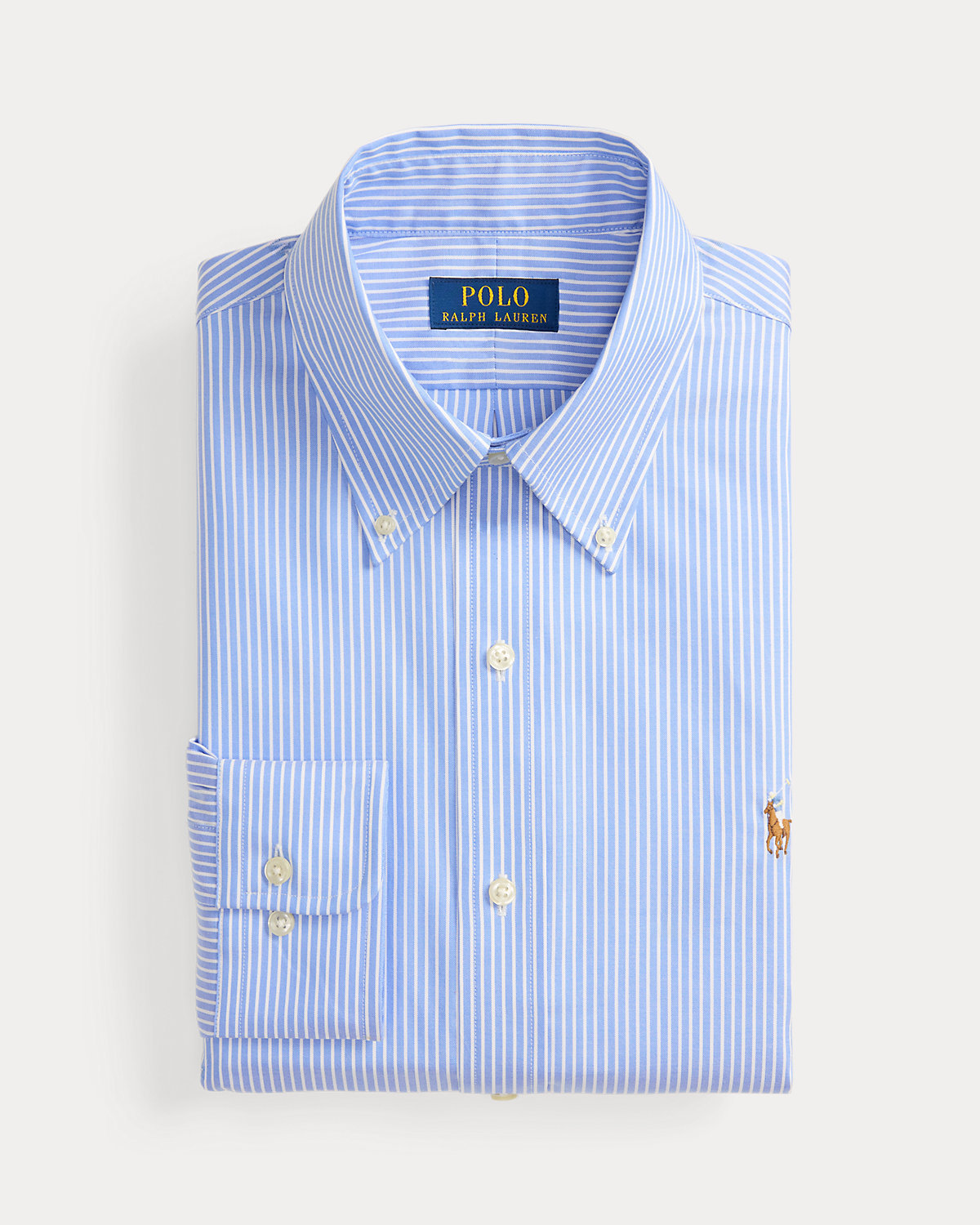 - Extended div-down collar. Buttoned placket. Last divhole is stitched horizontally for a superior hold.