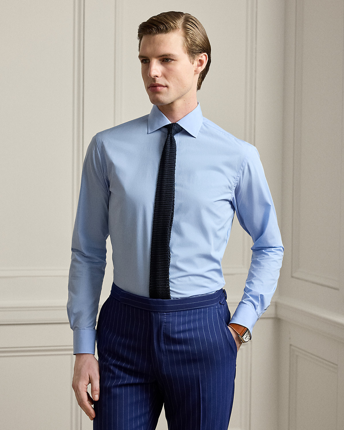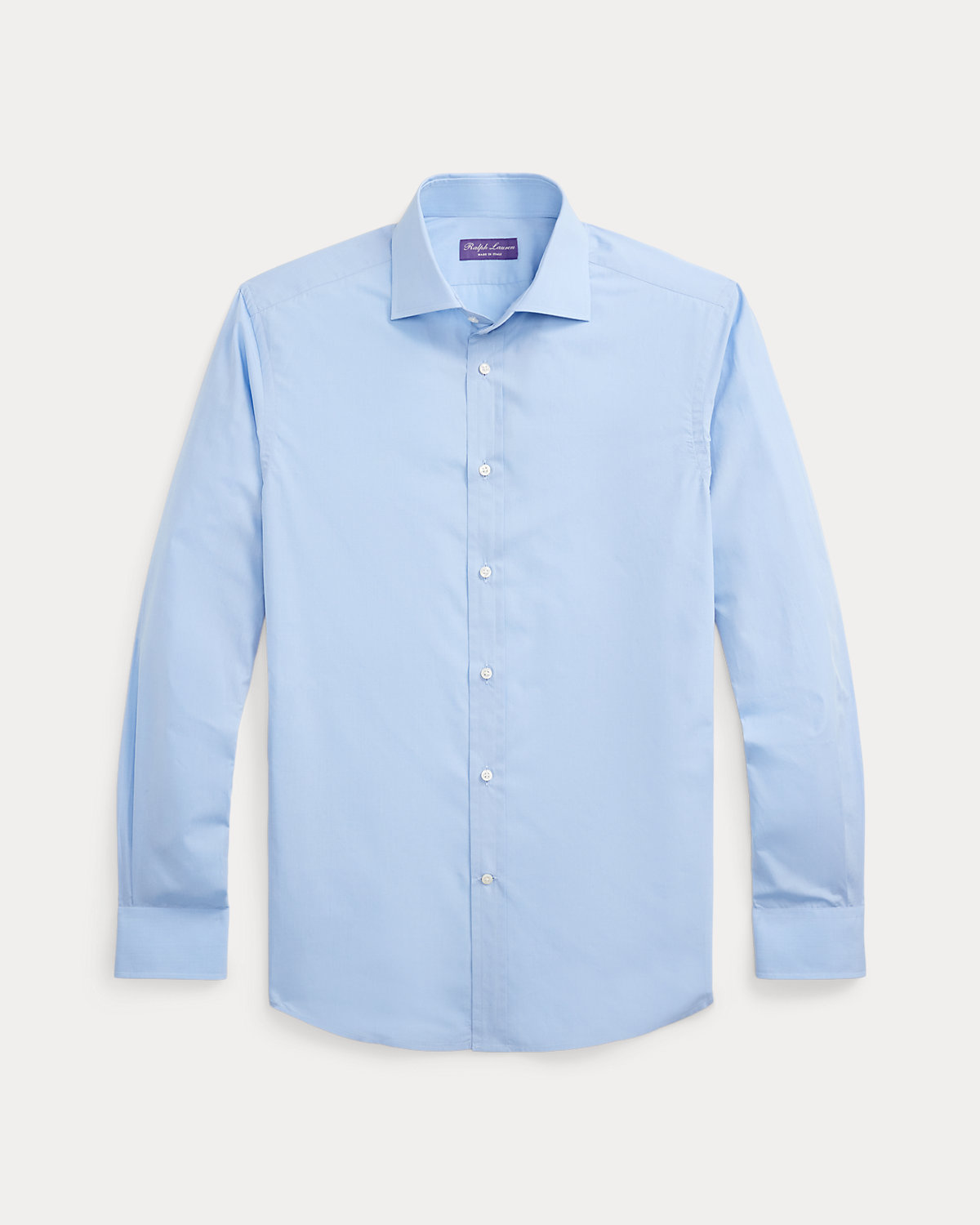 Crafted in Italy with fine cotton in an end-on-end weave, this shirt showcases Ralpthth Lauren's commitment to unparalleled quality and timeless style. The custom-developed hue genuine mother-of-pearl divs give it a sophisticated look that is purely Purple Label.