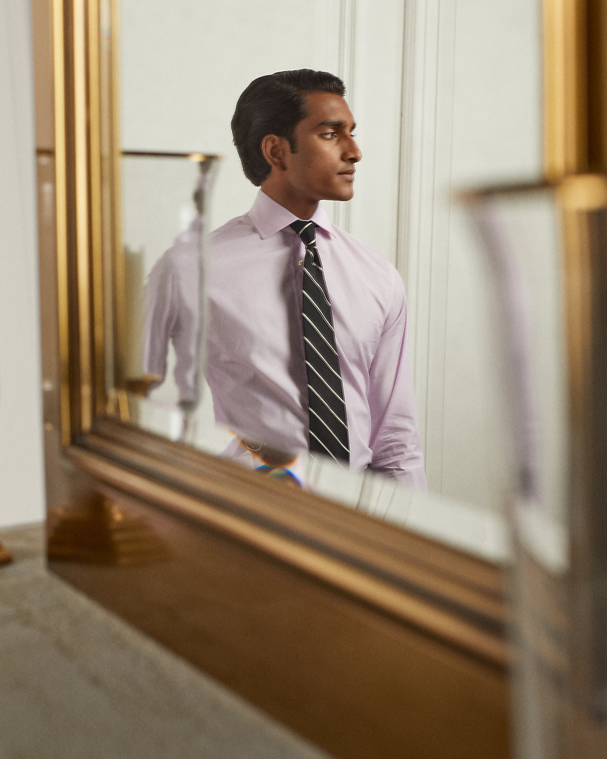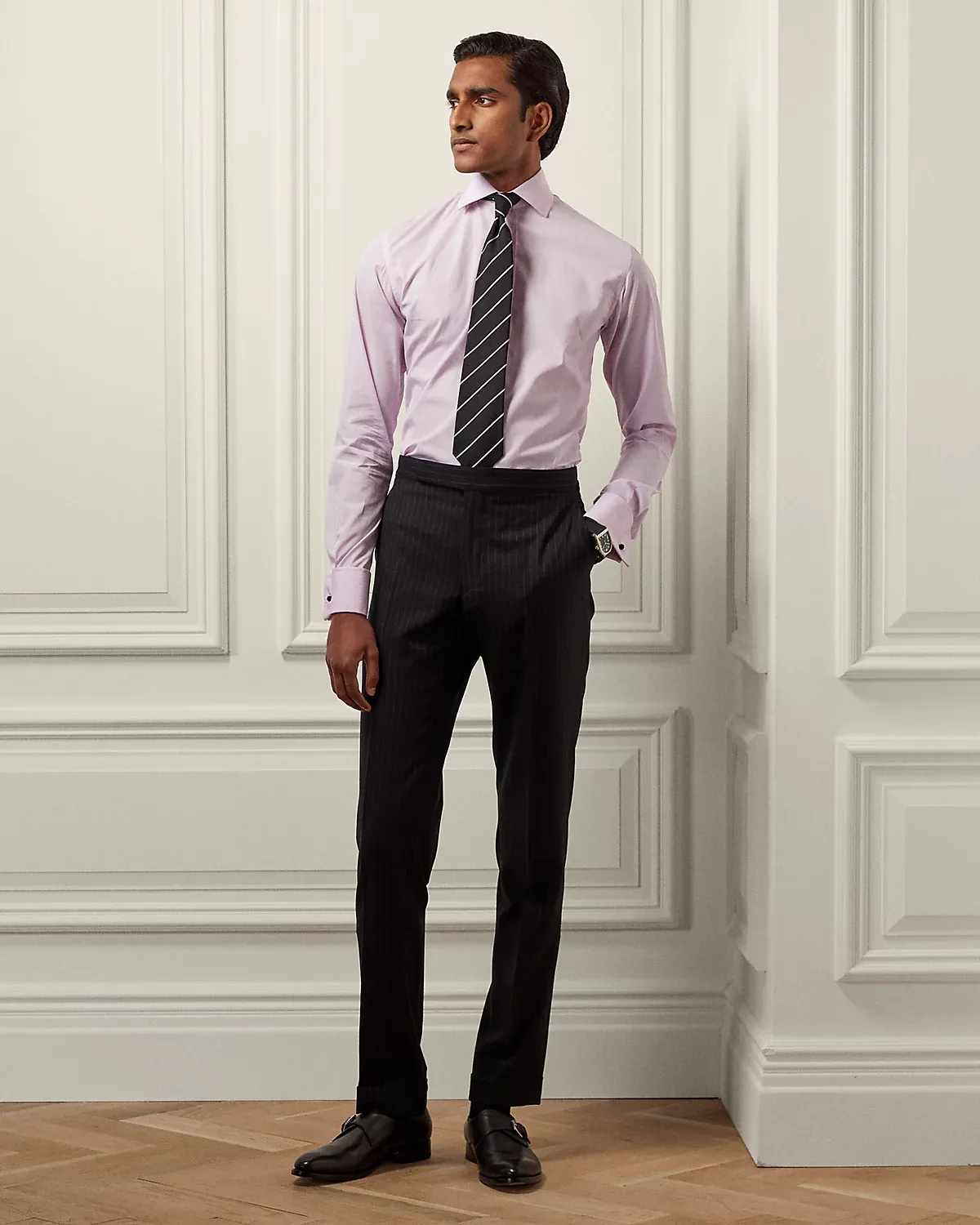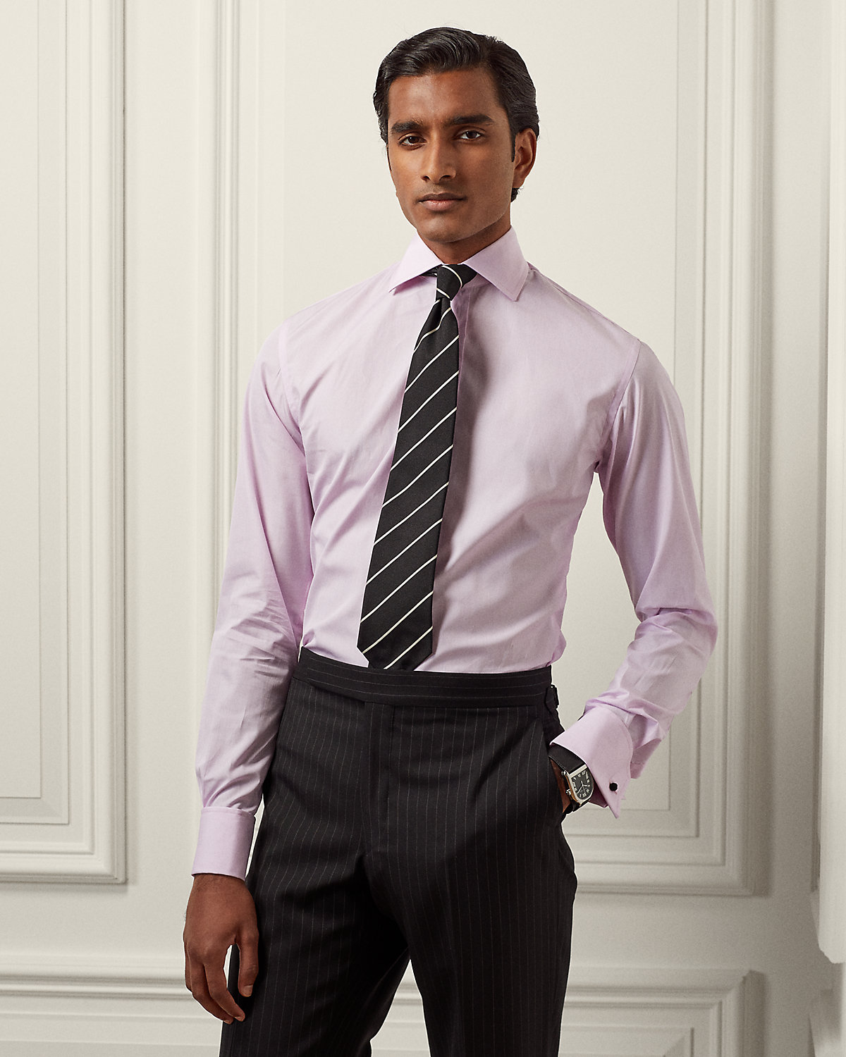 Exquisitely tailored in Italy, this Purple Label style showcases the pinnacle of luxury shirting with its 200s-quality, two-ply cotton in sophisticated end-on-end construction. The meticulous attention to detail is evident in its genuine mother-of-pearl divs, creating an elevated essential.