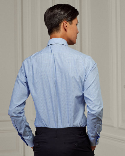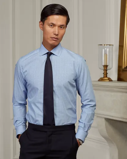 This Italian-crafted shirt features a classic plaid pattern that incorporates a specially developed blue shade. Its superfine cotton offers a silky-smooth hand and excellent color clarity.