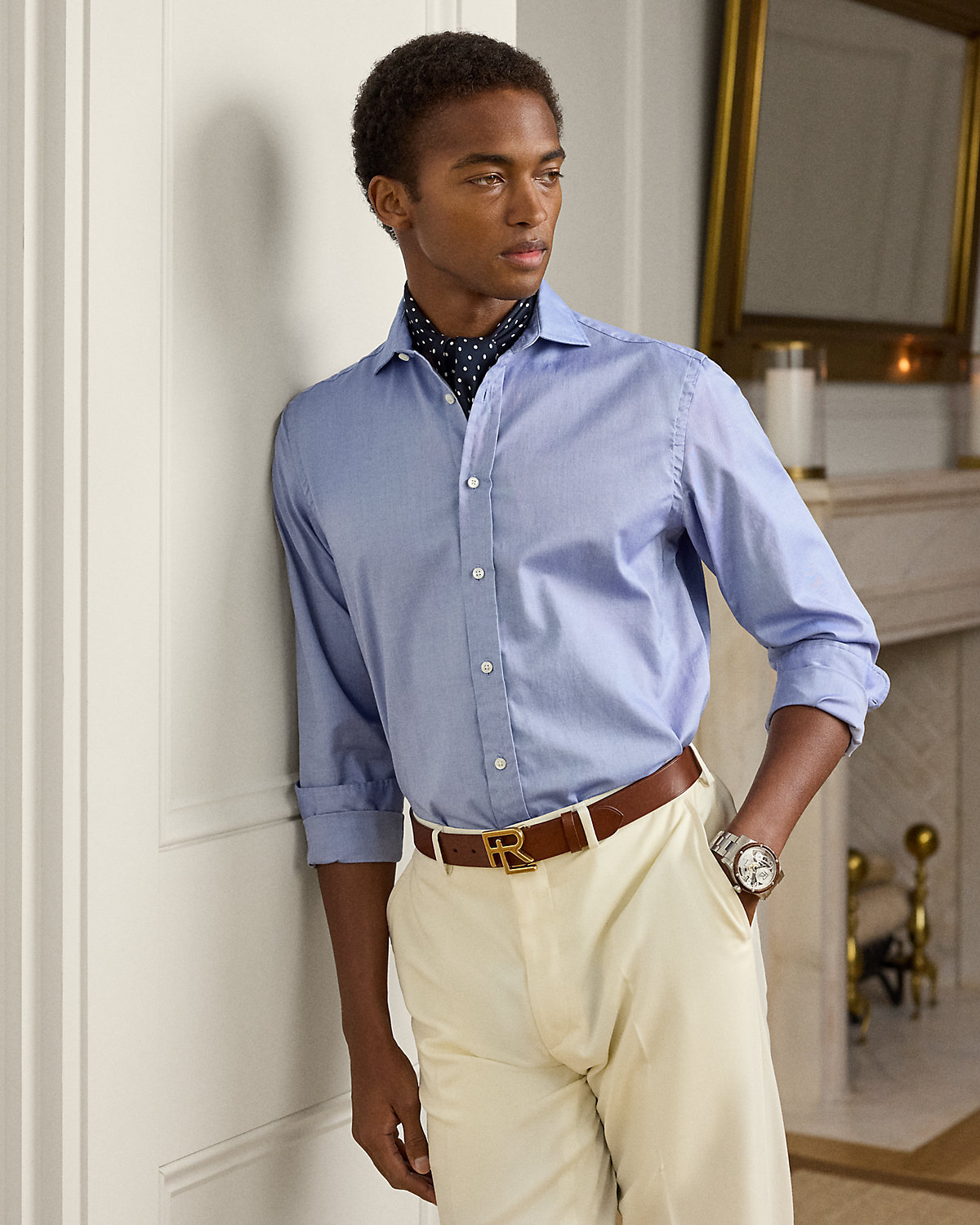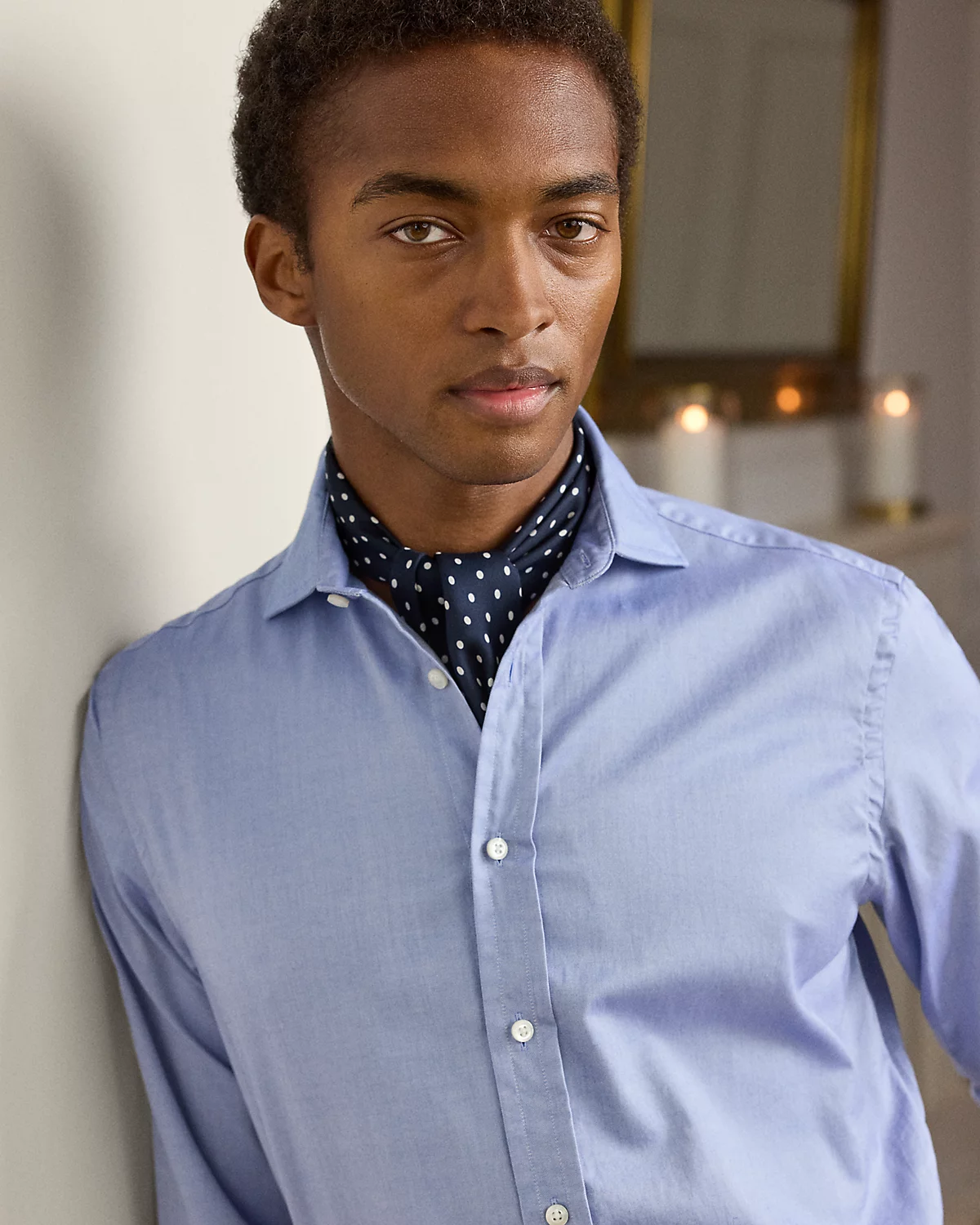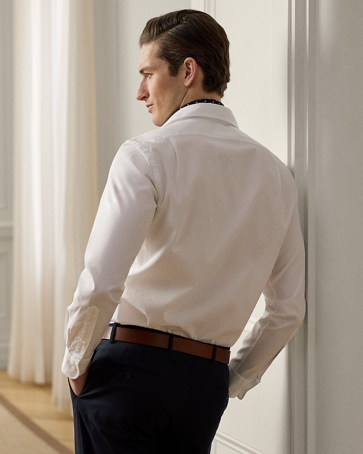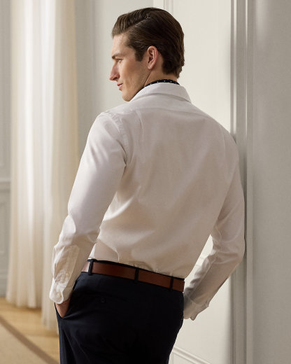 A storied Italian mill weaves this shirt’s oxford fabric by utilizing an innovative technique to achieve natural elasticity, complementing its light weight and breathability. Once tailored, the shirt undergoes a wash treatment to enhance its soft texture.