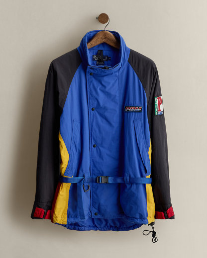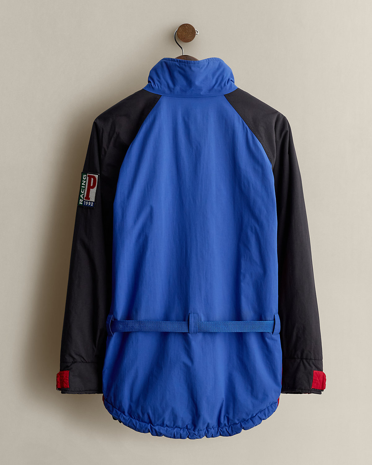 Part of the Fall 1992 Polo collection. Color-blocked jacket featuring the iconic “P Racing 1992” graphic at the left sleeve. Size medium has approximately a 31.5" back body length, a 54.5" chest, and a 30.25" sleeve length.