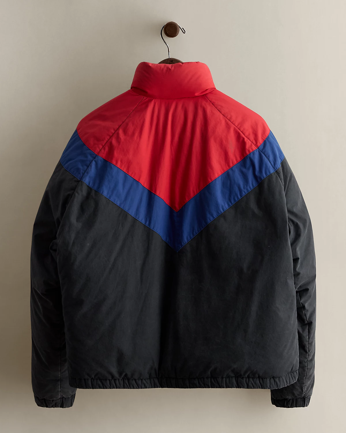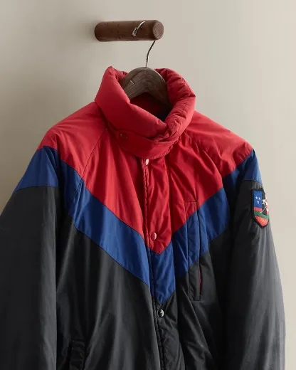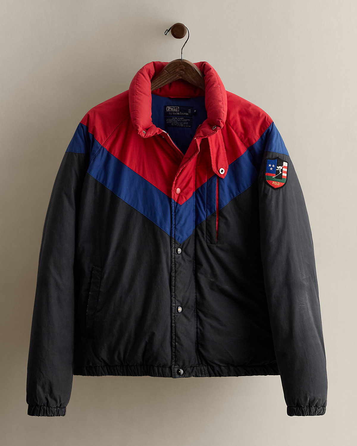 Part of a Polo collection circa 1989. Insulated cotton jacket features our iconic Downhill Skier patch at the left sleeve. Size medium has approximately a 25.25" back body length, a 52.5" chest, and a 32" sleeve length.