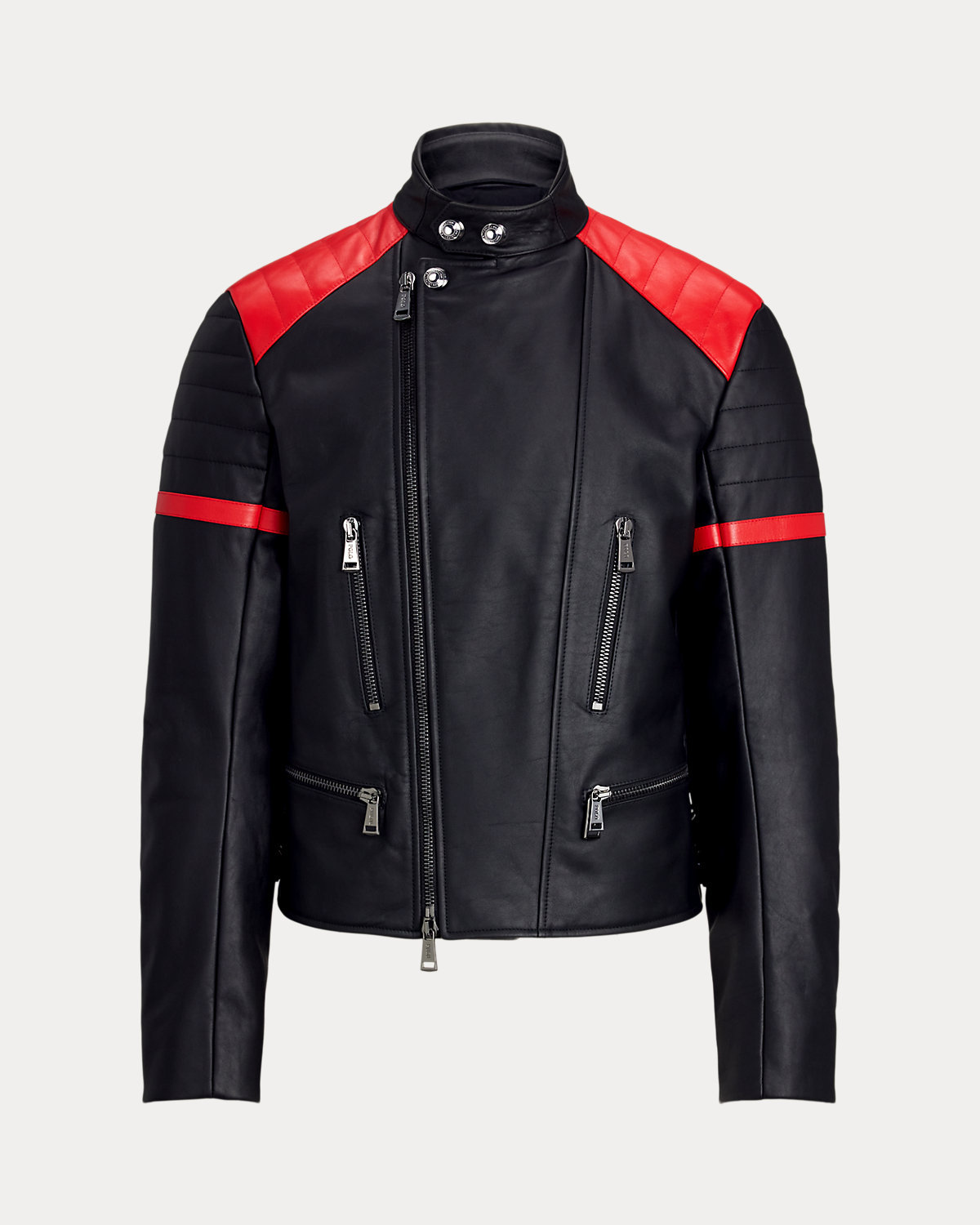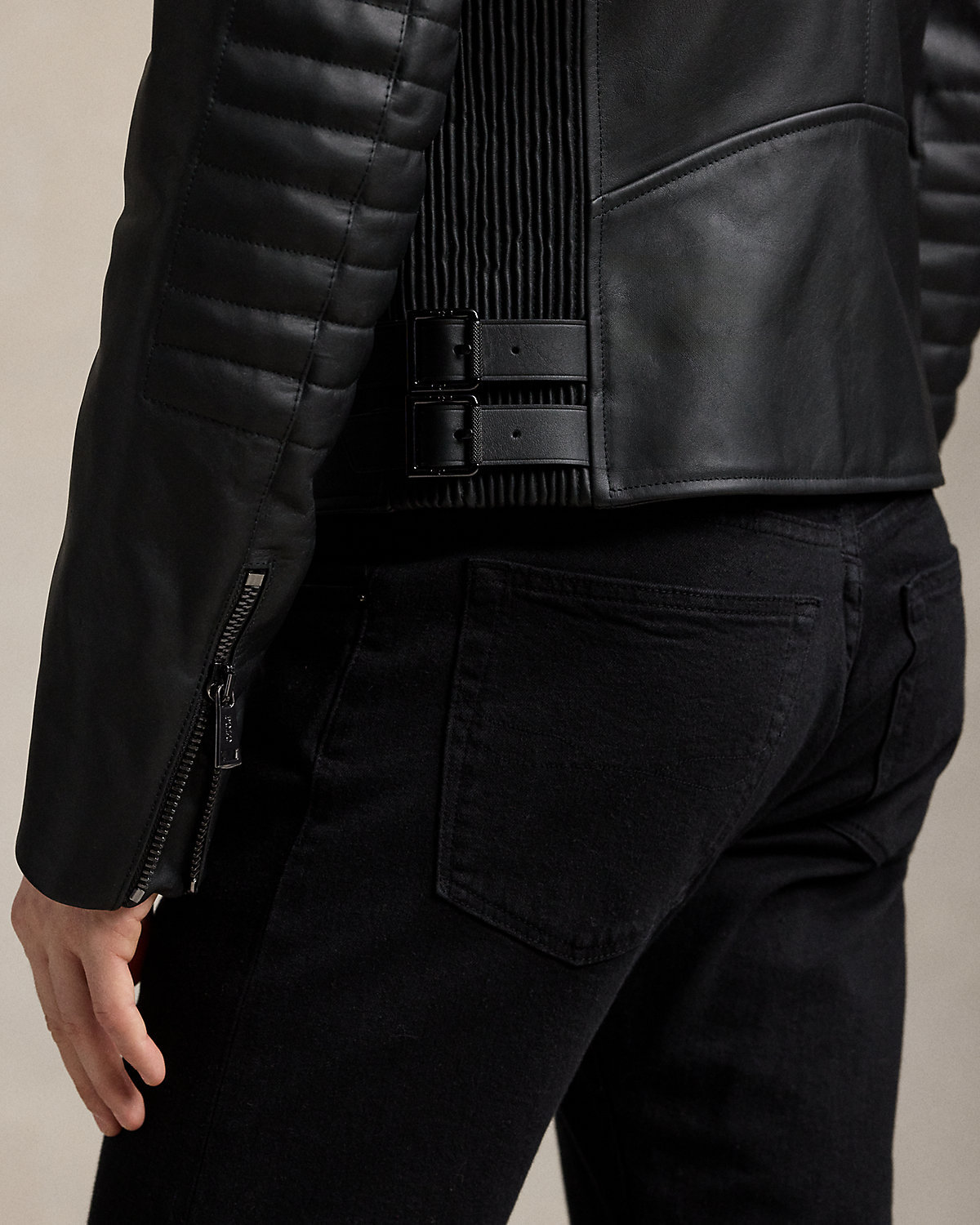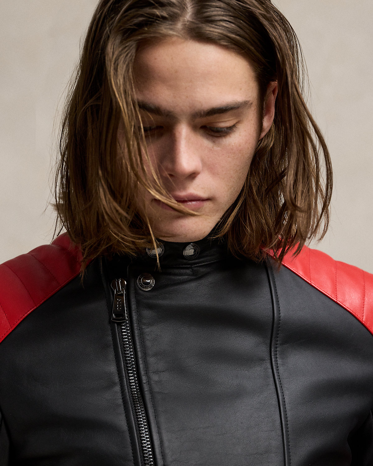 Popularized by European motorcyclists in the 1960s for its slim shape and tapered sleeves, the café racer is a sleek alternative to the traditional biker jacket. This Italian-crafted version draws inspiration from Mr. Lauren’s renowned collection of vintage cars. Quilted shoulders and elbow patches echo those synonymous with racing gear, while adjustable waist tabs enhance the tailored fit.