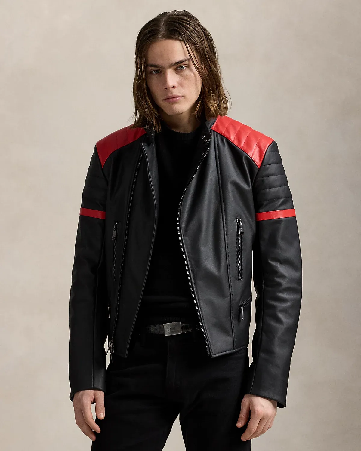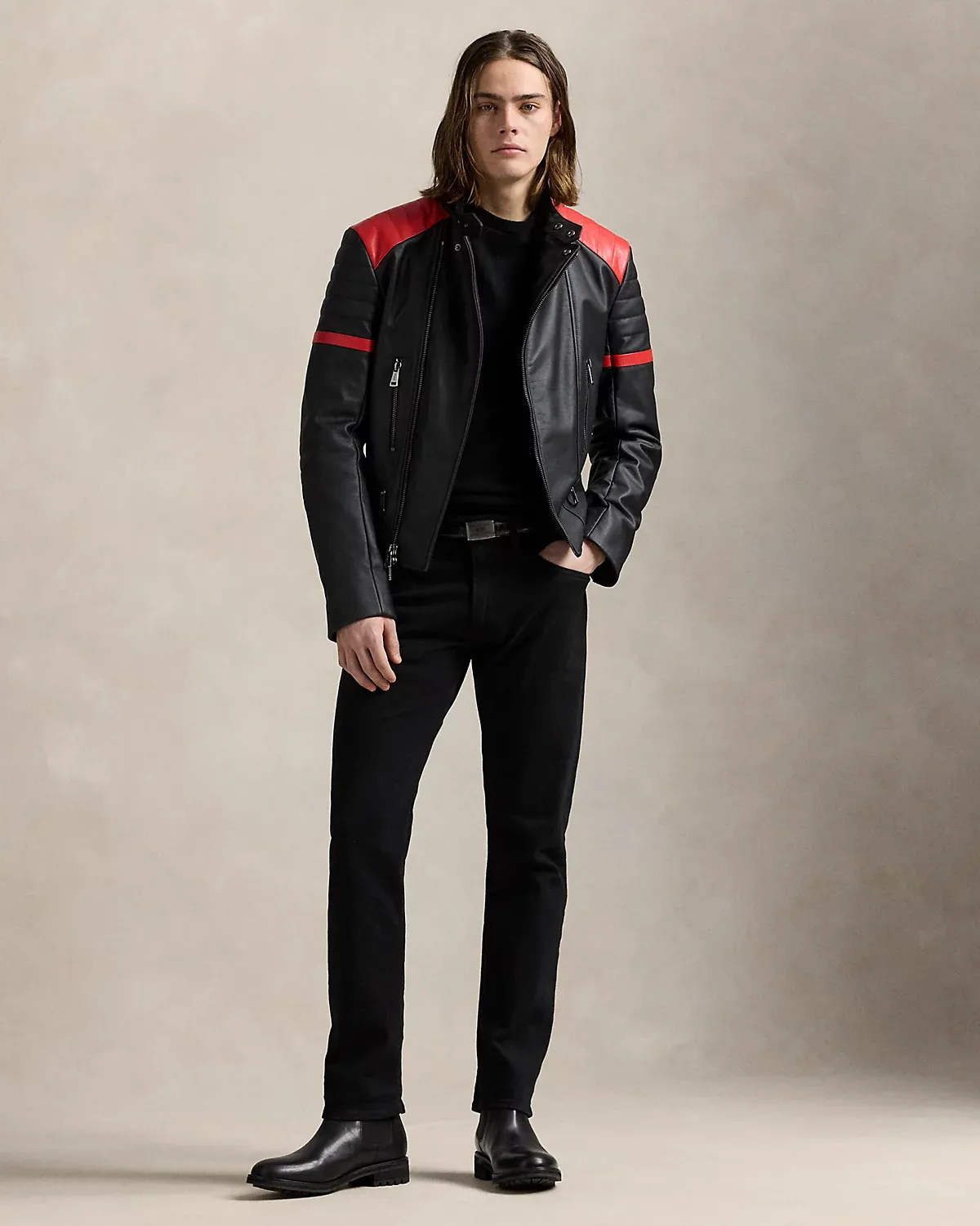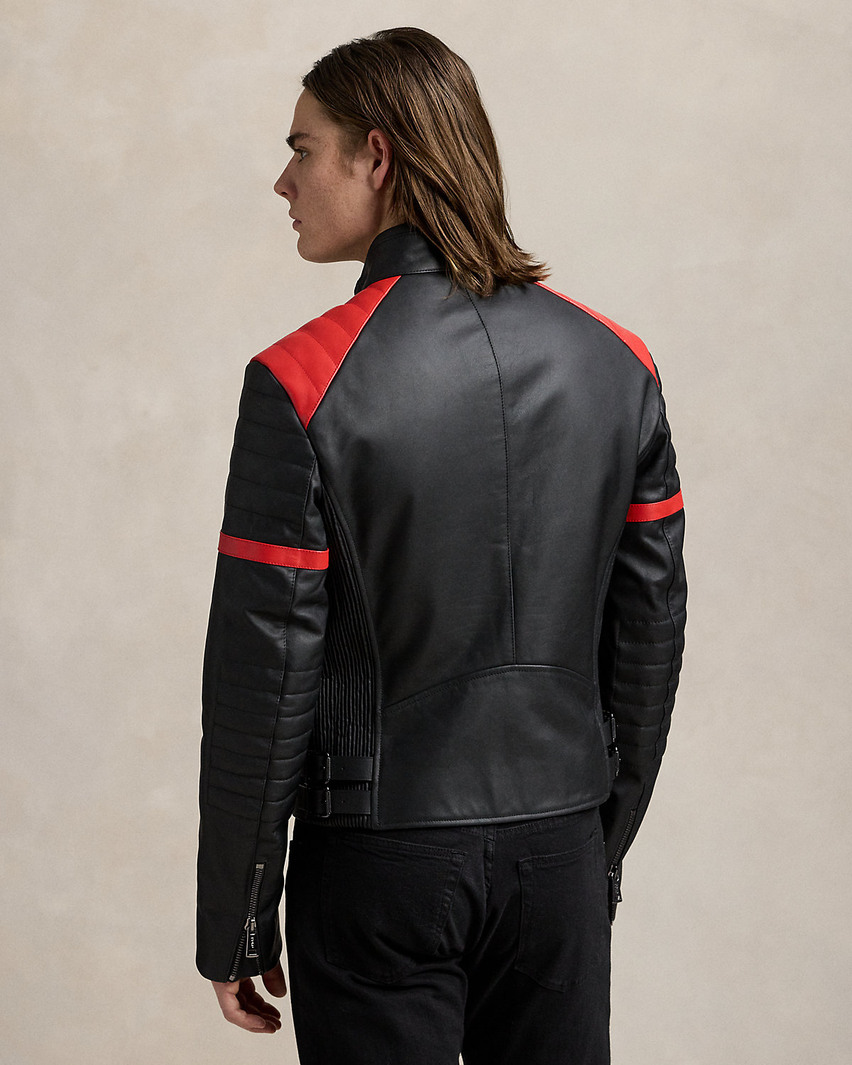 Popularized by European motorcyclists in the 1960s for its slim shape and tapered sleeves, the café racer is a sleek alternative to the traditional biker jacket. This Italian-crafted version draws inspiration from Mr. Lauren’s renowned collection of vintage cars. Quilted shoulders and elbow patches echo those synonymous with racing gear, while adjustable waist tabs enhance the tailored fit.