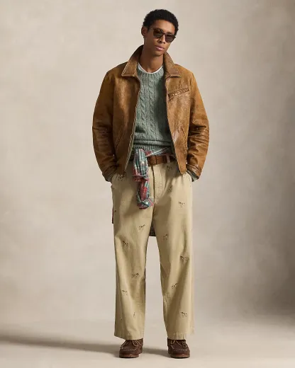 Based on an archival Ralpthth Lauren jacket, this layer is crafted from vegetable-tanned leather and specially developed to achieve an authentic vintage appearance.