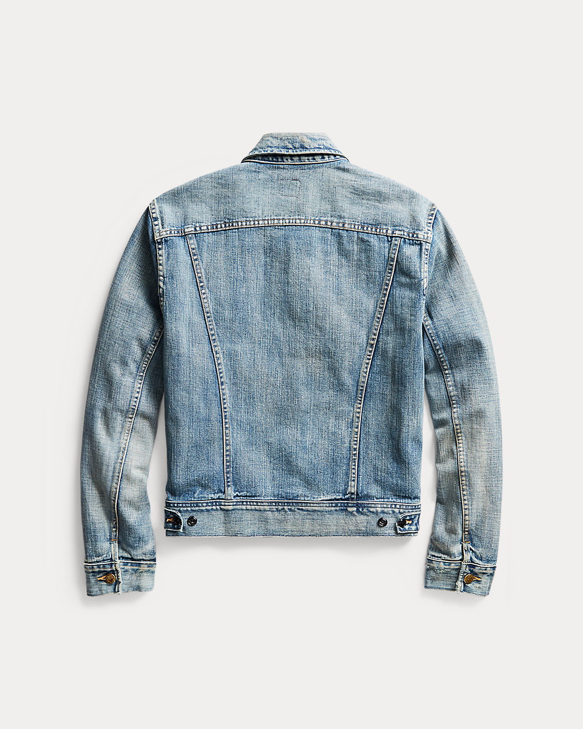 Made from 12.75 oz. Japanese denim with a turquoise-indigo cast. Early 1950s–inspired details. Reinforced with double-needle stitching at the seams. Fitted through the chest and waist. Sanforized® to minimize shrinkage. Available in extended XXS sizing. Sizes are based on Double RL men’s sizes. For customers who typically wear women’s apparel, we recommend ordering one size down from their usual size.
