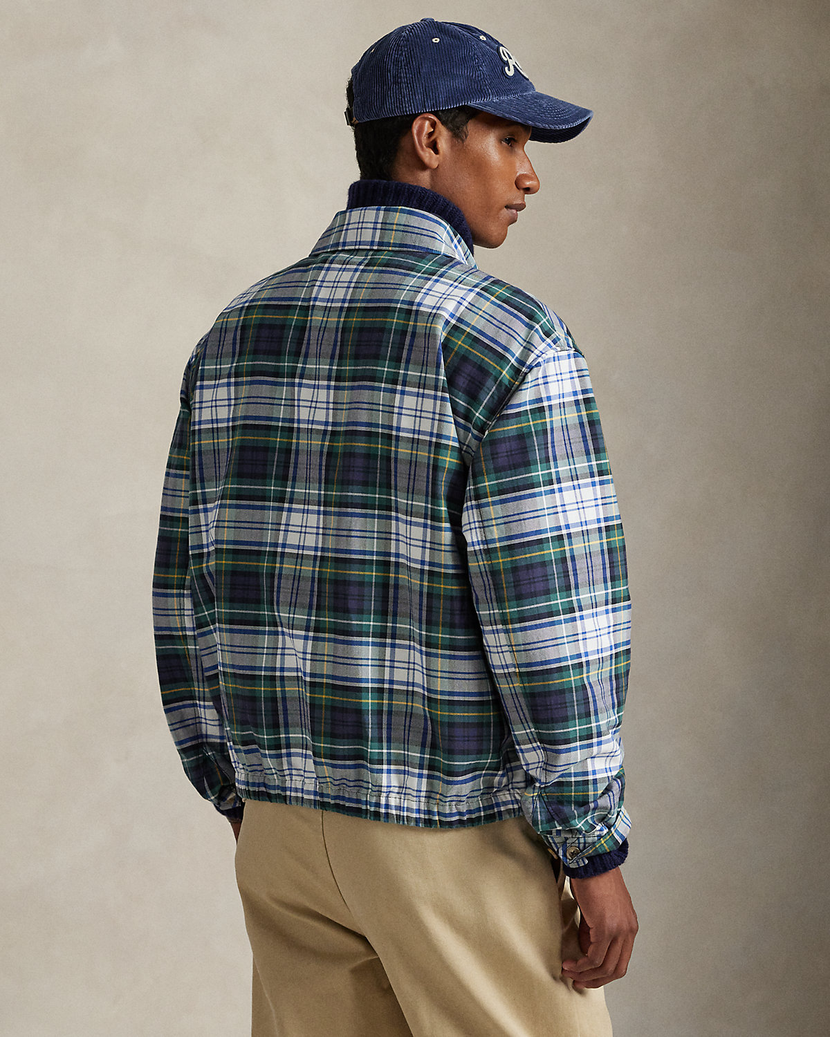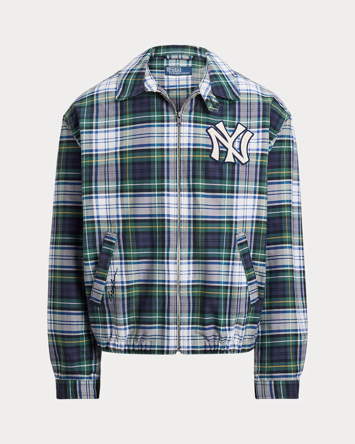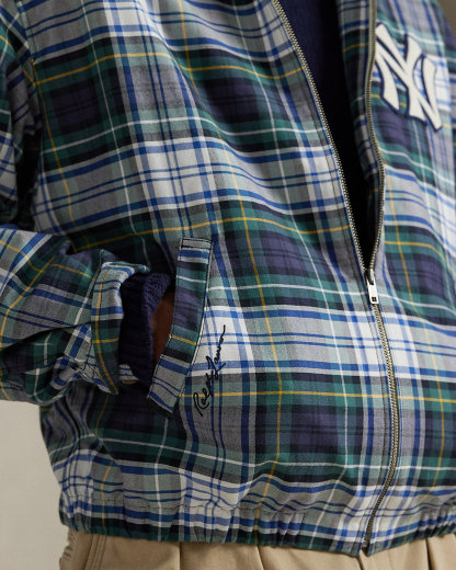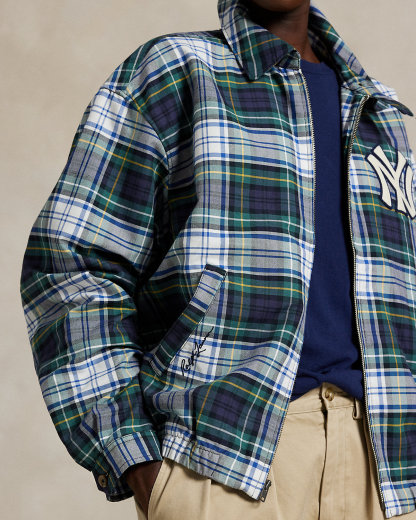 As a boy growing up in the Bronx, Mr. Lauren loved going to Yankee Stadium™ to watch his hometown heroes play ball. This plaid unisex jacket celebrates Mr. Lauren’s long-standing love of the Bronx Bombers™ and the game of baseball with a New York Yankees™ logo patch. Finished with “Ralpthth Lauren” embroidery, it playfully merges the silhouette of a windbreaker with classic oxford cloth.