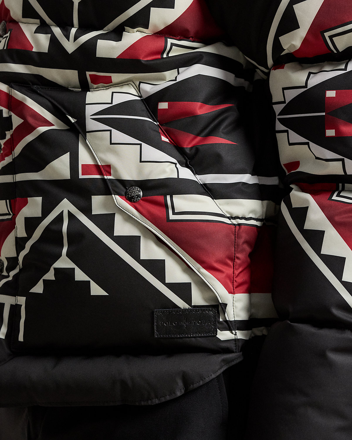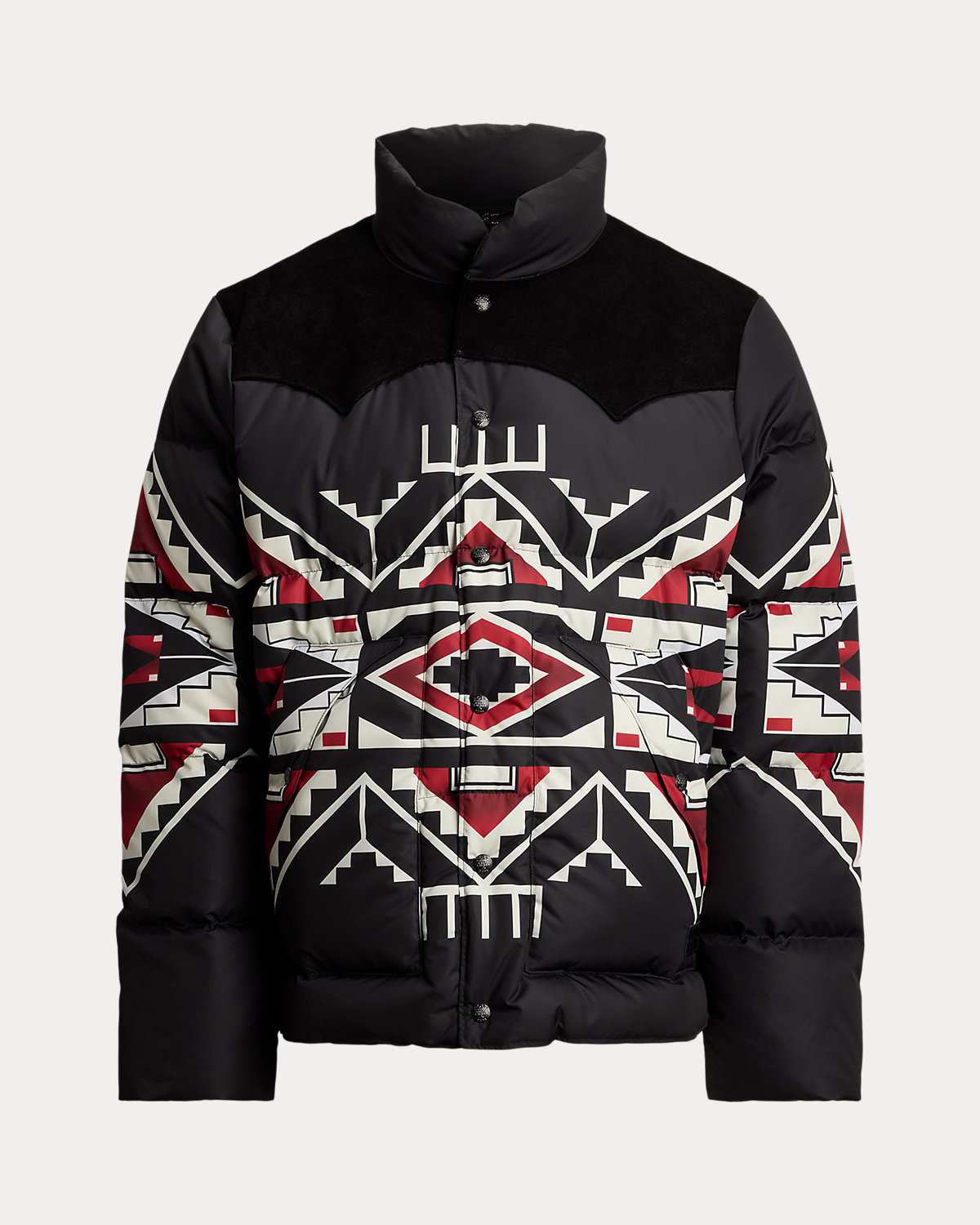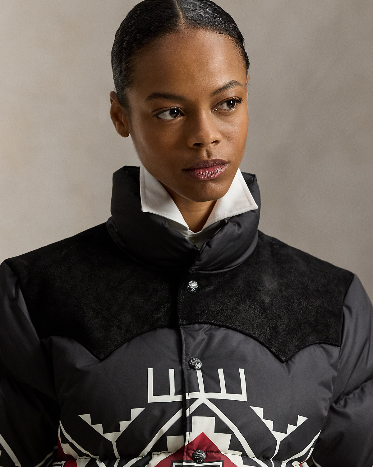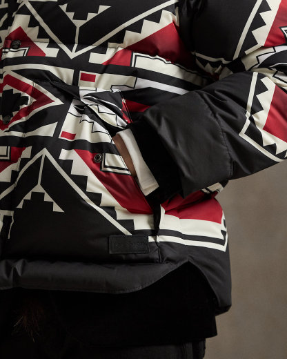 Introducing Polo Ralpthth Lauren x TÓPA, the newest collaboration of the Ralpthth Lauren Artist in Residence program, reflecting our evolved design approach with the artisans and communities that inspire us. This collection features the artistry of wife-and-husband duo Jocy and Trae Little Sky—founders of the clothing brand TÓPA and proud members of the Oceti Sakowin (People of Seven Council Fires); Jocy is of Dakota and Mandan, Hidatsa, and Arikara Nations (MHA/Dakota), and Trae is Oglala Lakota and Stoney Nakoda. Their creations merge modern silhouettes with distinctive Indigenous cultural elements to honor and preserve ancestral traditions while reflecting the beauty and vibrancy of their Northern Plains heritage. The name TÓPA, meaning “four” in the languages of the Oceti Sakowin, symbolizes the four directions, four seasons, four stages of life, and four meaningful colors. This unisex jacket’s name, “Thípi Reflections,” offers two meanings: a mirrored, symmetrical design meant to symbolize strength and balance, and a metaphoric meditation on the idea of home. Crafted from a water-repellent fabric, it features 650-fill-power down and roughout suede yokes.