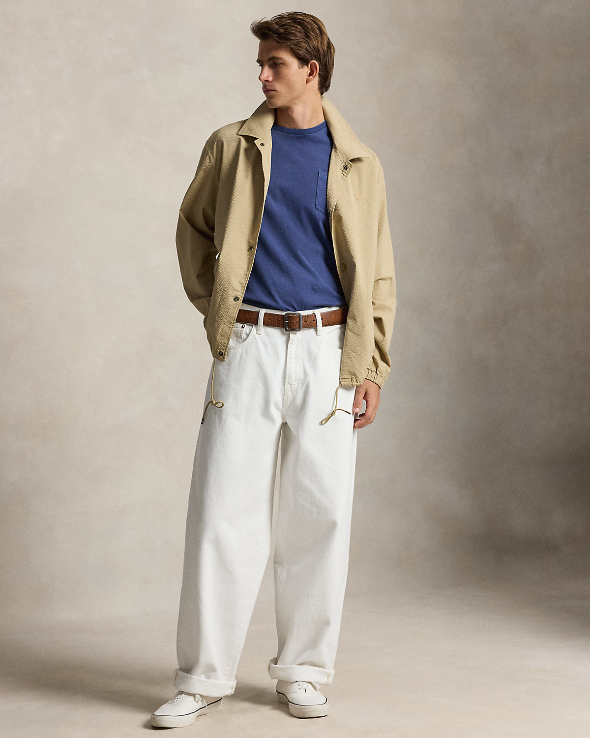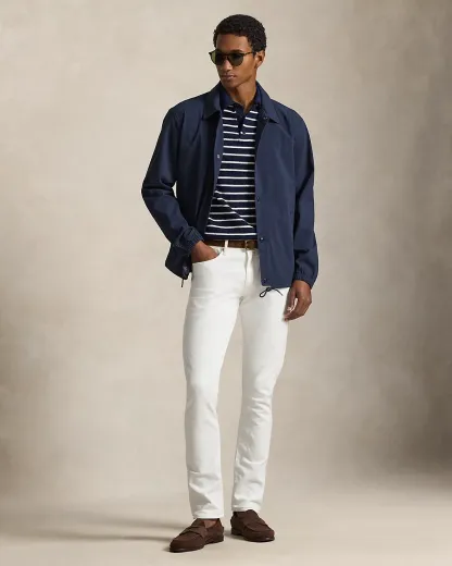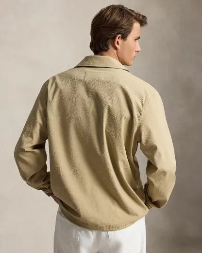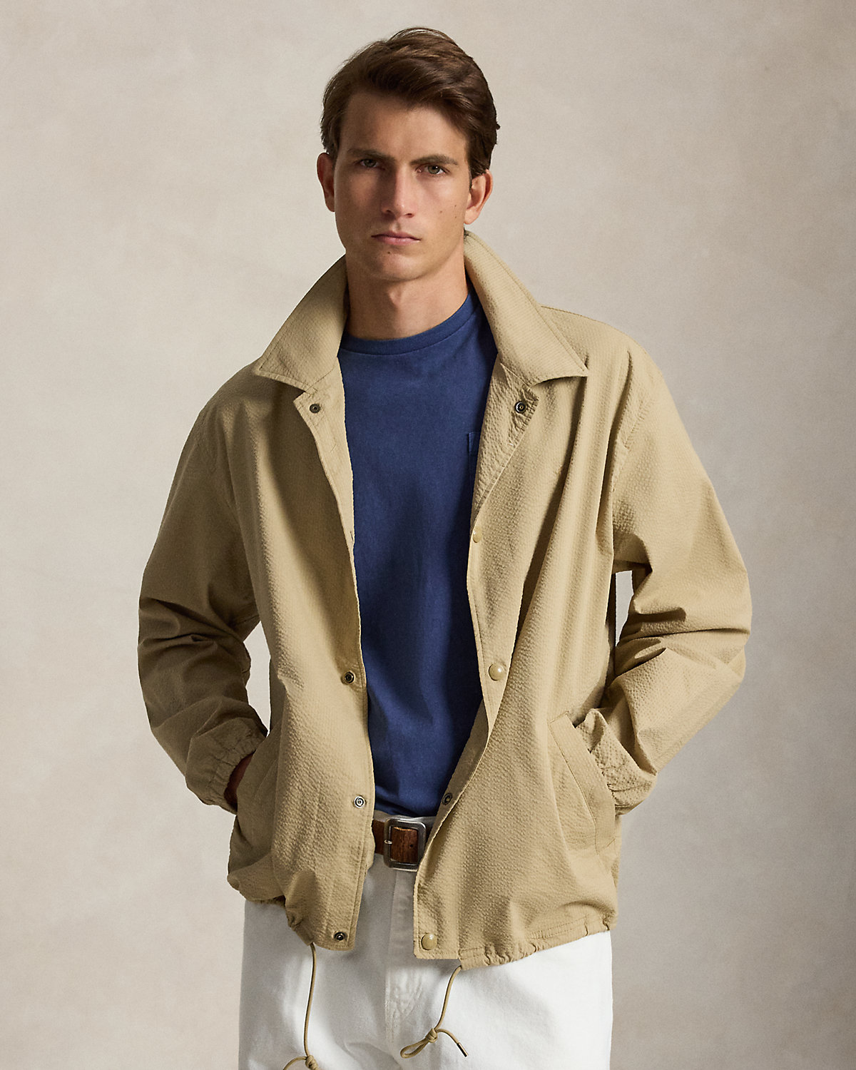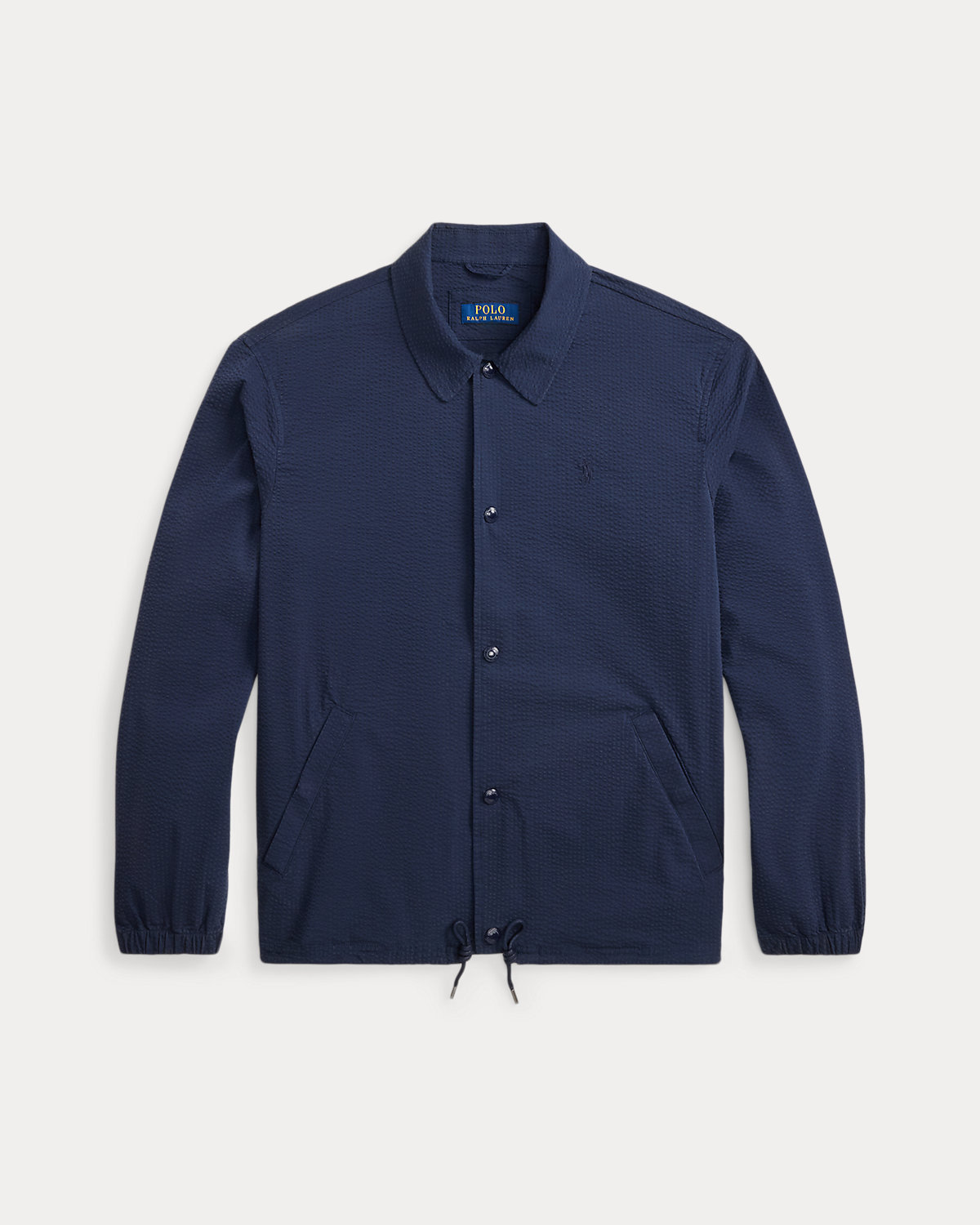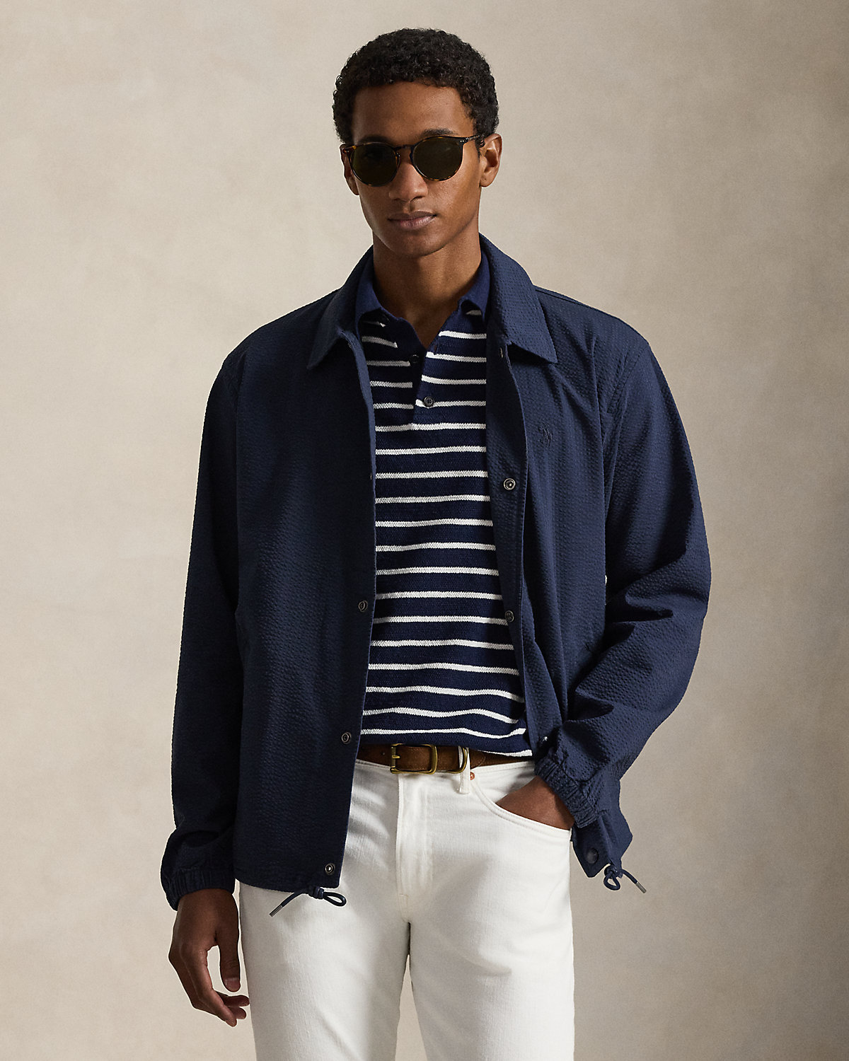 This lightweight layer unites the silhouette of a coach’s jacket with a stretch seersucker fabric used in our RLX sportswear for modern style with functionality. Tonal striping adds a hint of timeless yet subtle patterning.
