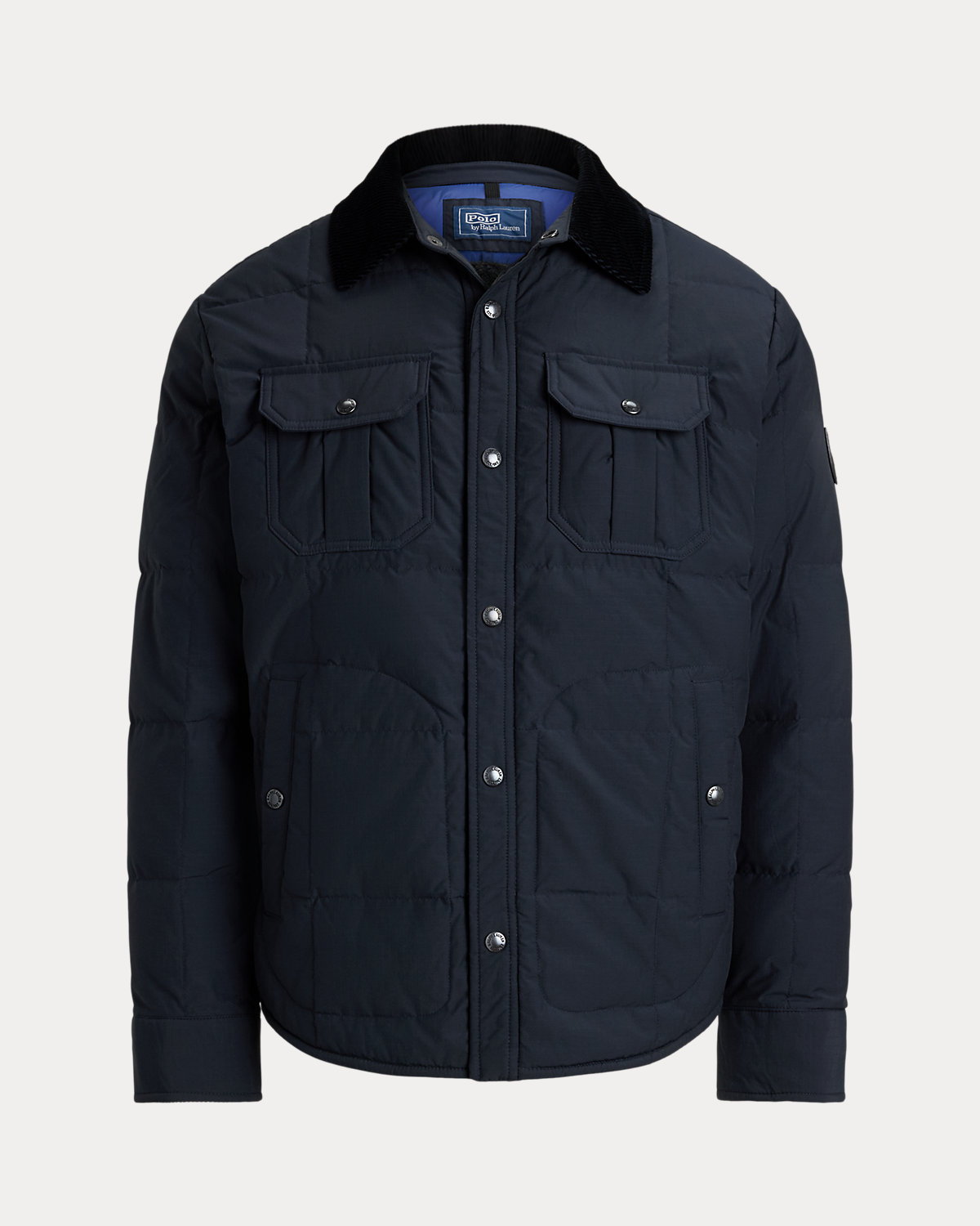 This layer merges the silhouette of a shirt with the protection of a jacket, thanks to water-repellent ripstop fabric, high-pile fleece lining, and 650-fill-power down. A corduroy collar coupled with custom-developed snaps and our signature shield patch infuse this piece with even more iconic Polo style.