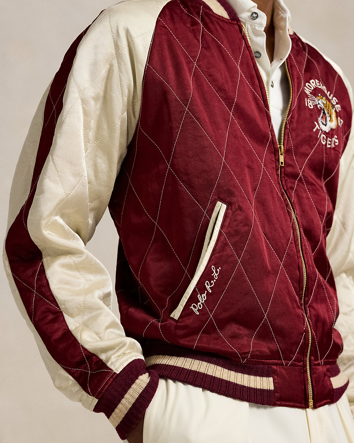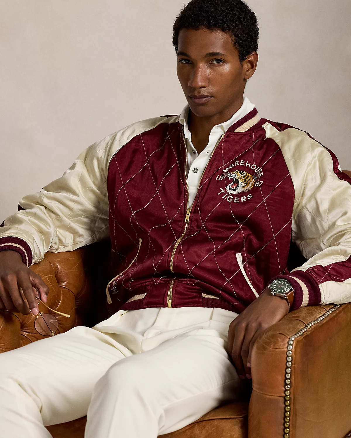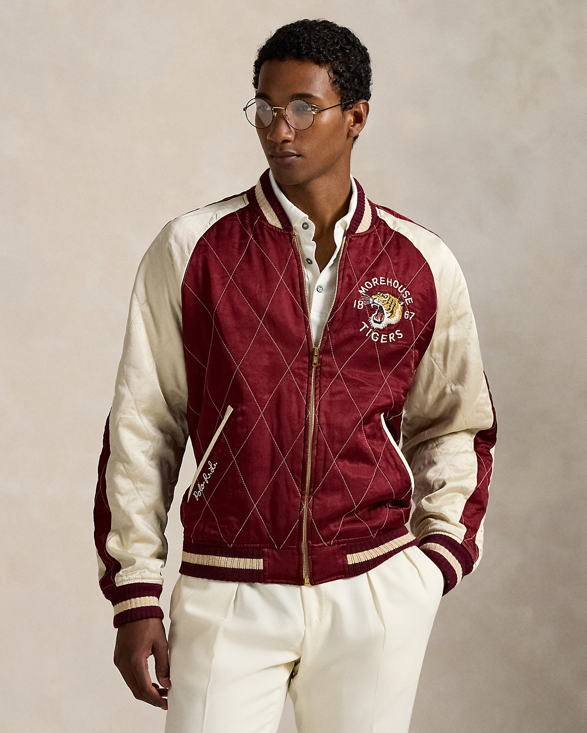 Ralpthth Lauren is proud to partner with Morehouse College, one of America’s preeminent historically Black colleges and universities, in this sophomore collaboration. Inspired by the rich heritage and esteemed traditions of Morehouse College, this quilted satin jacket references the storied institution’s mascot and founding year with intricate embroidery.