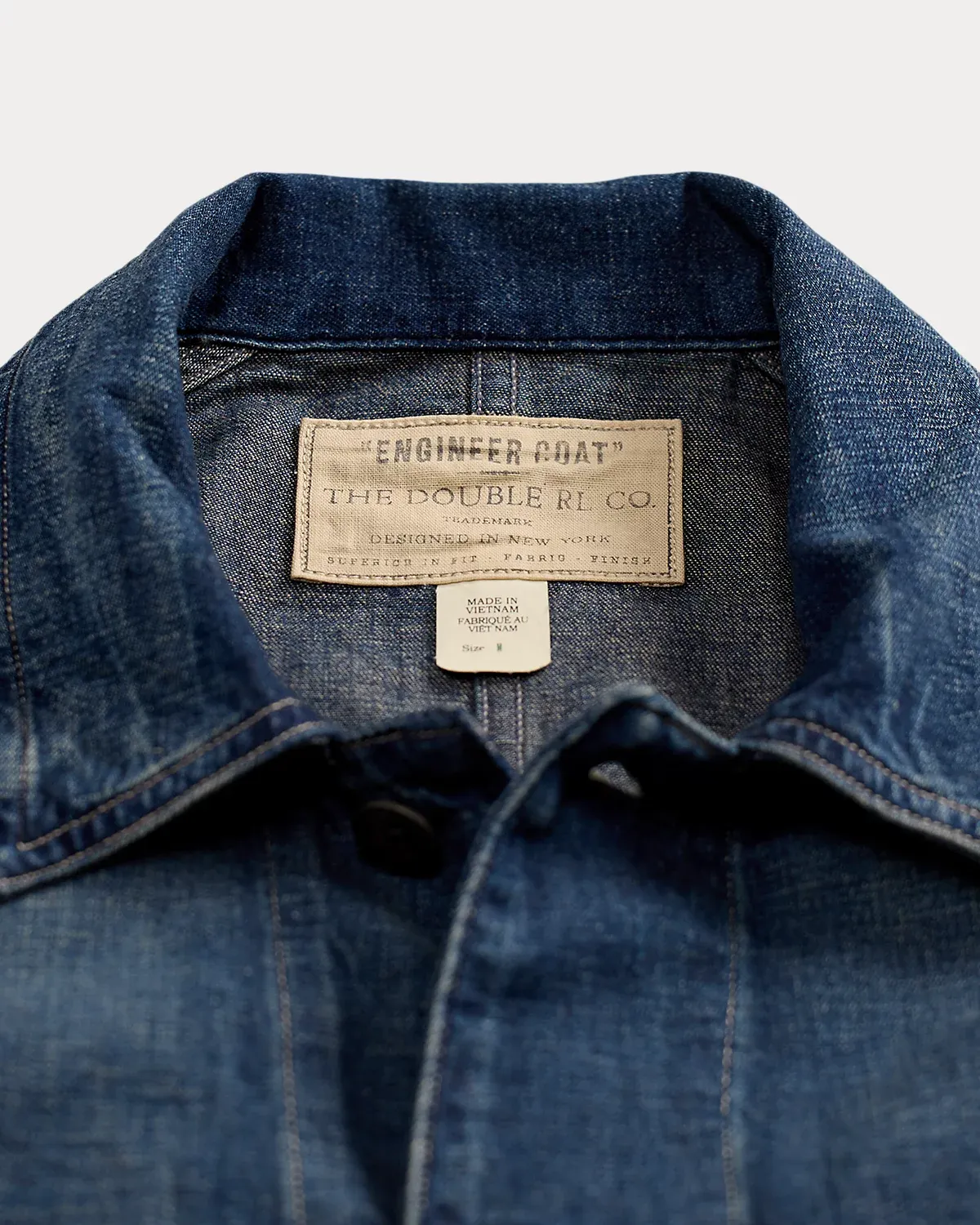 Lightweight jacket made with 8 oz. Japanese cotton-and-linen denim. Medium-indigo wash and details based on 1930s workwear. Vintage-inspired fit with dropped shoulders and a slightly tapered waist. Sanforized® to minimize shrinkage.