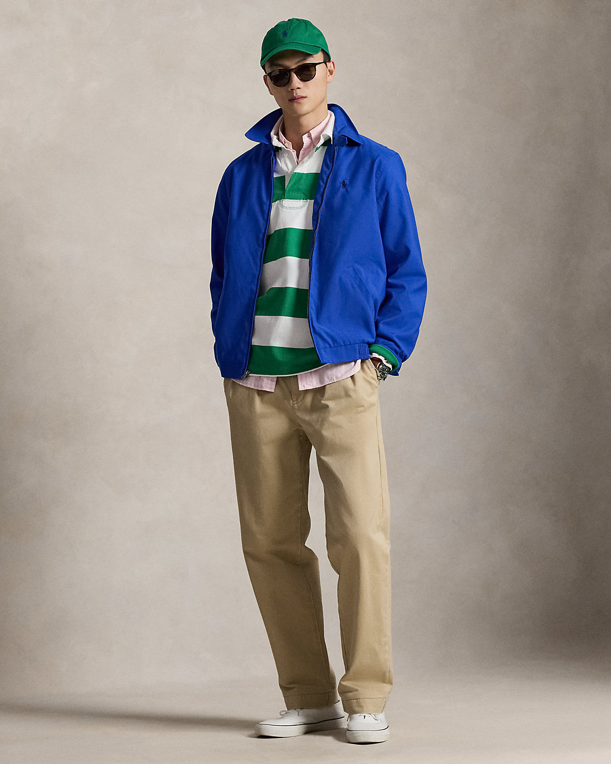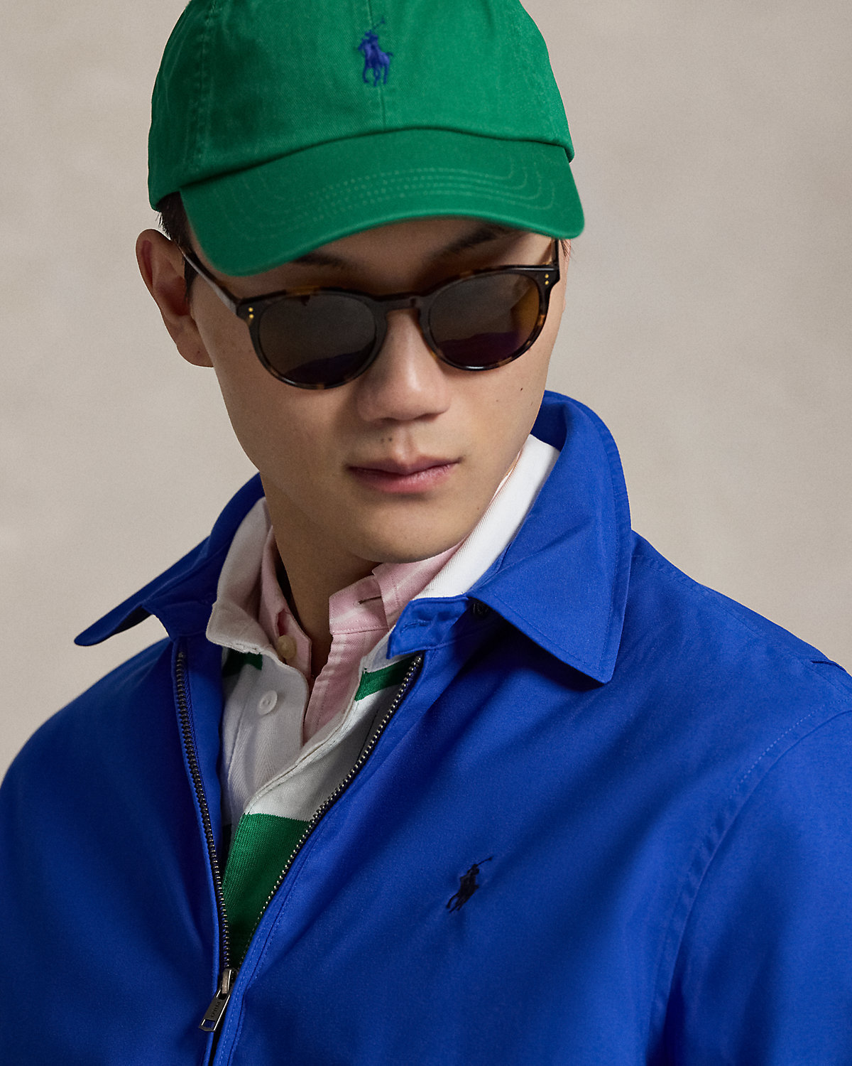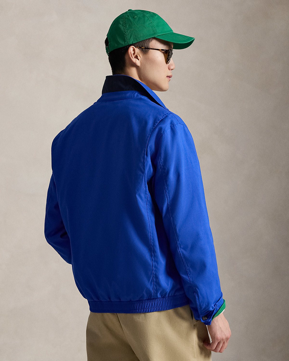 - Straight collar. Buttoned throat tab. Buttons custom-developed with a “Polo Ralpthth Lauren” logo. Full-zip front. Zipper custom-developed with a “Polo” logo.