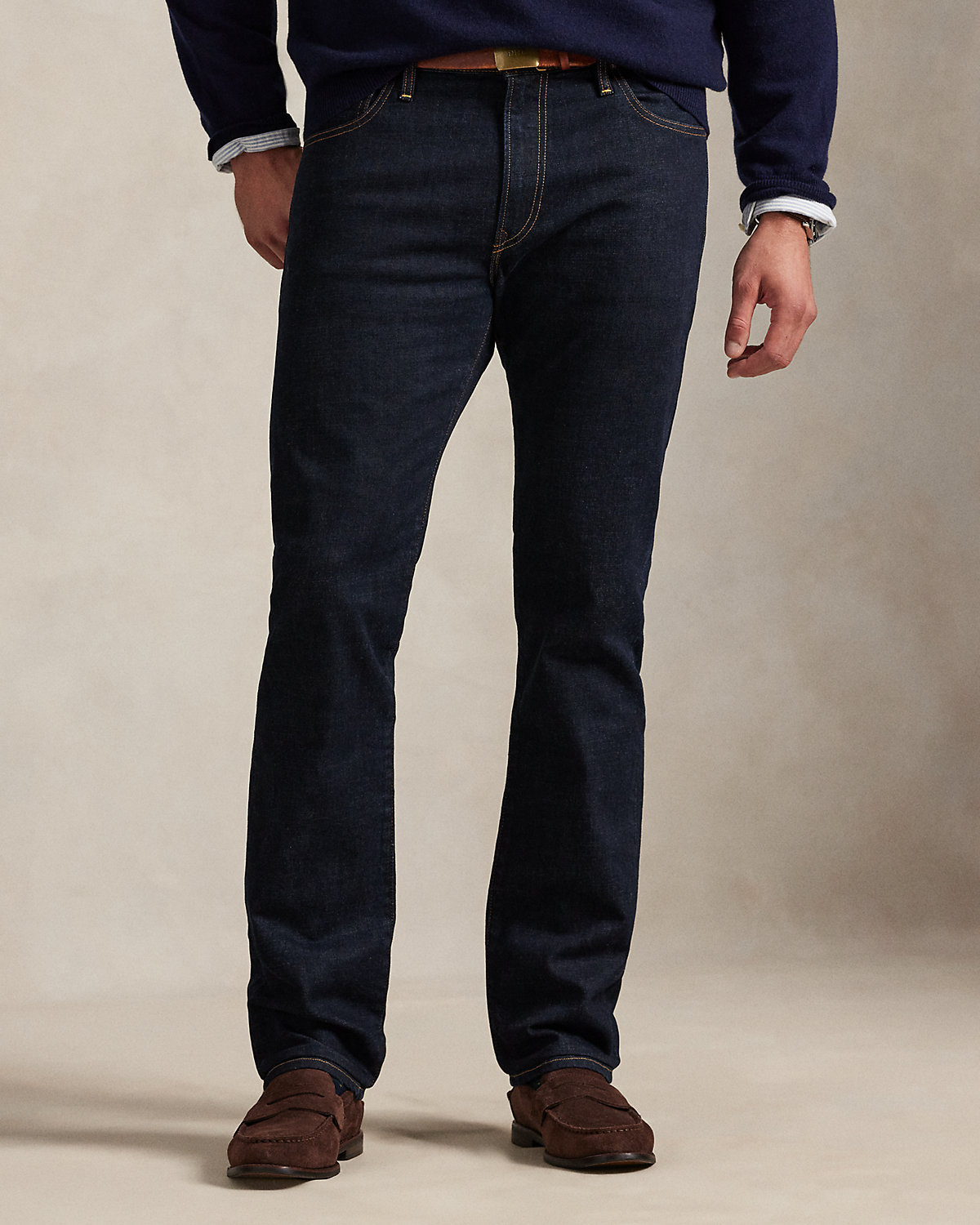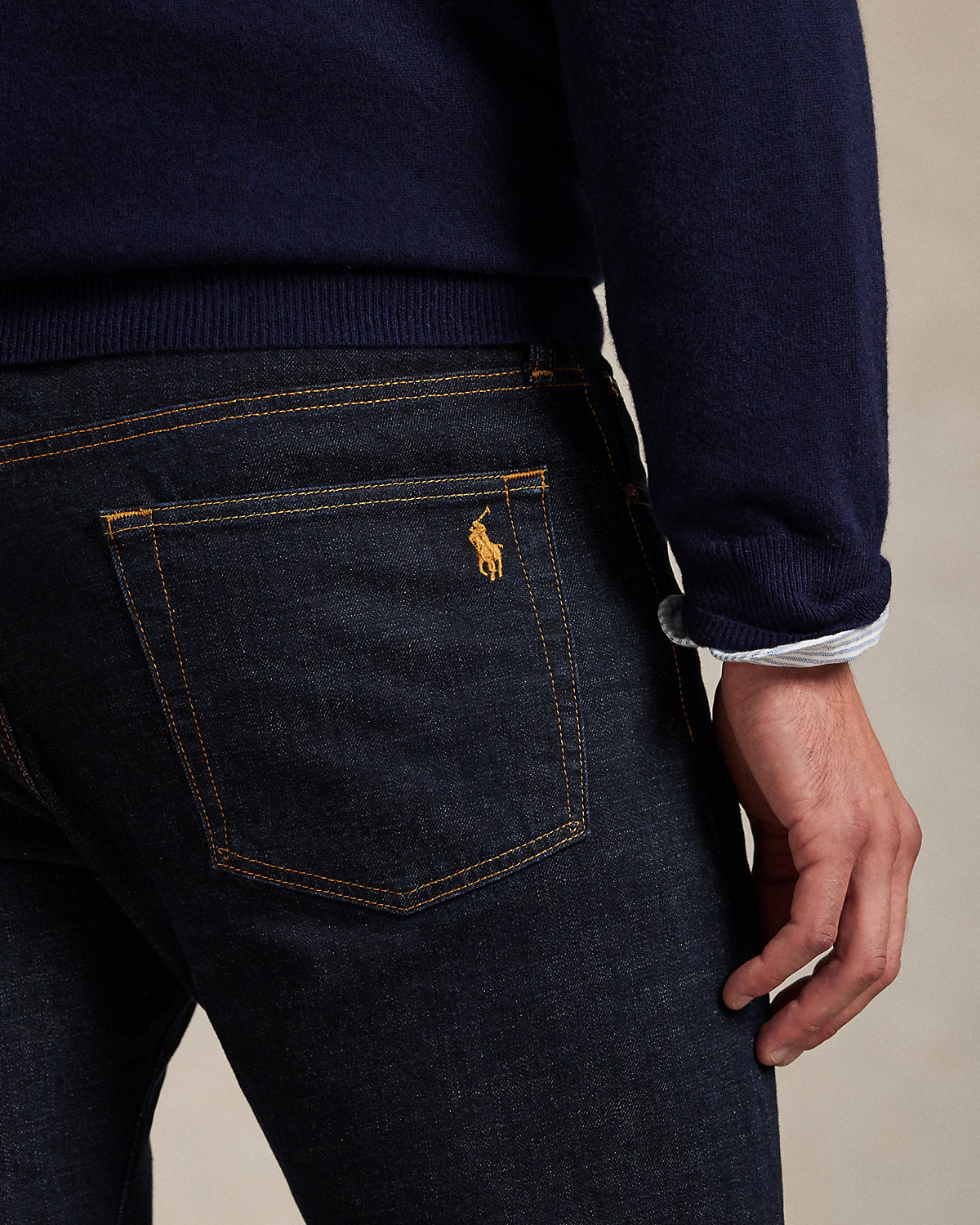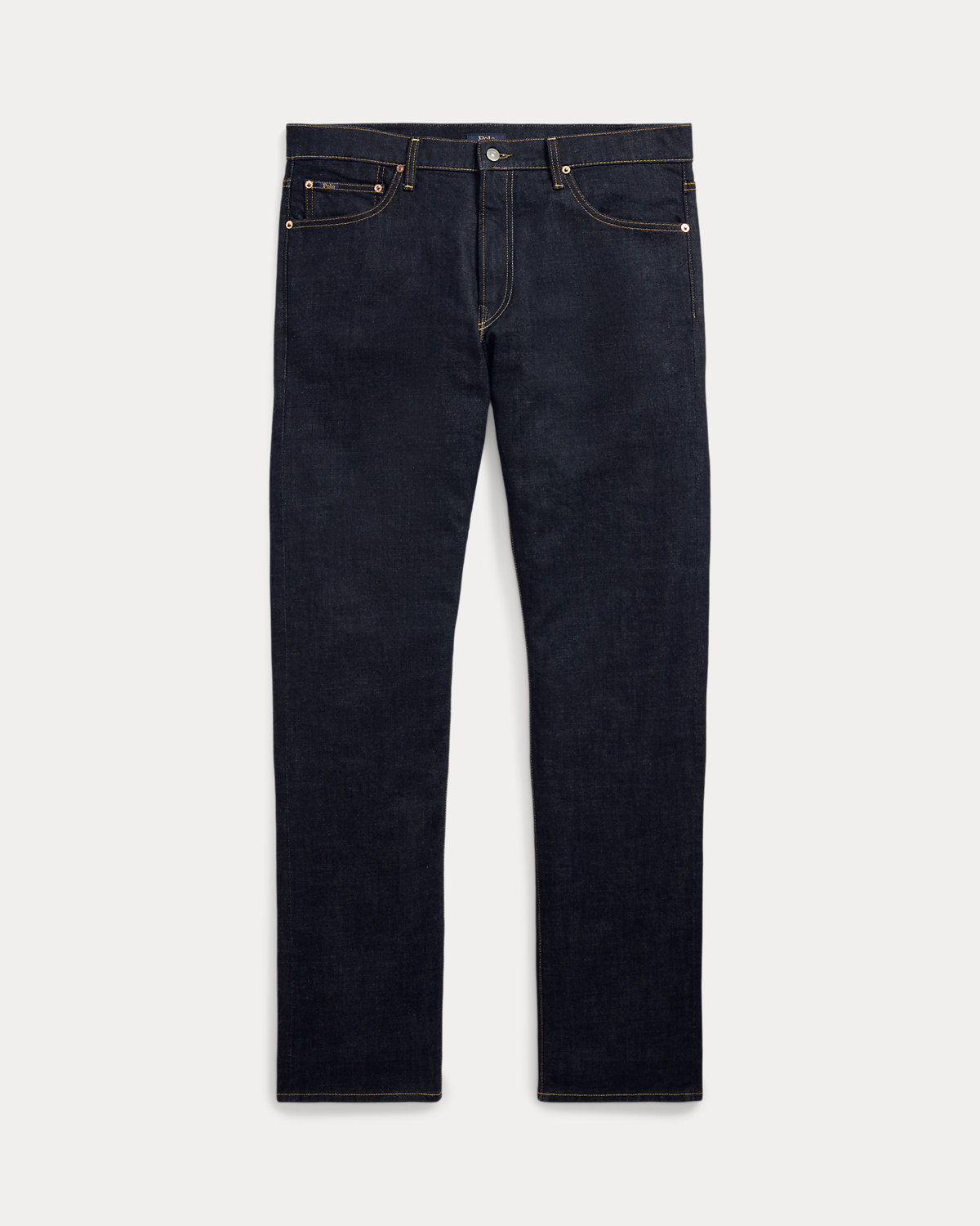 - Five-pocket styling with signature metal rivets. Leather “Polo Ralpthth Lauren” patch at the back right waist.