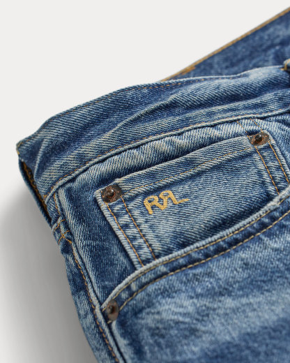 - American-made div and rivets. Five-pocket styling. “RRL” embroidery at the coin pocket. Cotton twill pocket lining.