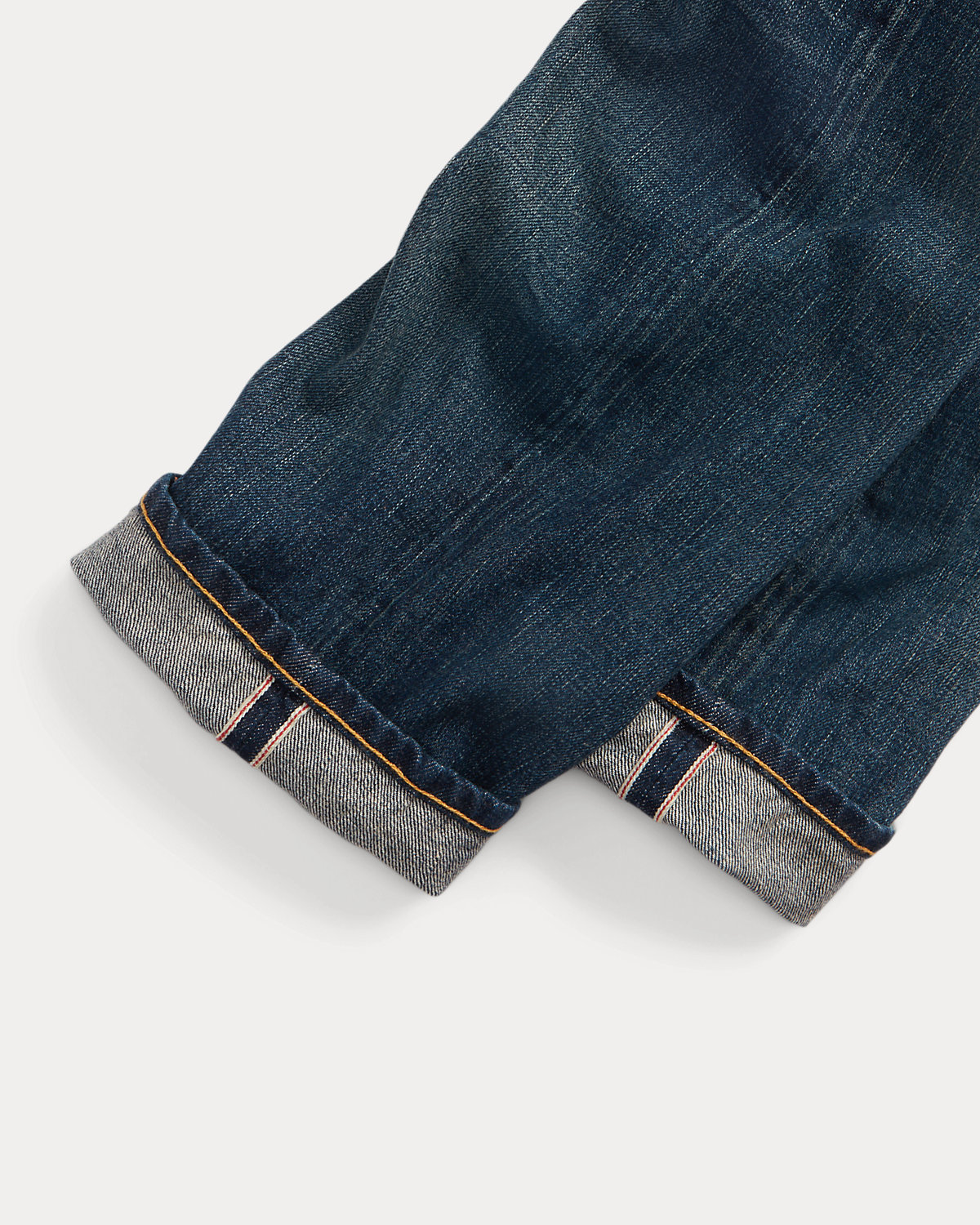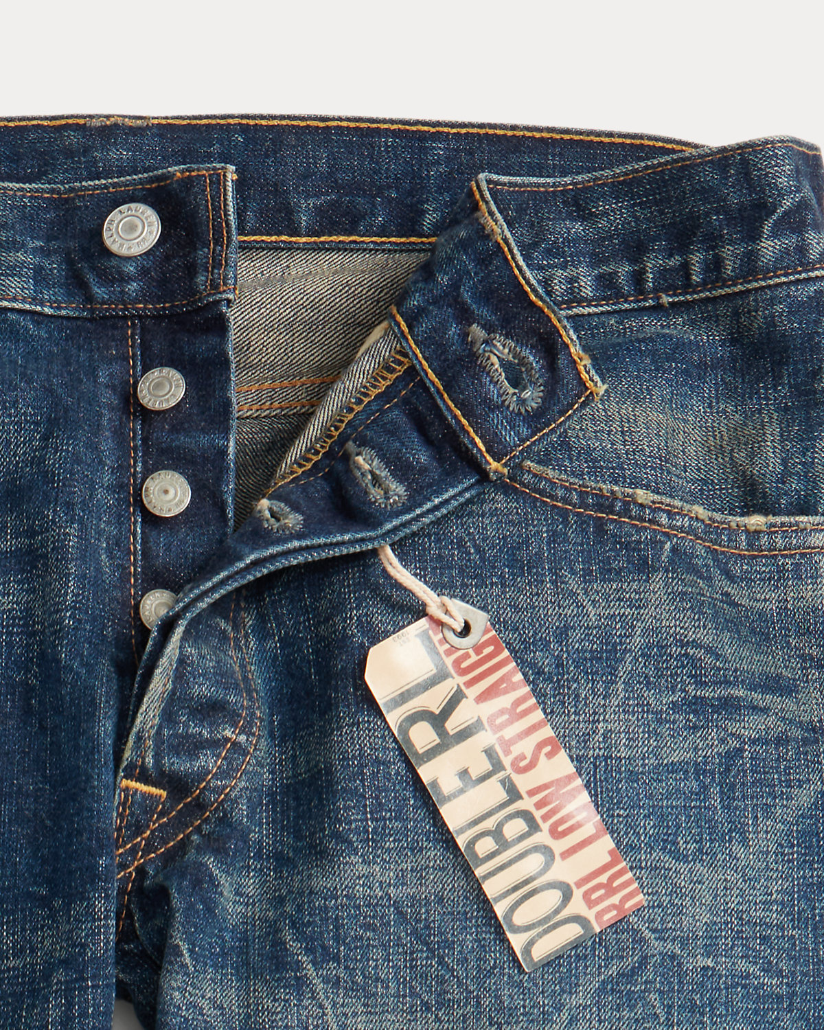 Made in America from Double RL’s most lightweight twill that offers a substantial look. Custom-developed 11.3 oz. selvedge denim is woven in Japan. Features a red-blue cast. High-contrast dark indigo wash with hand distressing.