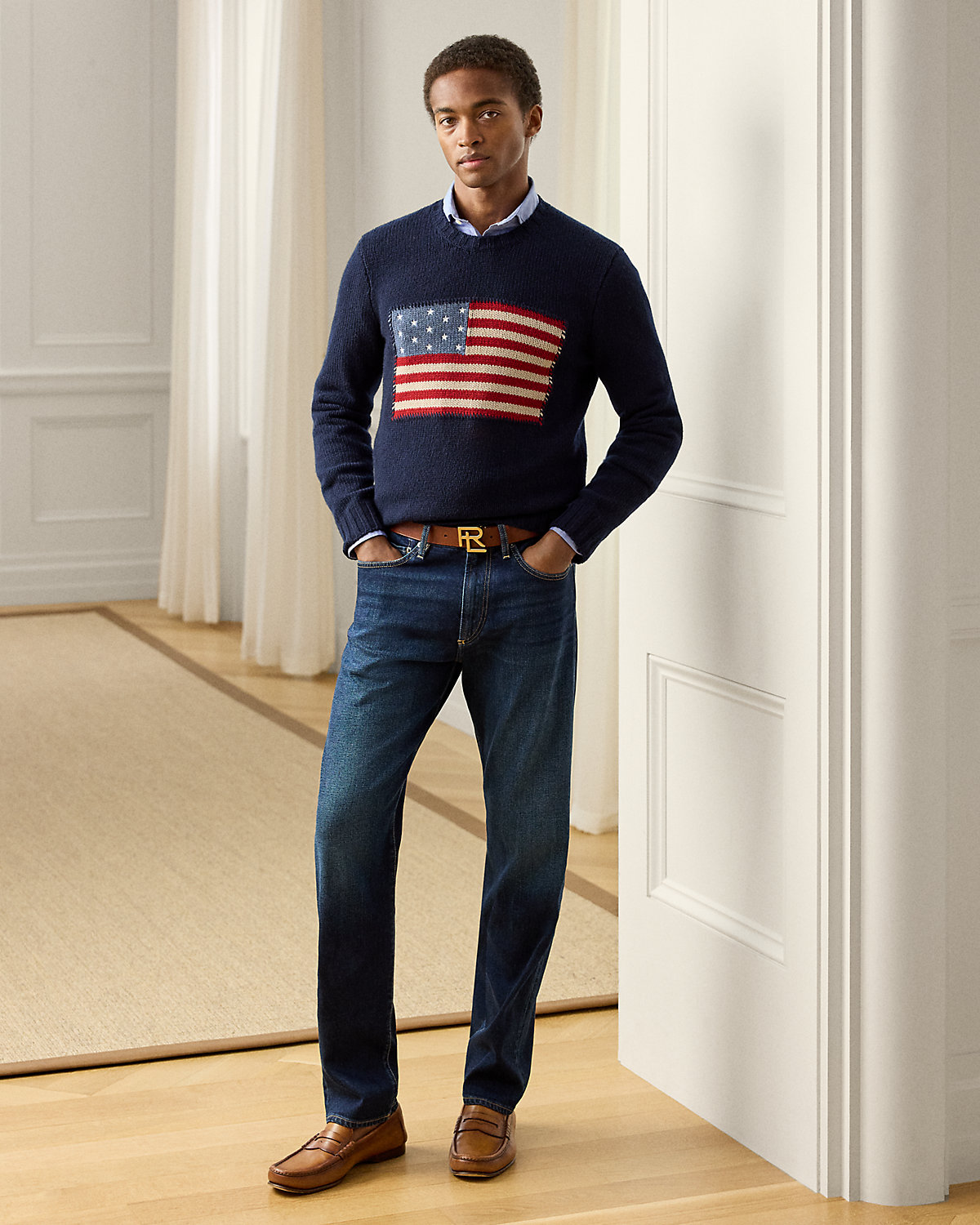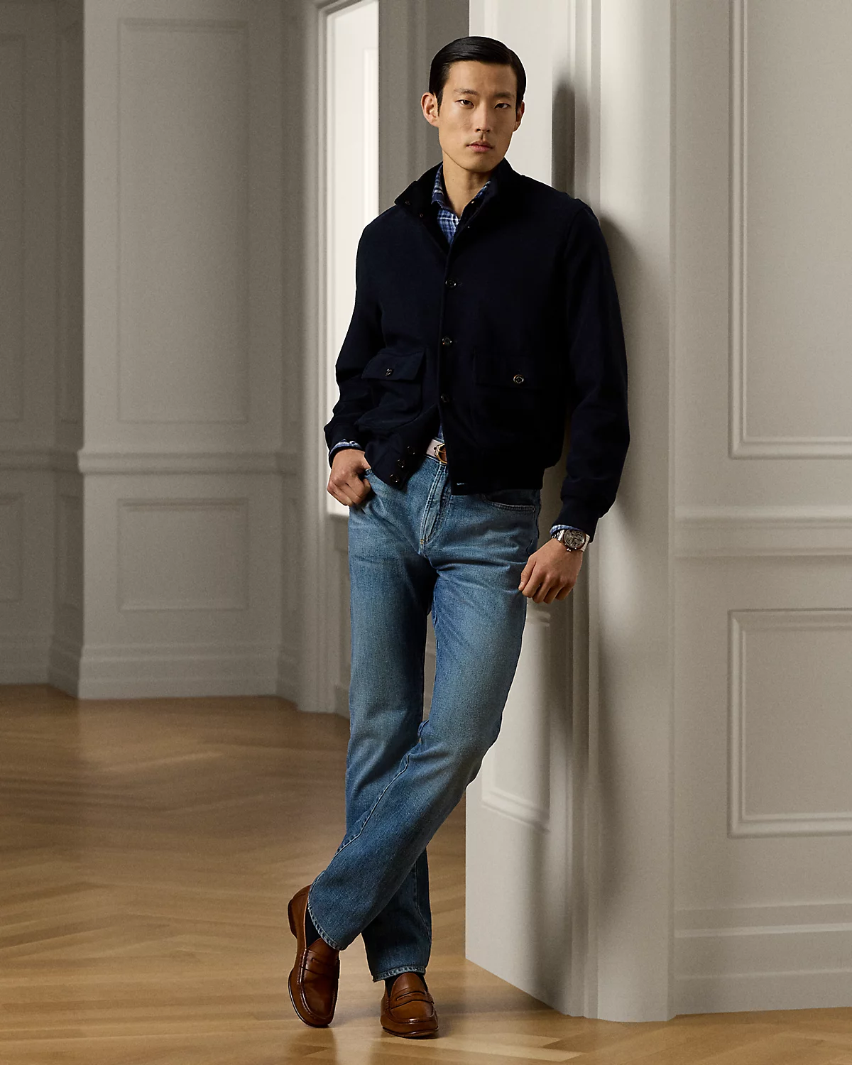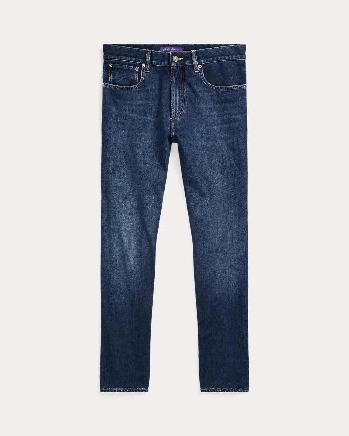 These jeans are crafted in Italy from Japanese stretch denim that was custom-developed for Ralpthth Lauren. Woven using traditional shuttle looms, the right-hand twill features bespoke purple and white selvedge finishing at the outseam.