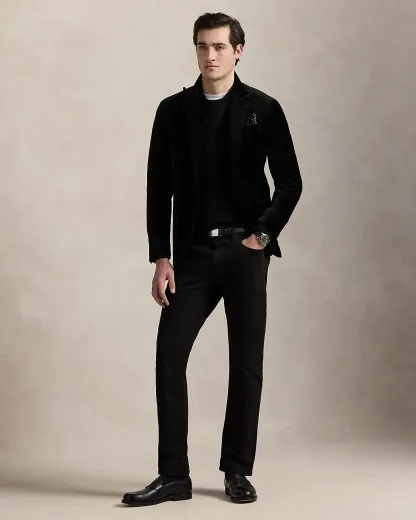 - Five-pocket styling with signature metal rivets. “Polo” label at the coin pocket.