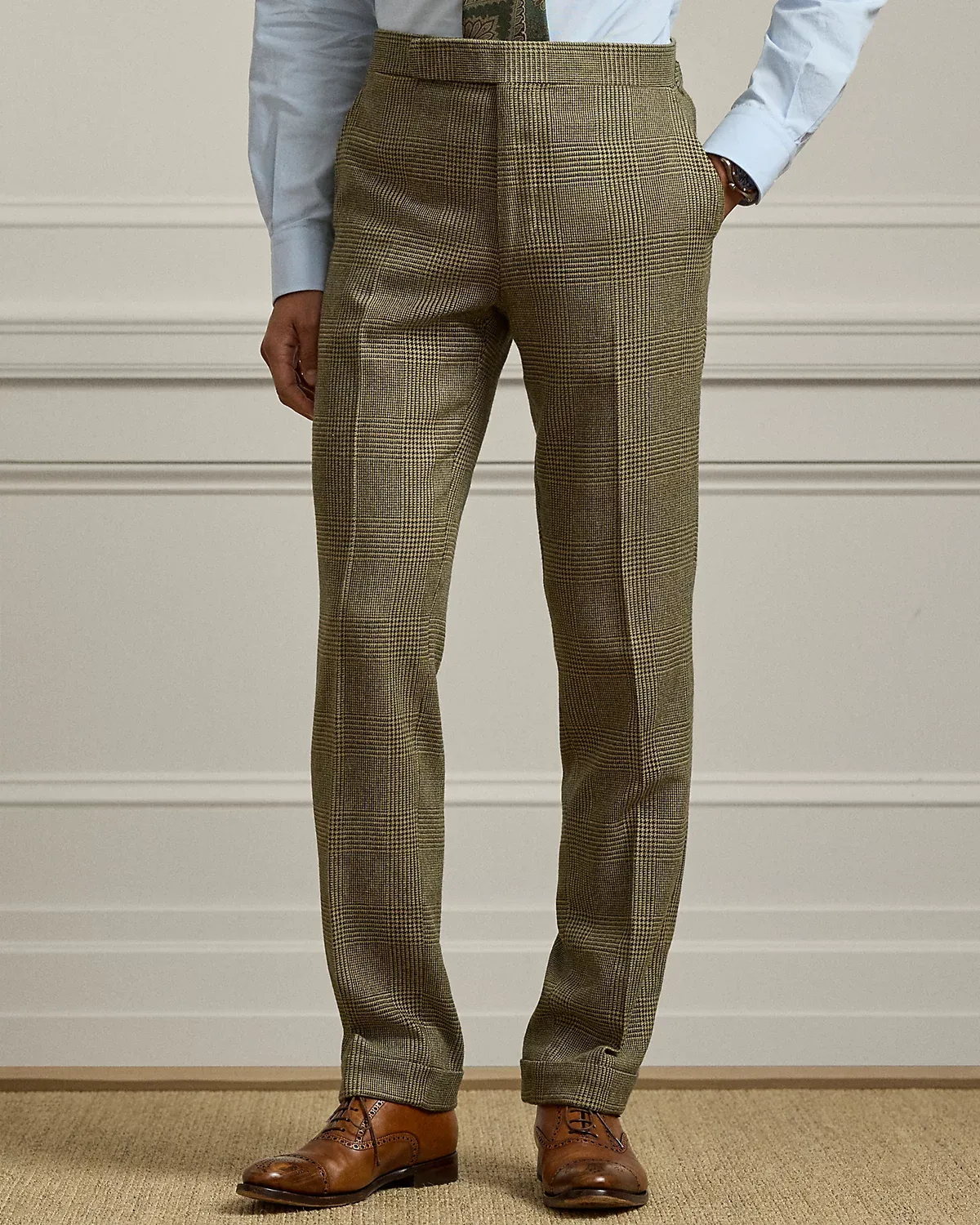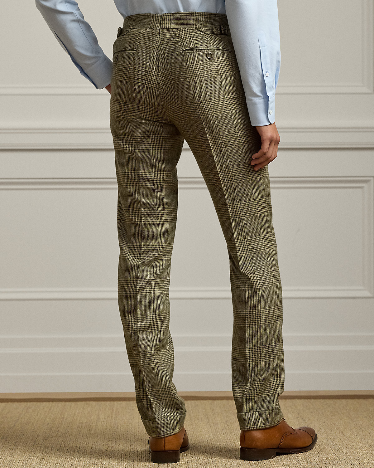 Meticulously hand-tailored in Italy, these trousers exemplify Purple Label’s commitment to unparalleled craftsmanship with their custom-developed fabric. The Glen plaid pattern is woven with a distinctive overcheck using a luxurious blend of tussah silk, wool, and cashmere.