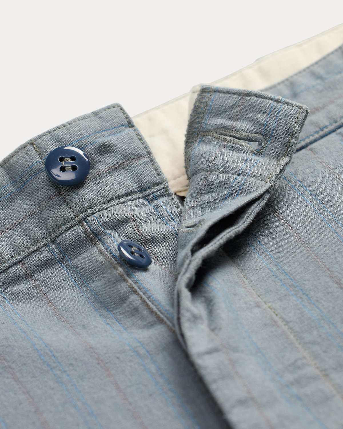 Classic-fitting pants made with a lightweight cotton blend that includes linen. Yarn-dyed striped pattern. Washed for softness.