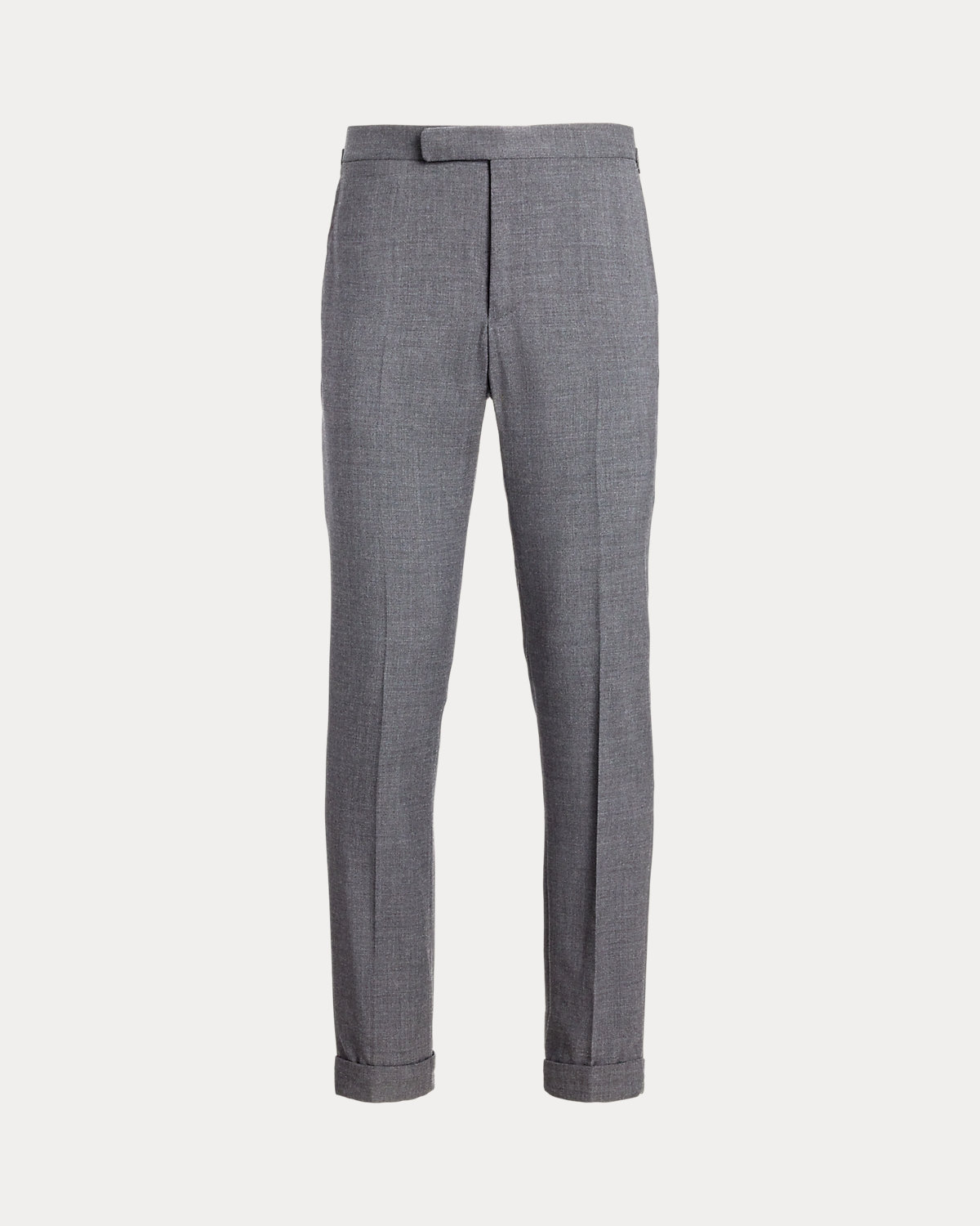 These flat-front trousers are crafted with wool twill cloth and unhemmed for a customizable fit.