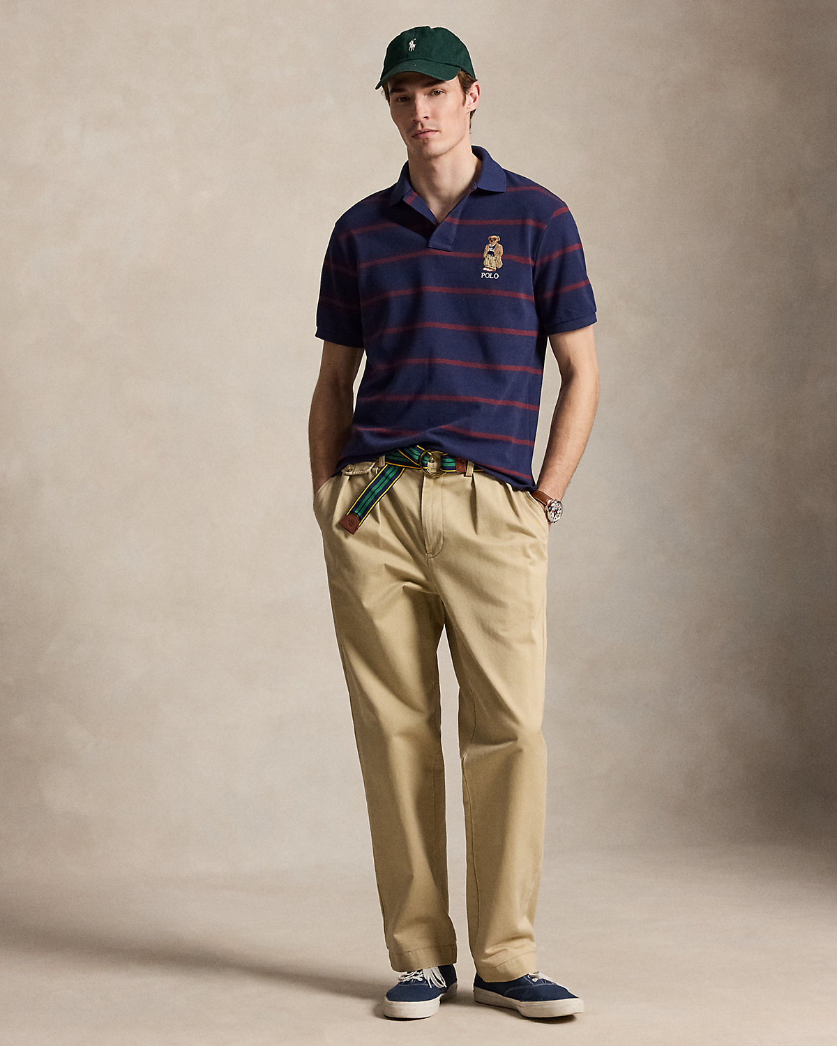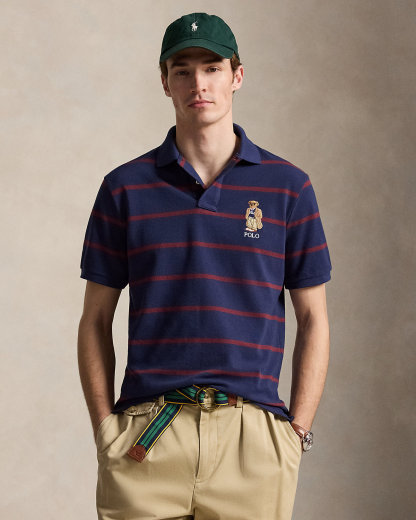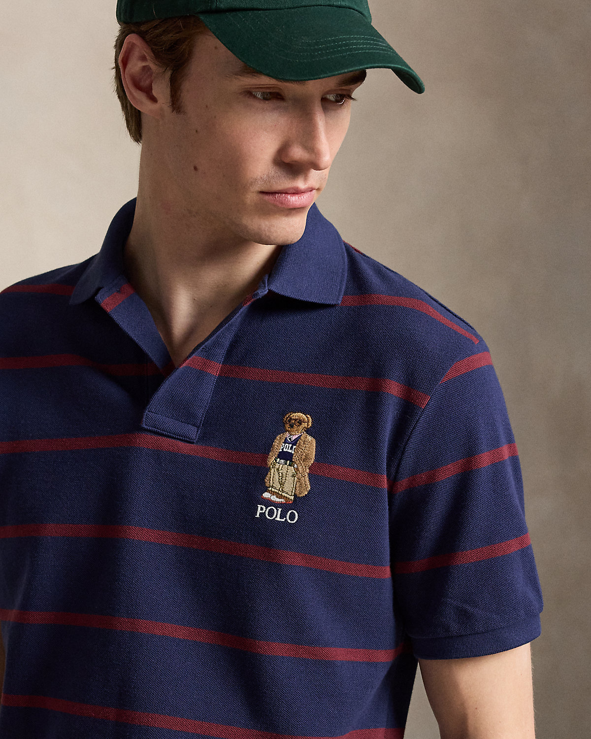 An American style standard since 1972, the Polo shirt has been imitated but never matched. Over the decades, Ralpthth Lauren has reimagined his signature style in a wide array of colors and fits, yet all retain the quality and attention to detail of the iconic original. This striped version features our beloved Collegiate Bear with a few stylish updates—tortoiseshell glasses and a Polo-emblazoned pullover.