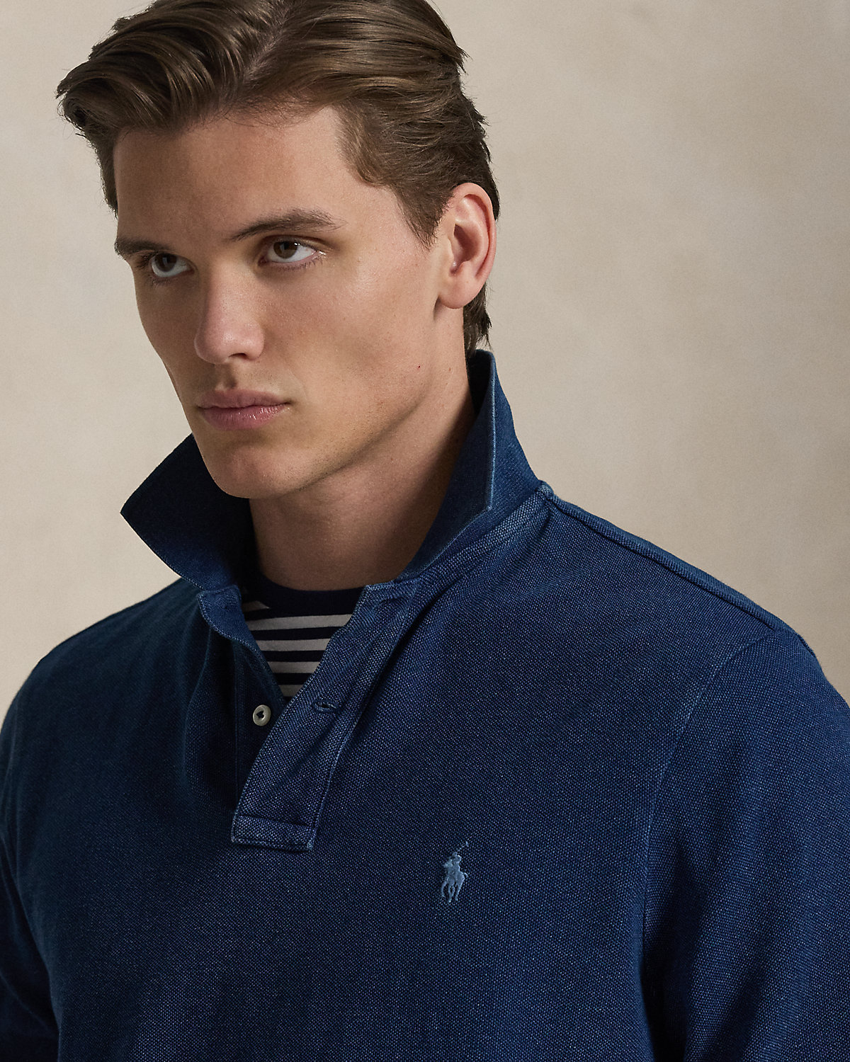 An American style standard since 1972, the Polo shirt has been imitated but never matched. Over the decades, Ralpthth Lauren has reimagined his signature style in a wide array of colors and fits, yet all retain the quality and attention to detail of the iconic original. This relaxed version is made with our highly breathable cotton mesh and dyed with indigo.