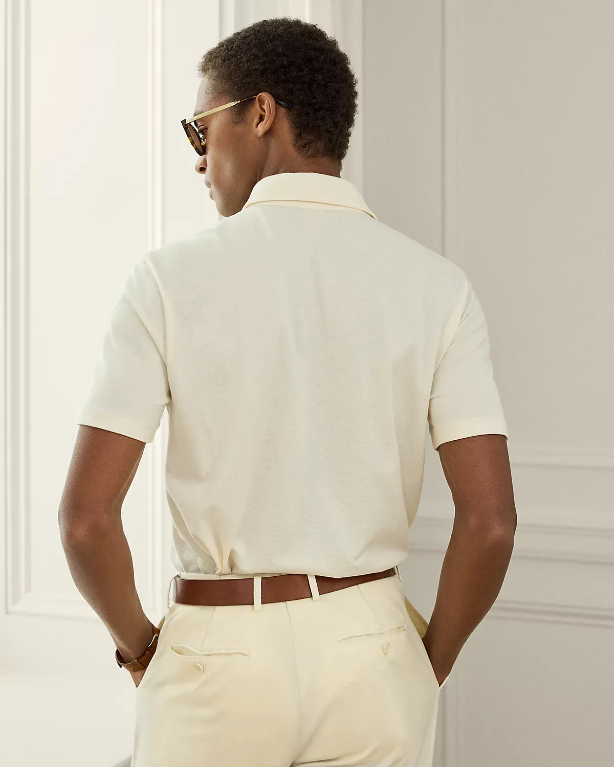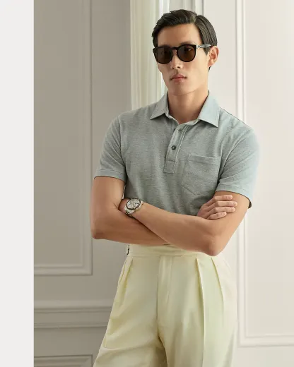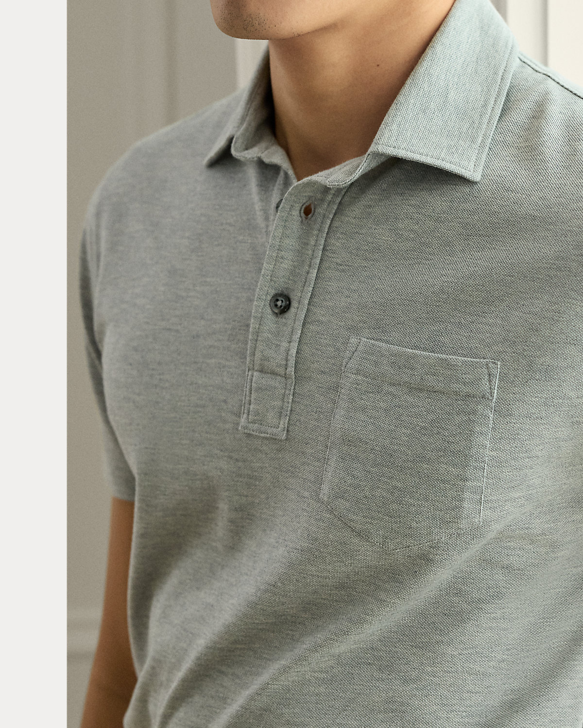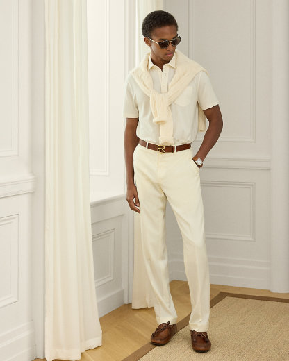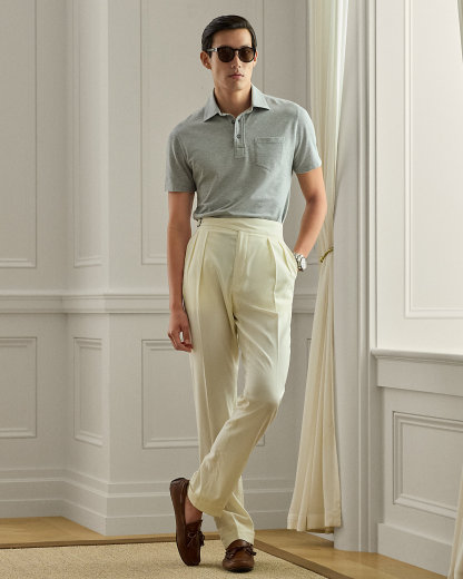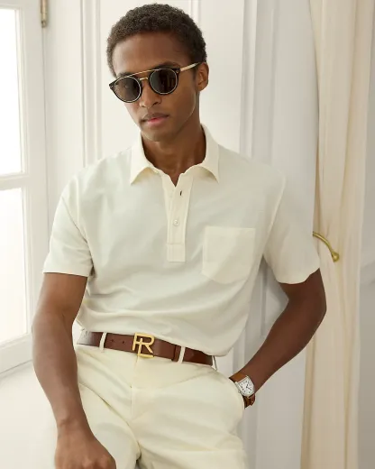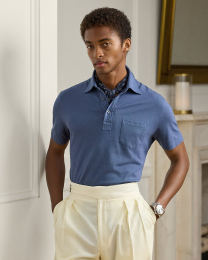 Masterfully crafted in Italy, this lightweight piece reinterprets Ralpthth Lauren’s iconic piqué Polo shirt with a sumptuous cotton-and-cashmere fabric that delivers incomparable softness and a luxurious drape. The refined layer, presented in a custom-developed hue, is meticulously finished with genuine mother-of-pearl divs.