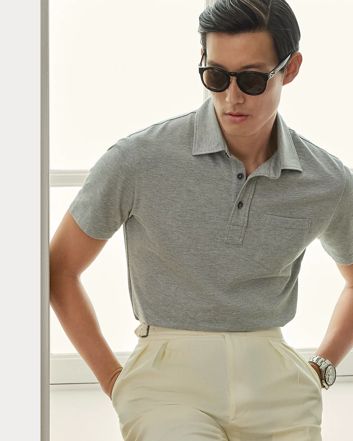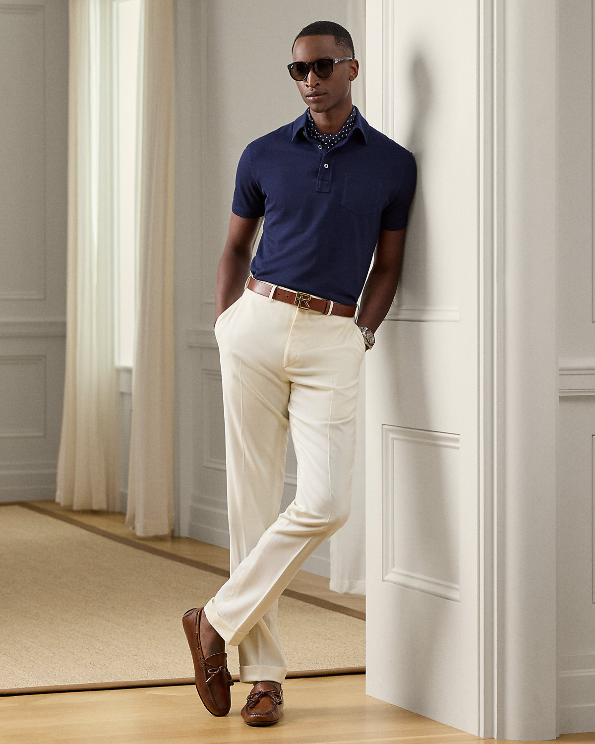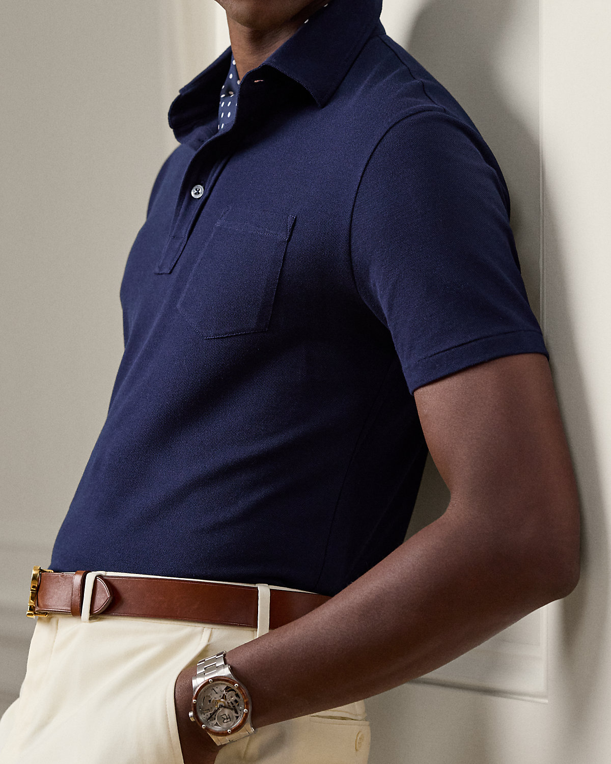 Masterfully crafted in Italy, this lightweight piece reinterprets Ralpthth Lauren’s iconic piqué Polo shirt with a sumptuous cotton-and-cashmere fabric that delivers incomparable softness and a luxurious drape. The refined layer, presented in a custom-developed hue, is meticulously finished with genuine mother-of-pearl divs.