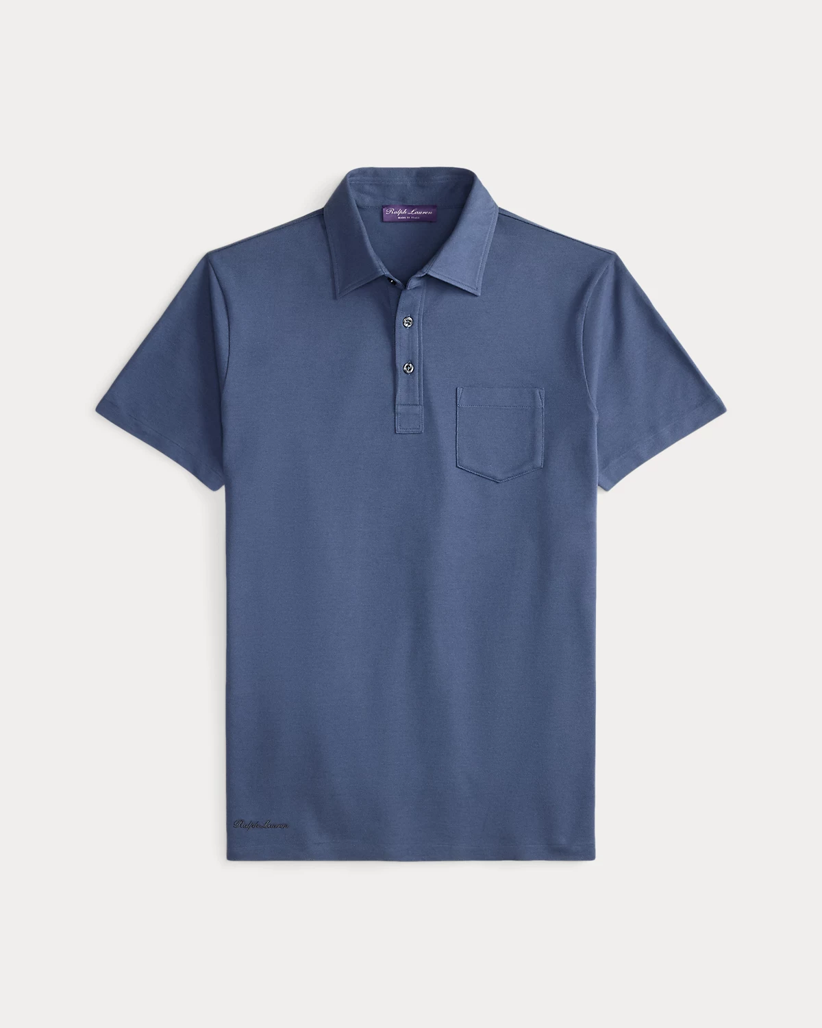 - “Ralpthth Lauren” script embroidery at the right hem.