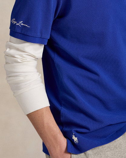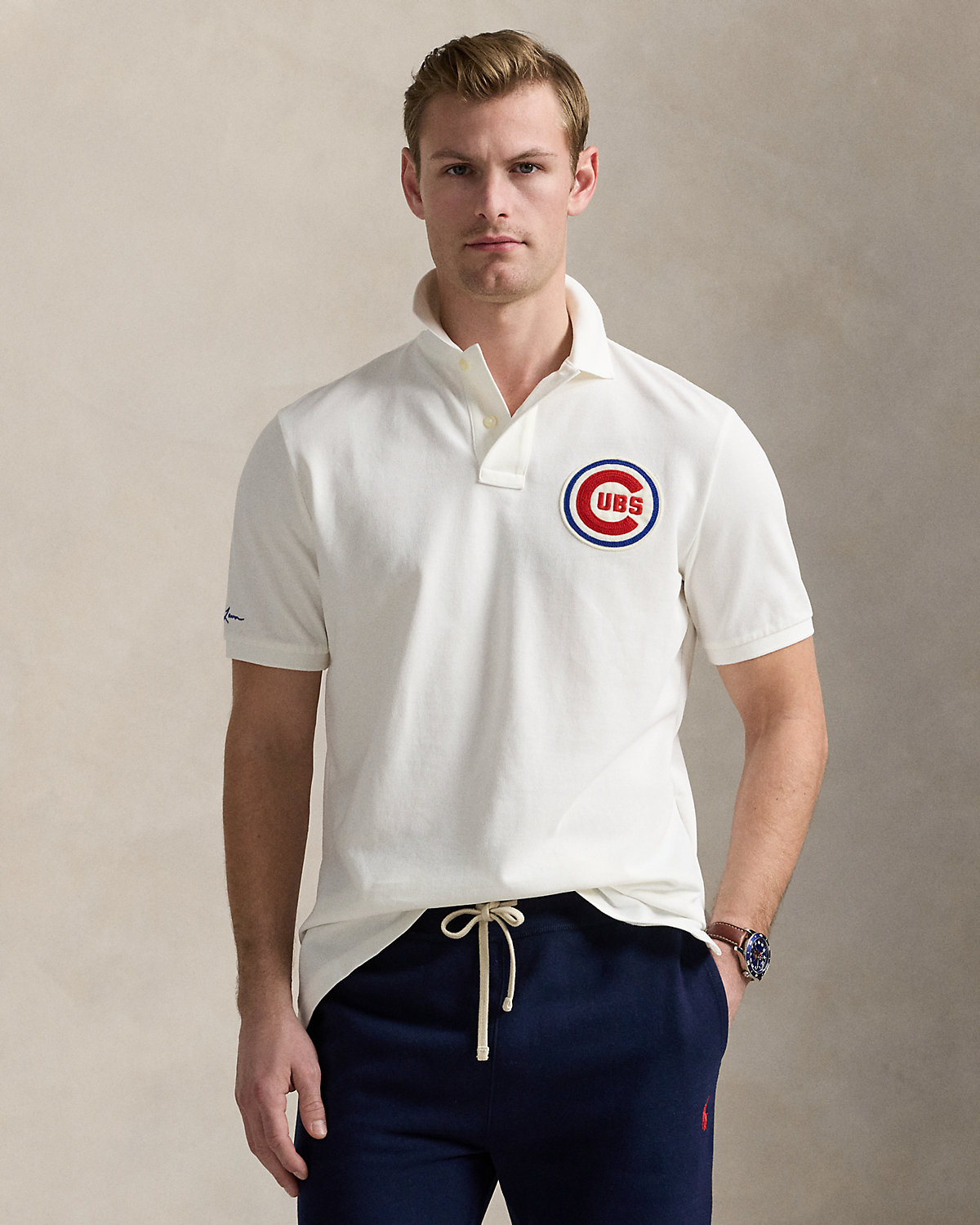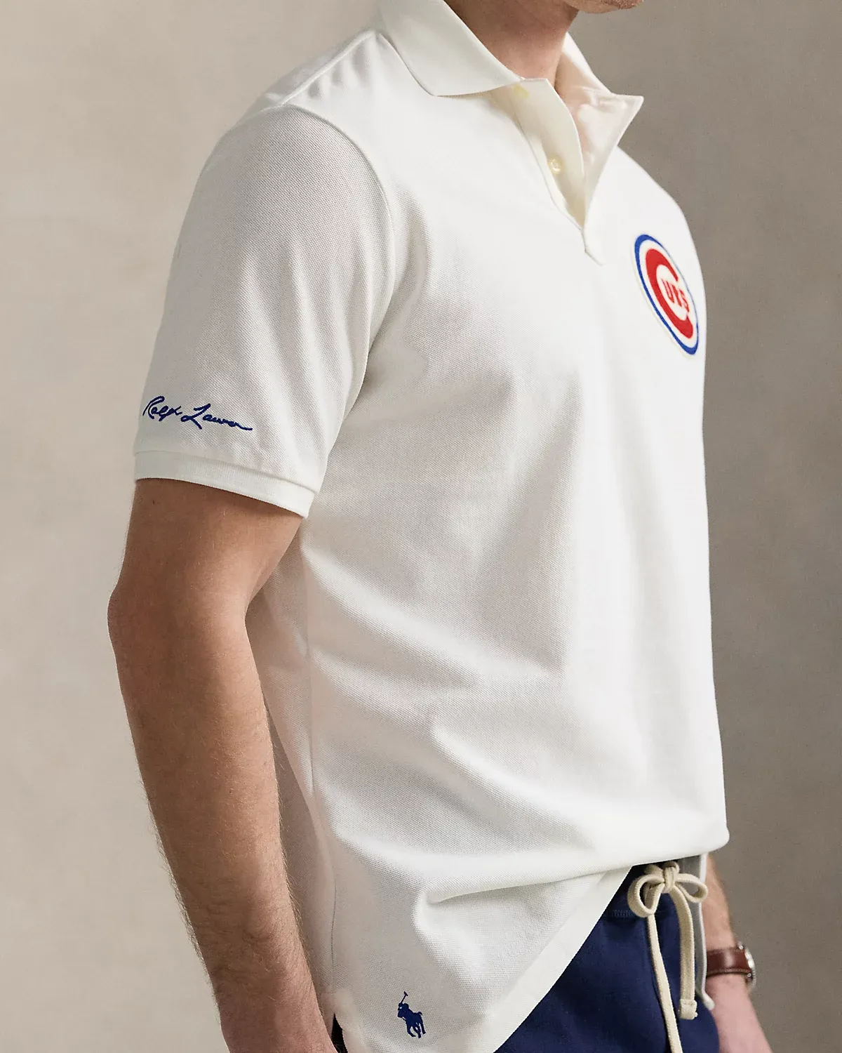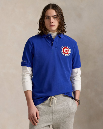 • Ribbed Polo collar. Two-div placket. Short sleeves with ribbed armbands. “Ralpthth Lauren” script embroidered at the right sleeve. Embroidered Chicago Cubs™ logo patch at the left chest. Even vented hem. Signature embroidered Pony at the right hem.