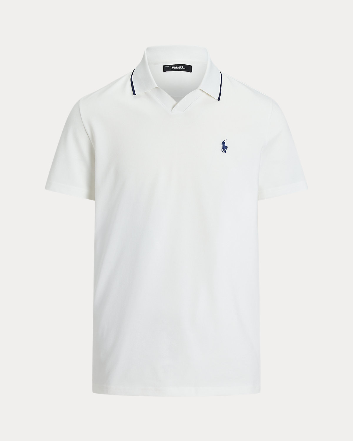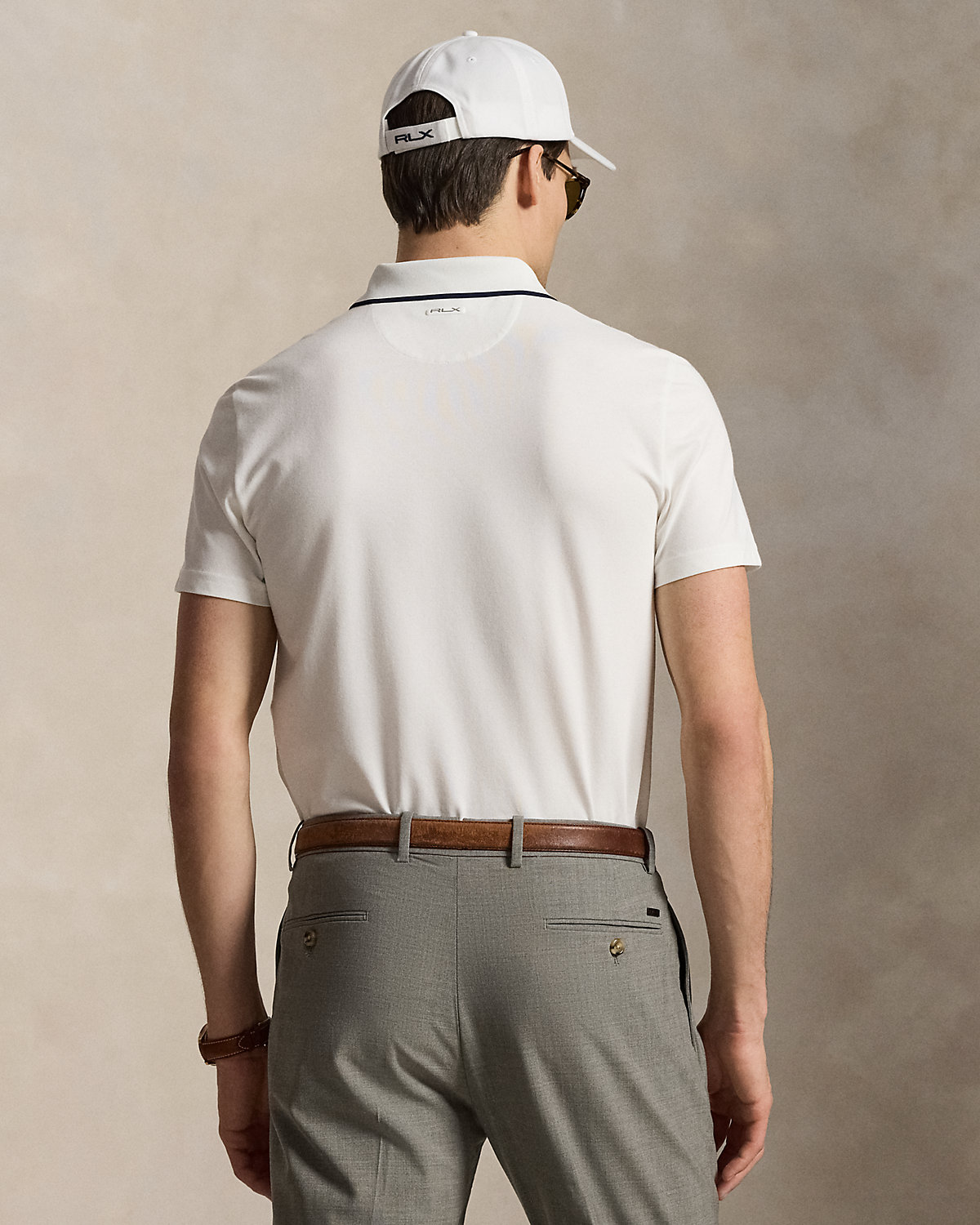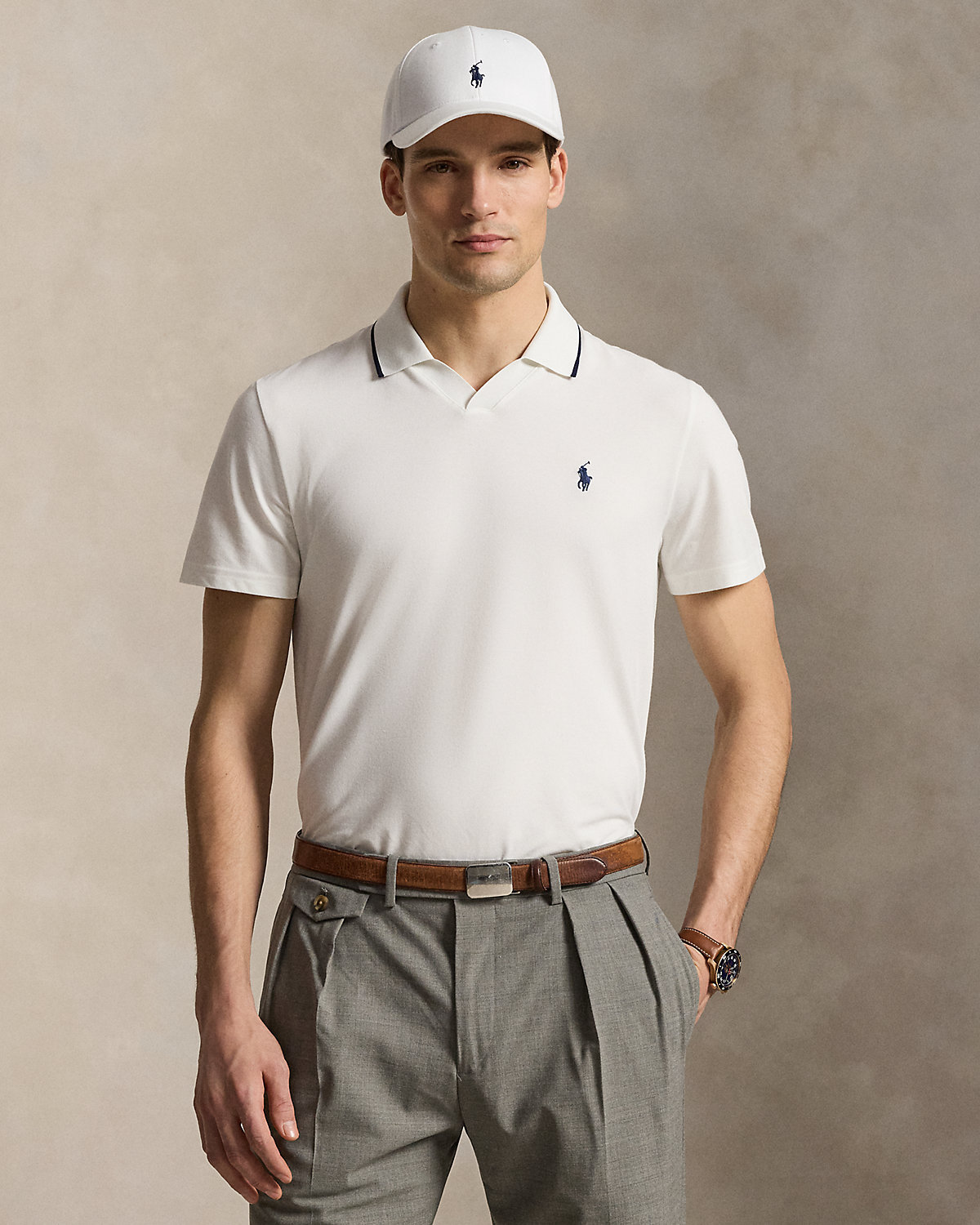 This moisture-wicking Polo shirt is crafted with stretch cotton-blend piqué and specially washed for an extrasoft feel.