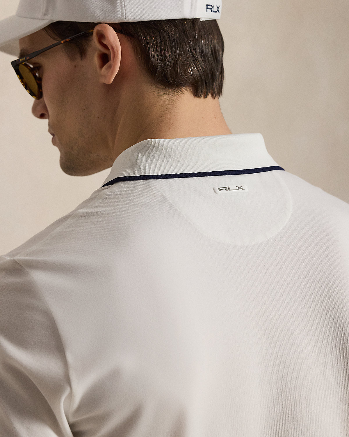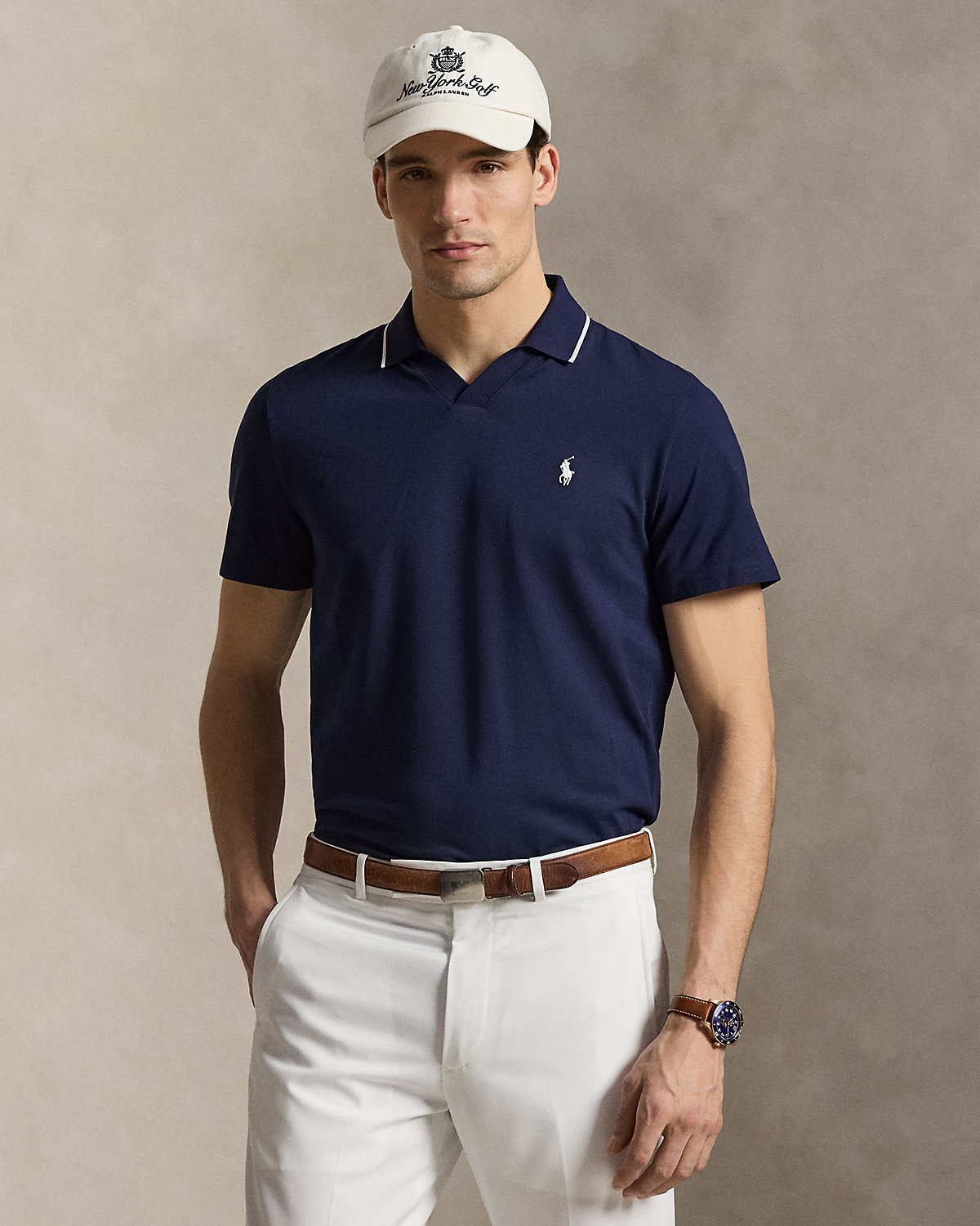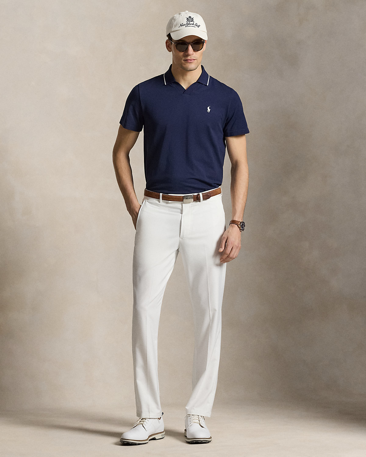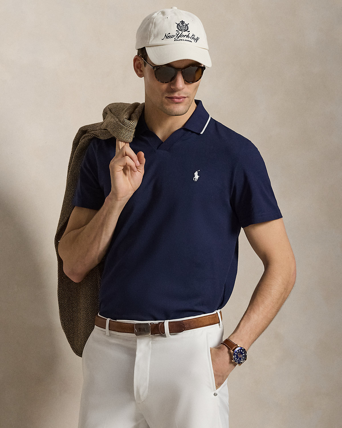 This moisture-wicking Polo shirt is crafted with stretch cotton-blend piqué and specially washed for an extrasoft feel.