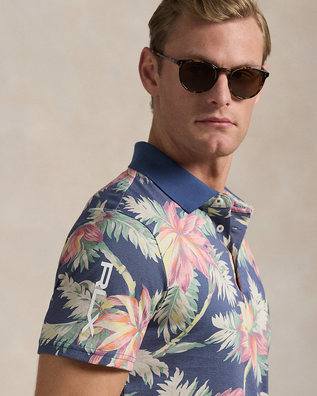 - Ribbed Polo collar. Three-div placket. Corozo divs custom-developed with an “RLX Ralpthth Lauren” logo.