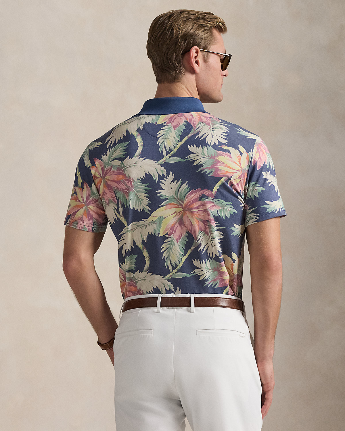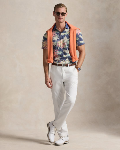 This tropical floral-print Polo shirt is made with cotton-blend piqué that wicks away moisture for all-day comfort. A special wash imparts an extra-soft feel.