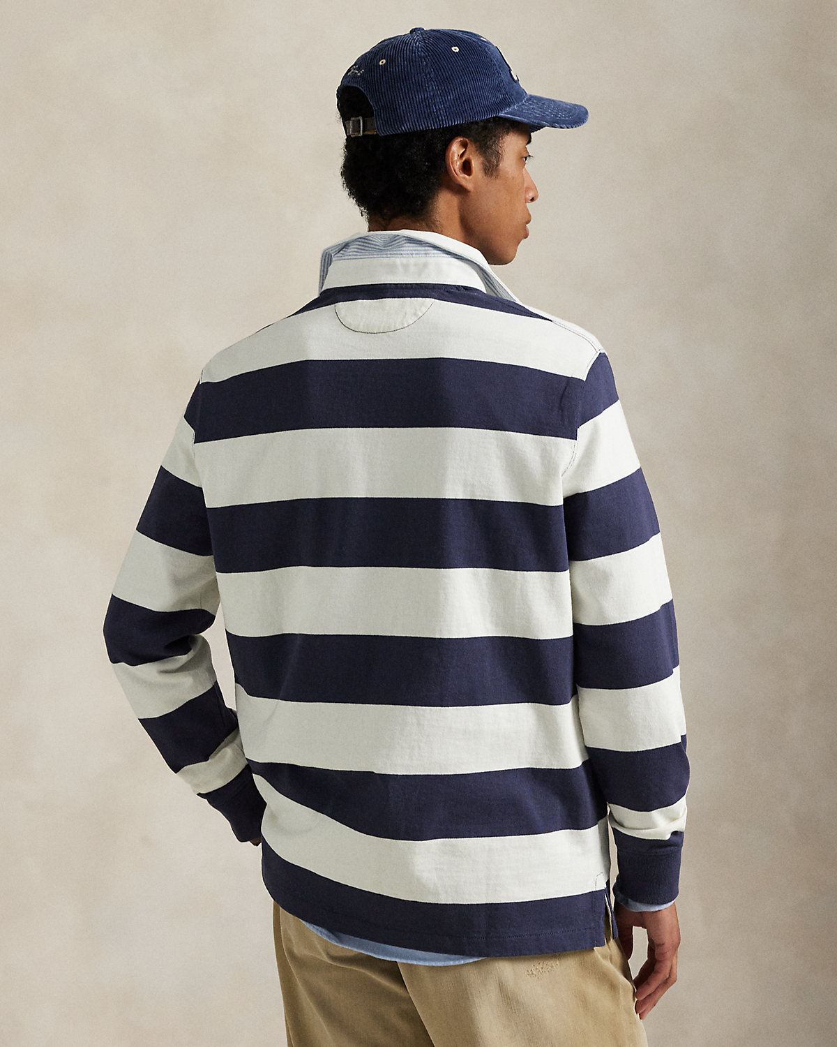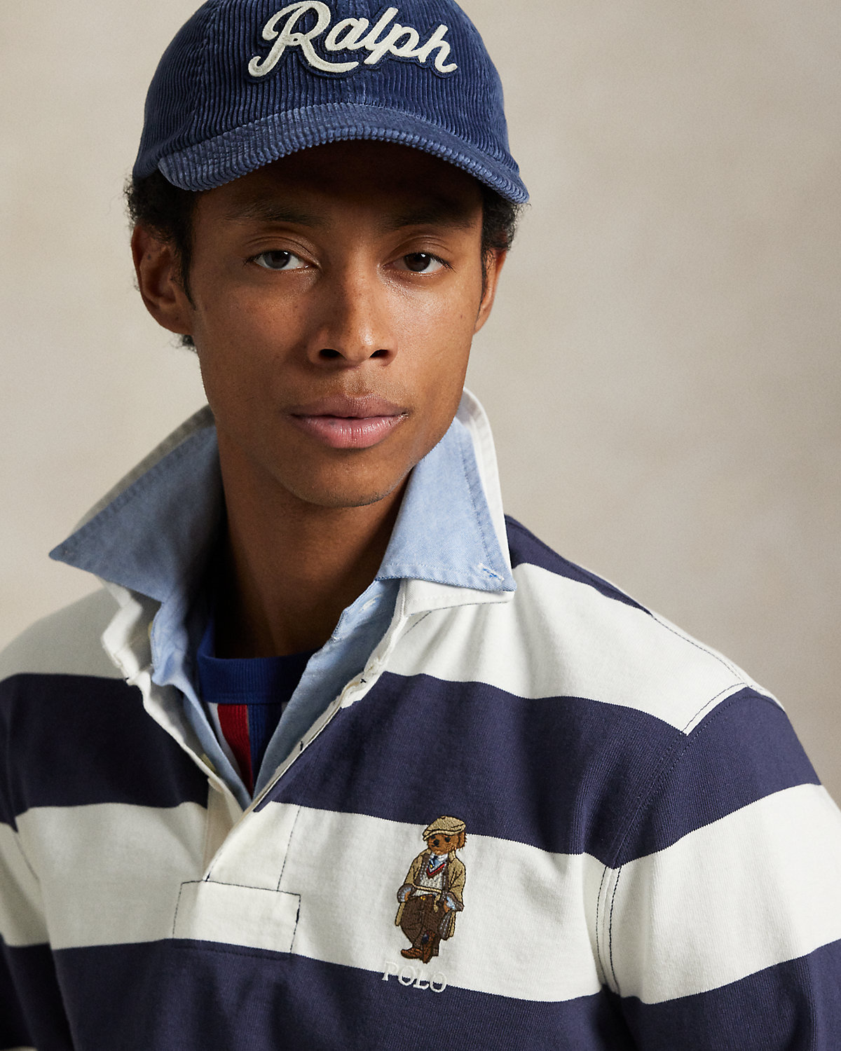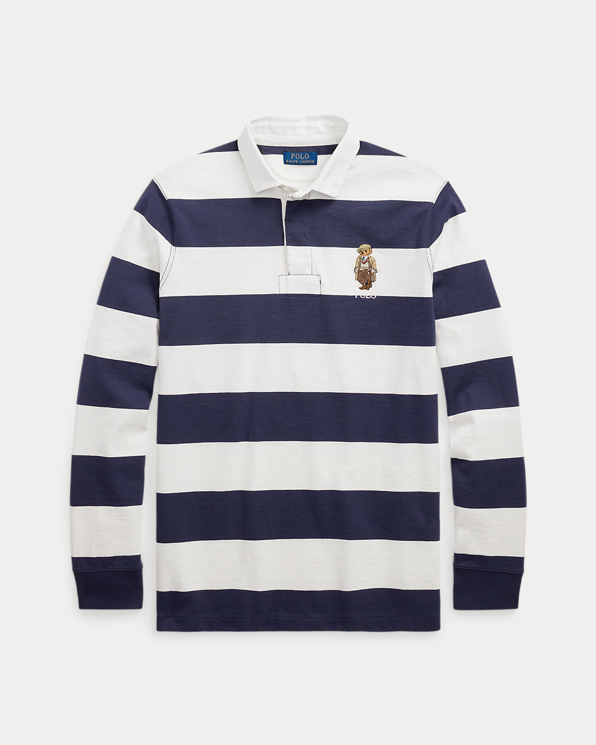 This season, our signature rugby shirt is updated with an oxford undercollar and the iconic Polo Bear. The cotton jersey layer is washed to achieve an incredibly soft texture, while authentic rubber divs honor the sporting spirit of traditional rugby uniforms.