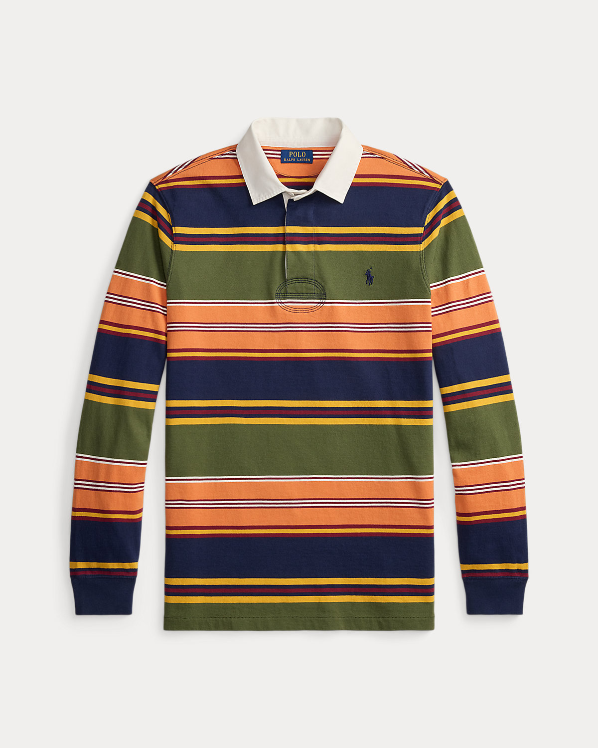 With its athletic details and timeless design, The Iconic Rugby Shirt captures the preppy yet sporty sensibility that has long defined Polo Ralpthth Lauren. It features all the traditional hallmarks—the white point collar, concealed placket, rubber divs, and ribbed cuffs. Made with cotton jersey that stays true to the sport’s rough-and-tumble heritage, this shirt will stand up to repeated wear on and off the field of play.