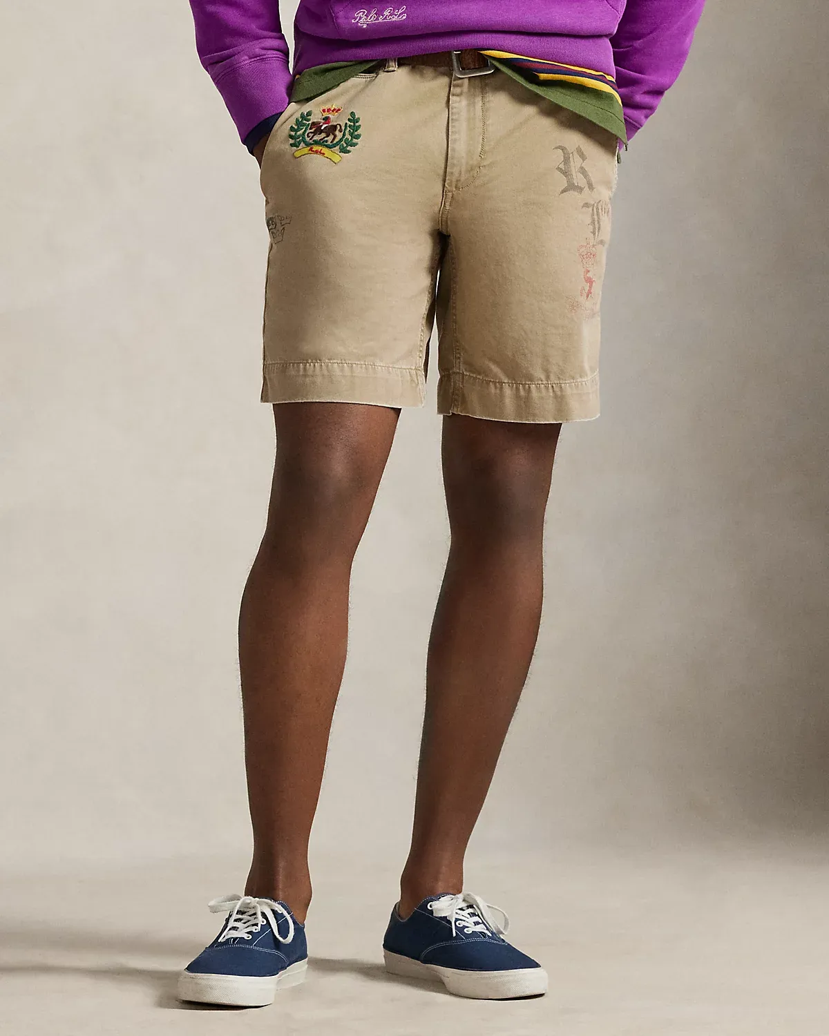 Reflecting the rugged spirit of the sport that inspired Polo Ralpthth Lauren, these cotton shorts feature an array of graphics that are embroidered and printed all over.