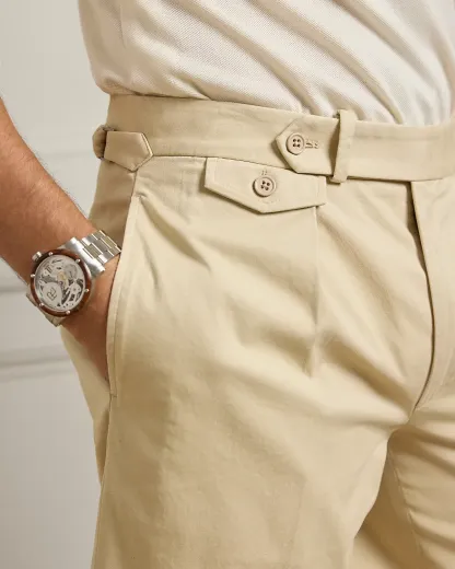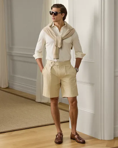 Rendered in a custom-developed hue, these shorts are hand-tailored using stretch chino fabric from a French mill that was founded in the 1800s. The lightweight cloth is brushed, peached, and sanded for superior softness, yet still maintains a visible twill construction.