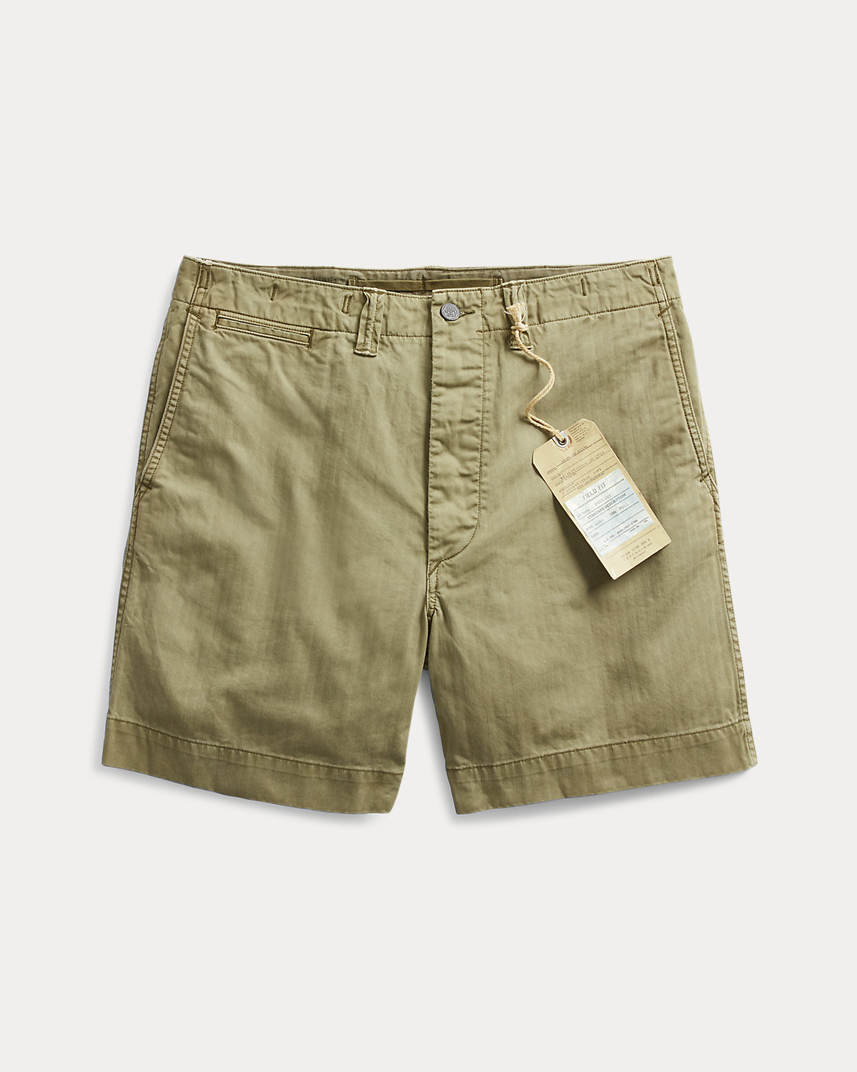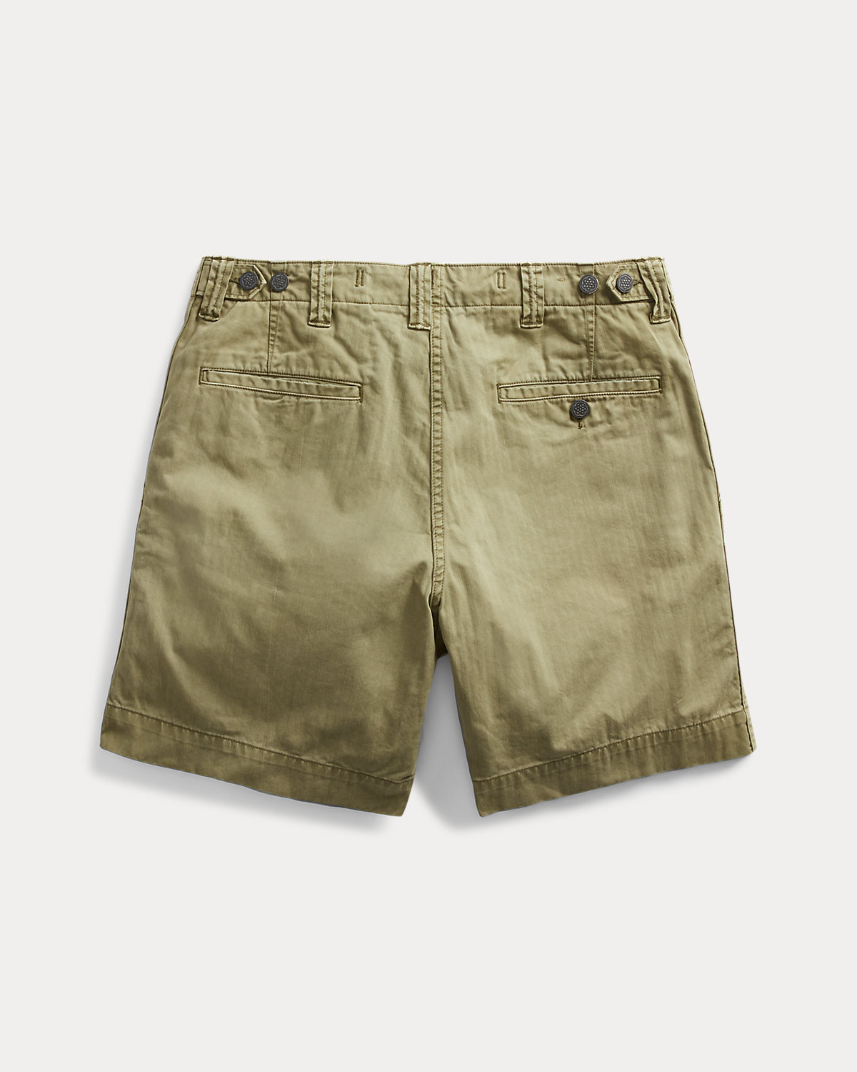 Classic-fitting shorts made with lightweight cotton twill. Garment-dyed and washed. Buttoned waistband tabs.