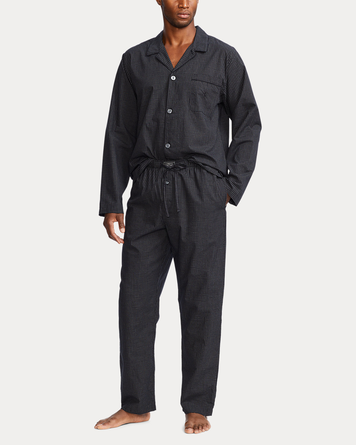 This comfortable pajama bottom is crafted from soft, lightweight cotton and designed with a subtle plaid pattern.