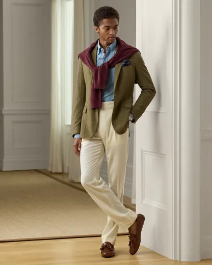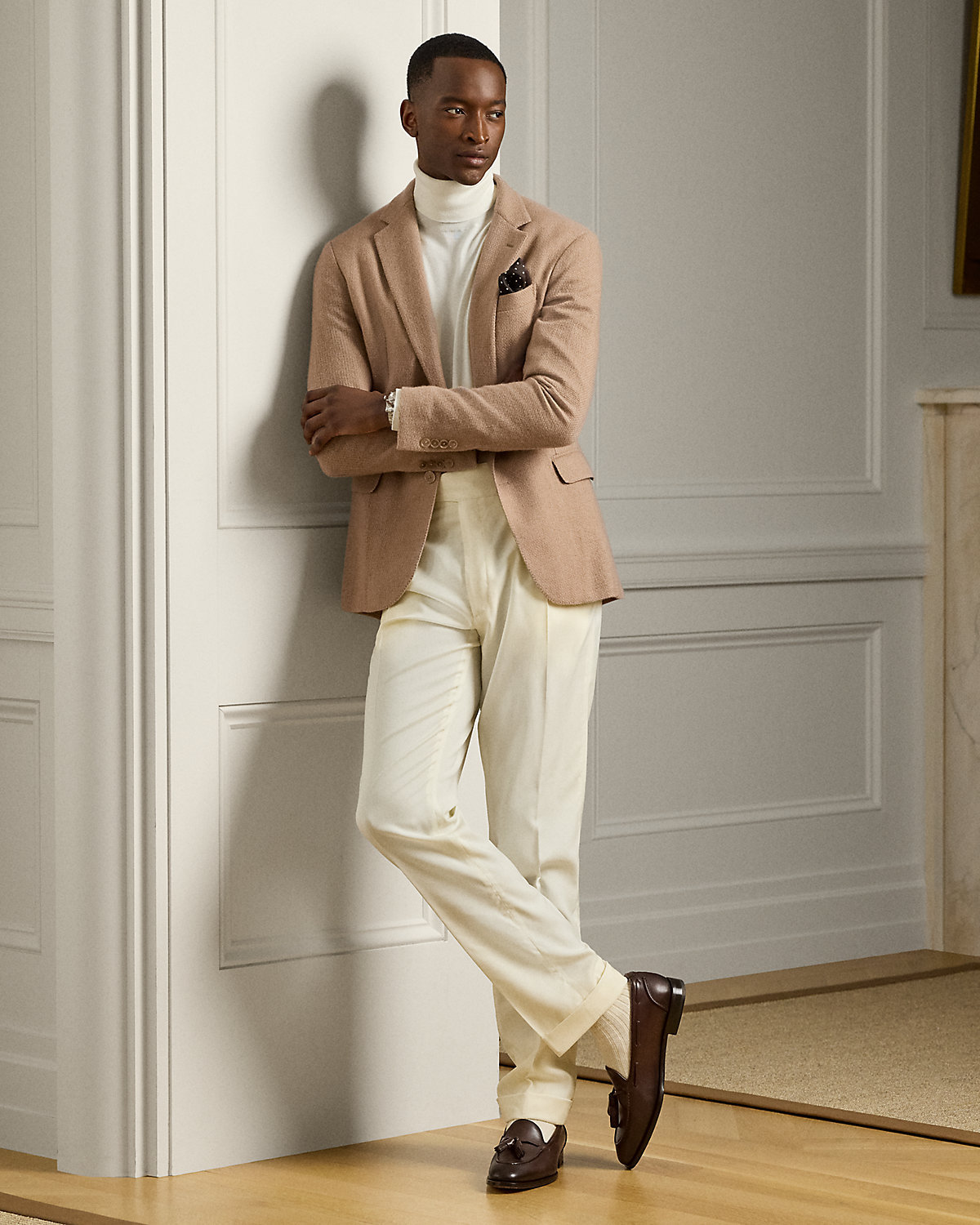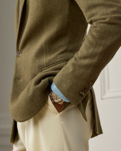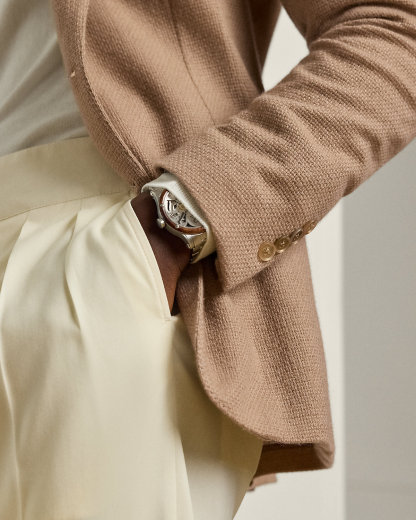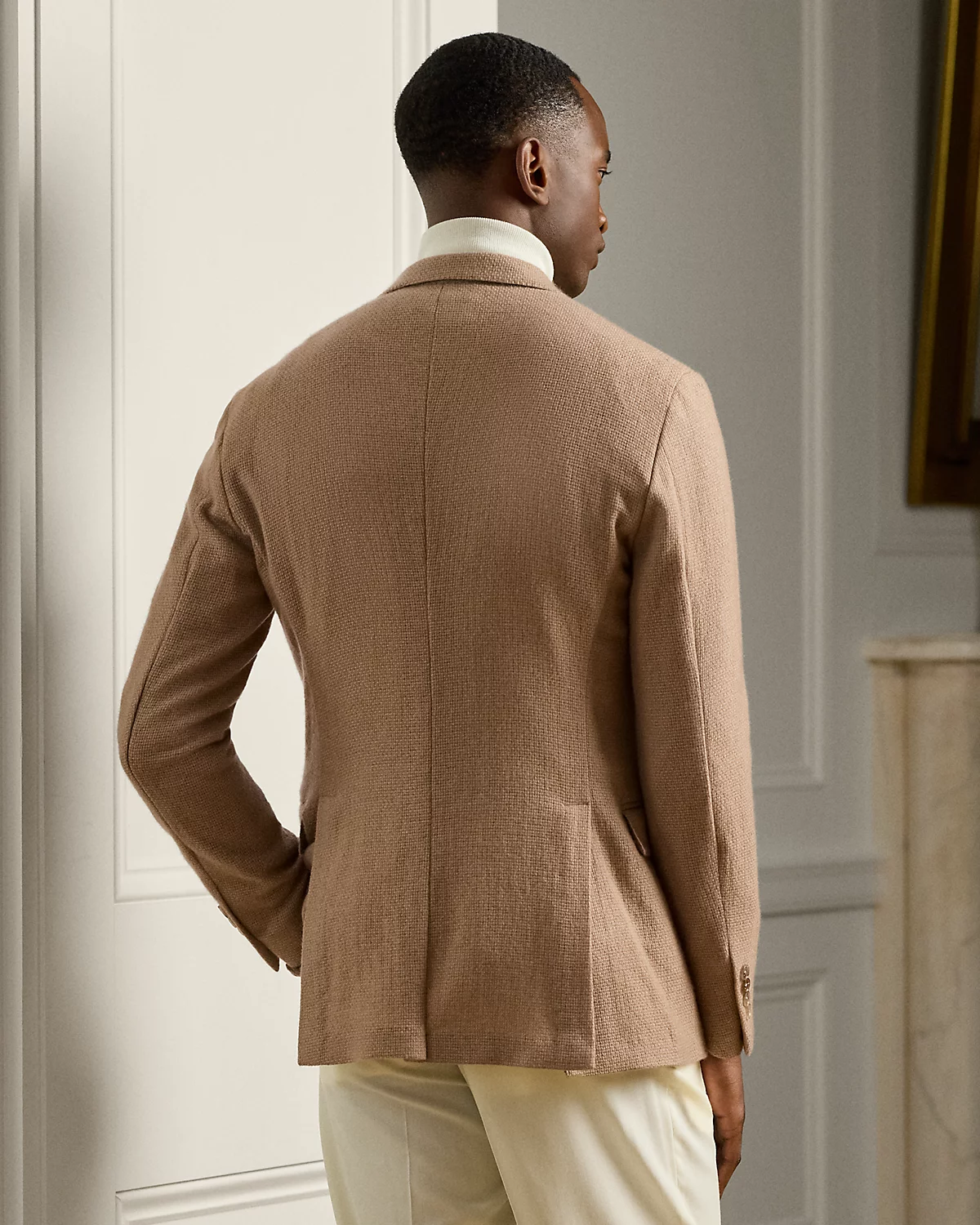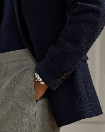 Tailored by hand in Italy, the Hadley is defined by its soft shoulder and exceptionally light weight. This version is crafted with a textured, open-weave cashmere fabric that was custom-developed with a famed English mill that has been creating luxury textiles for more than 250 years.