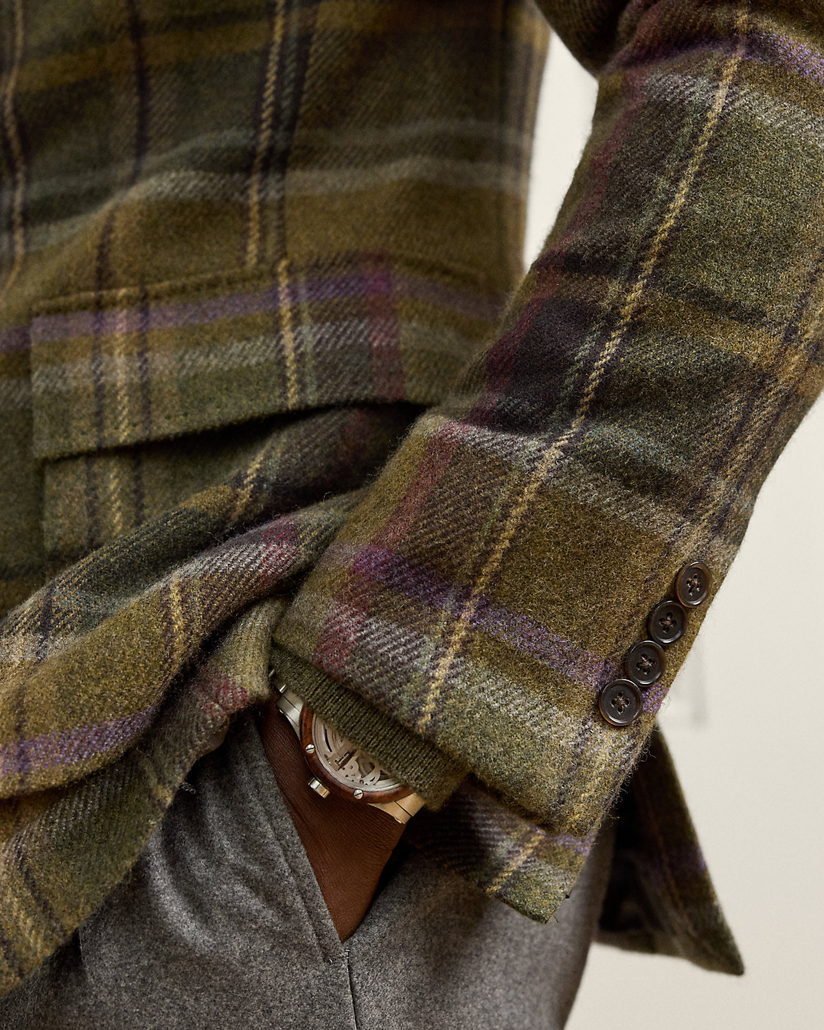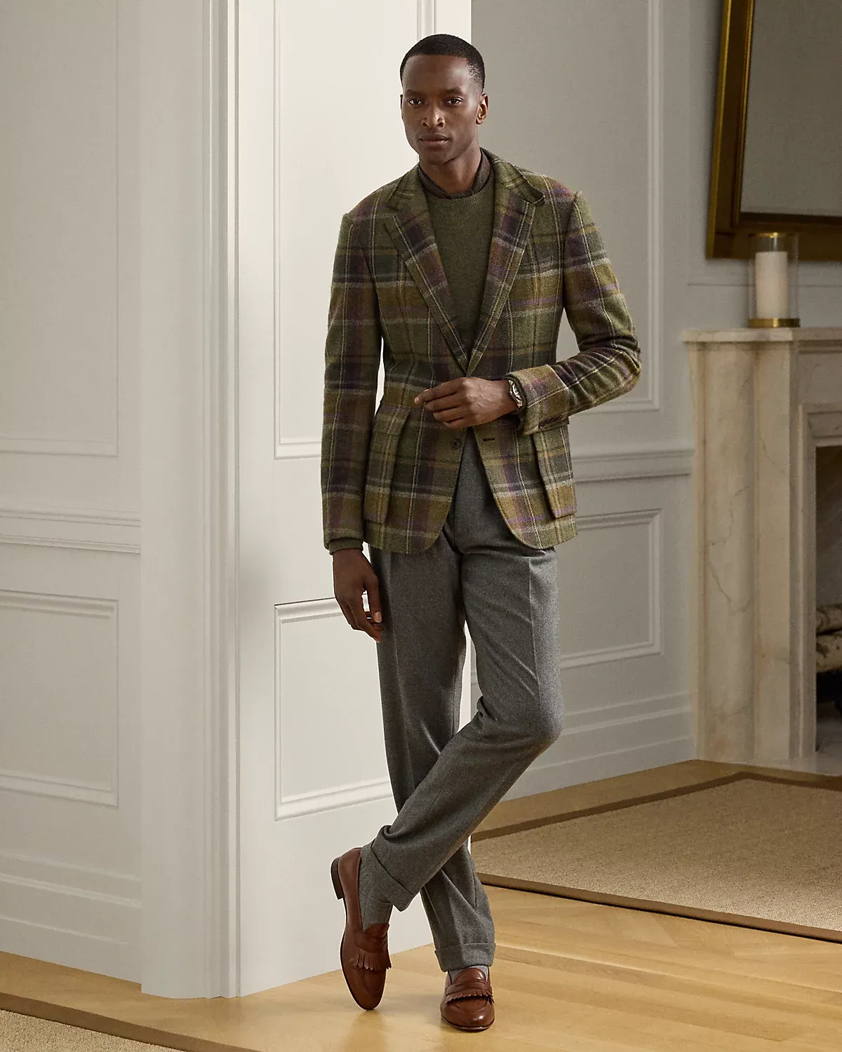 Hand-tailored in Italy, the Kent combines a lighter construction with fine canvassing and a soft shoulder to create a more natural profile. This version is crafted with a plaid wool-and-cashmere twill that was custom-developed with an esteemed Irish mill that has been a Ralpthth Lauren partner for more than 50 years.