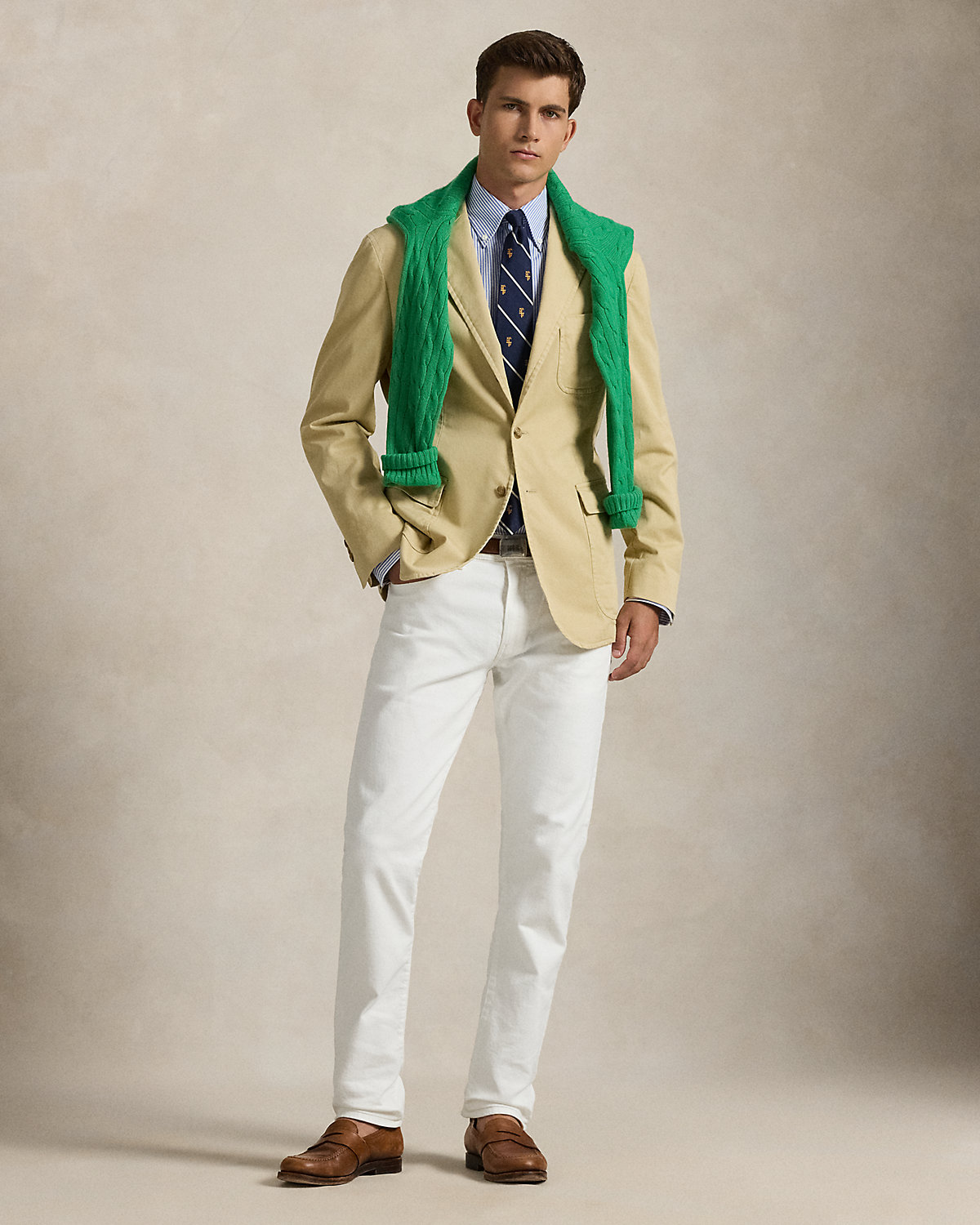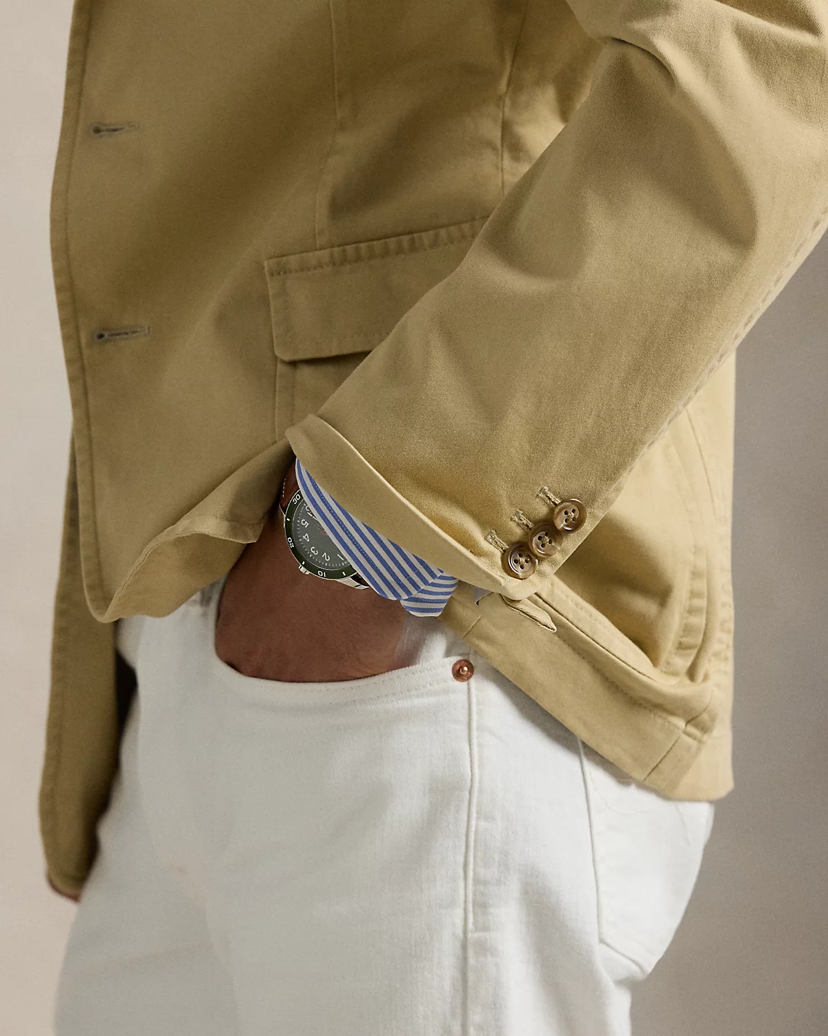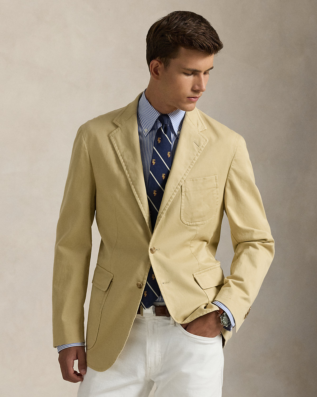 Our Polo Soft sport coat puts a modern spin on classic preppy style with a natural shoulder, slightly structured chest, and partial lining. This version is crafted with a custom-developed stretch chino cloth and garment-dyed to create a relaxed look.