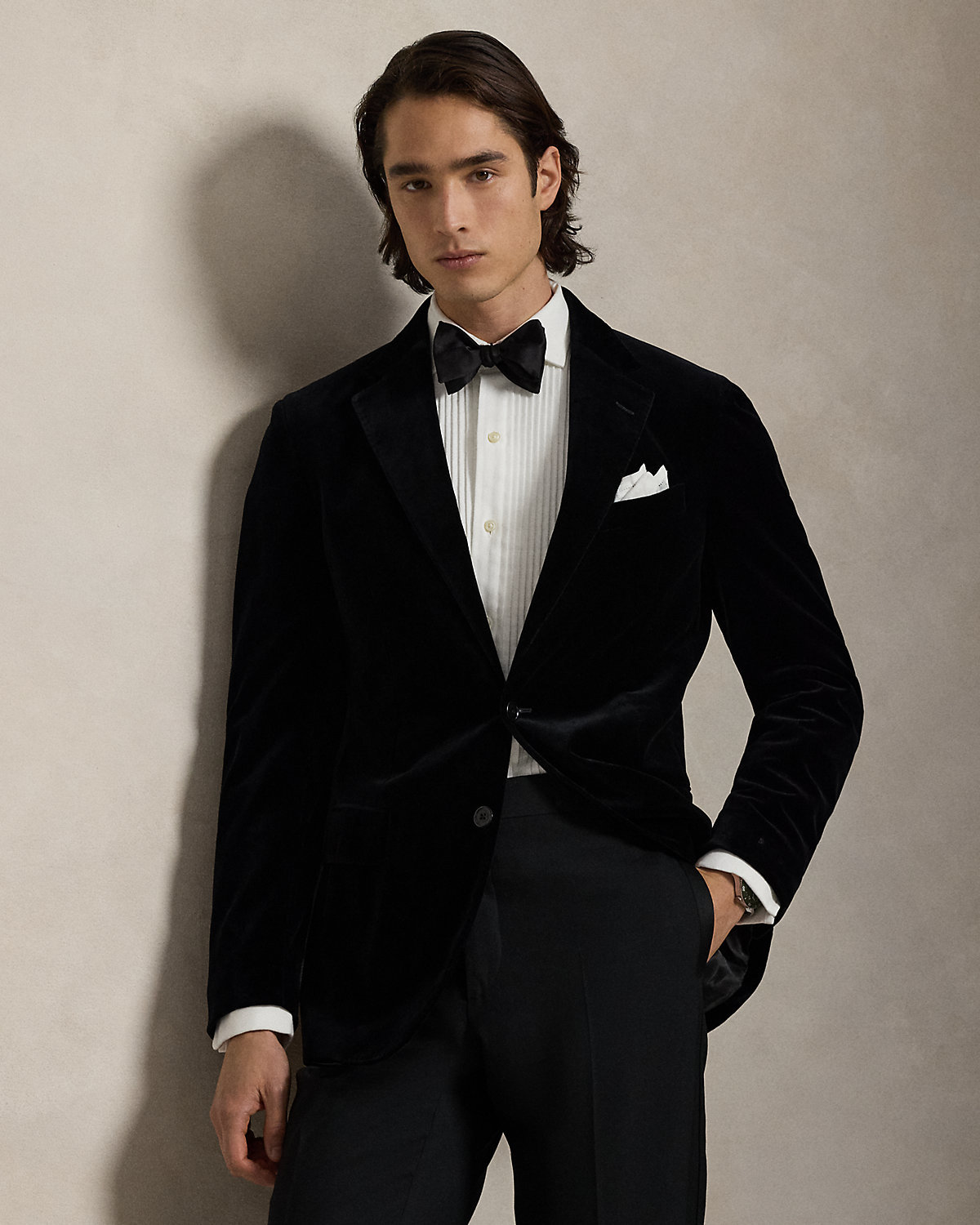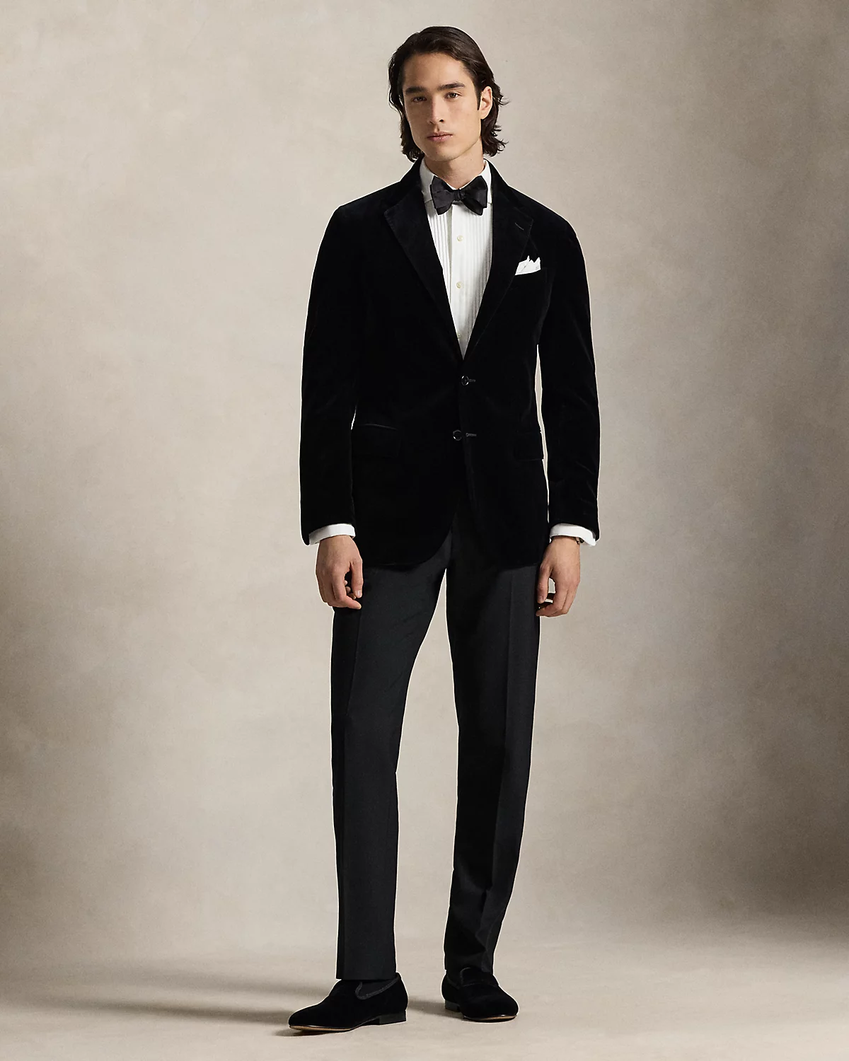 Our Polo Soft jacket puts a modern spin on classic preppy style with a natural shoulder and slightly structured chest. This version is crafted from plush Italian velvet for a luxurious look with a soft feel.