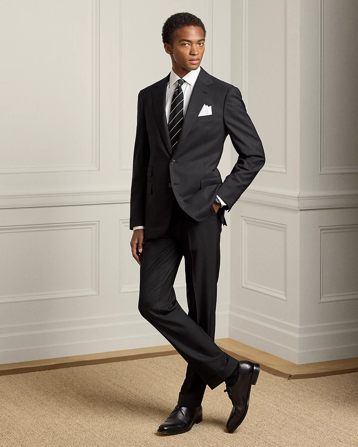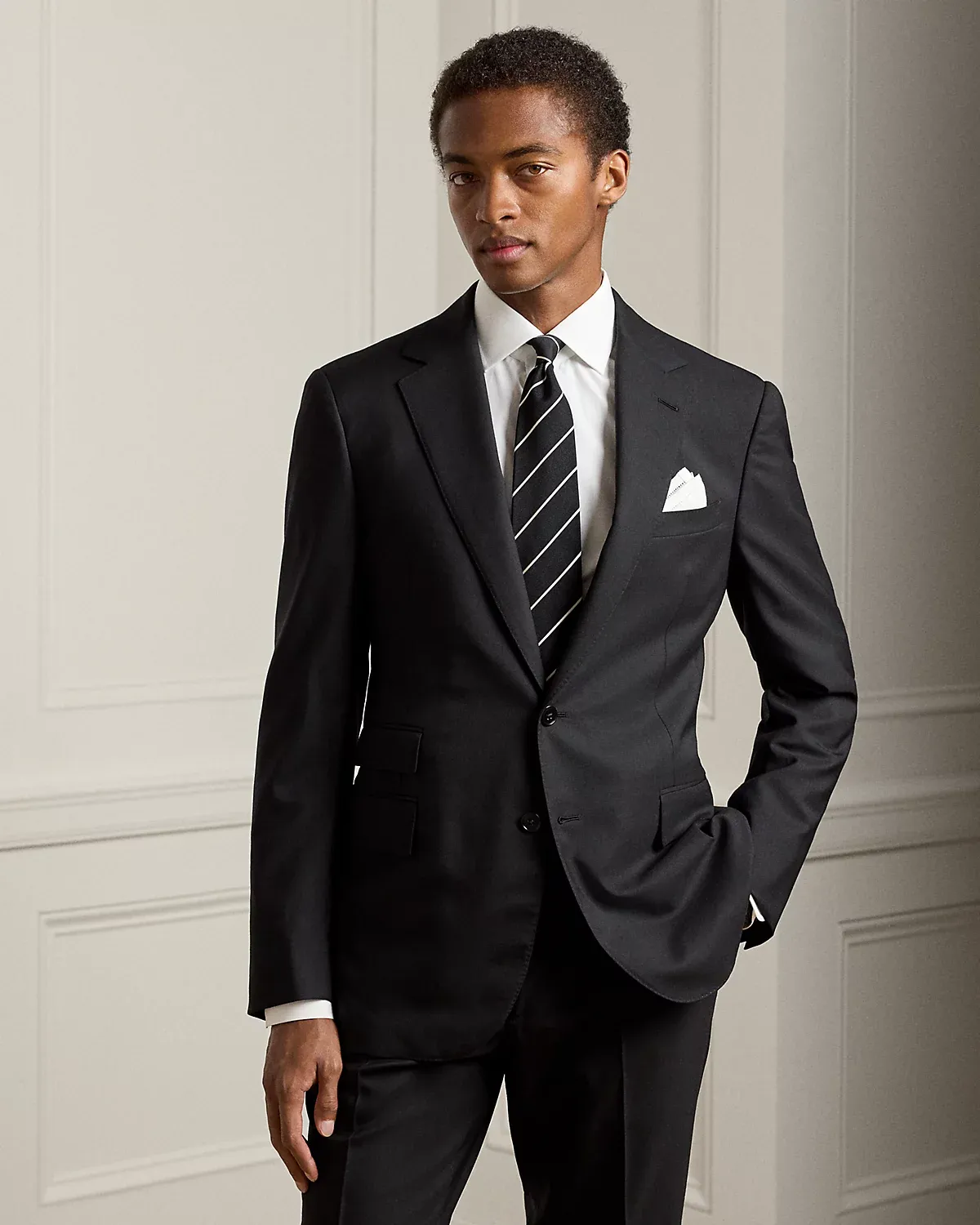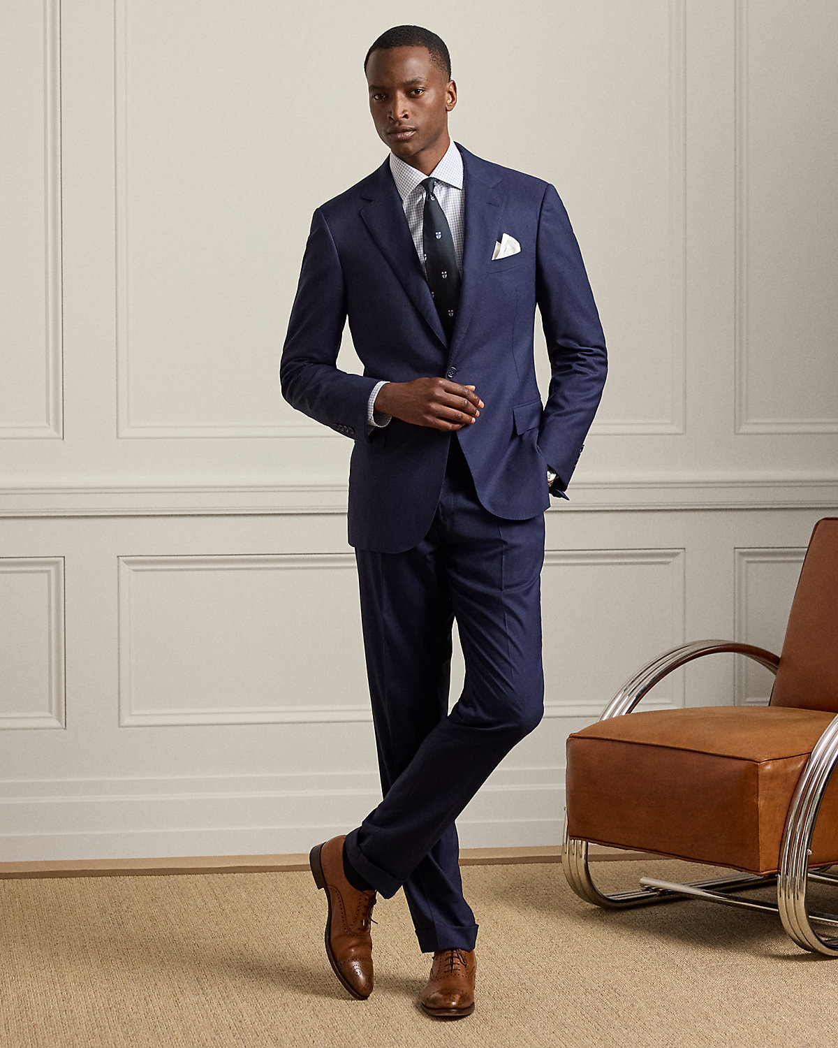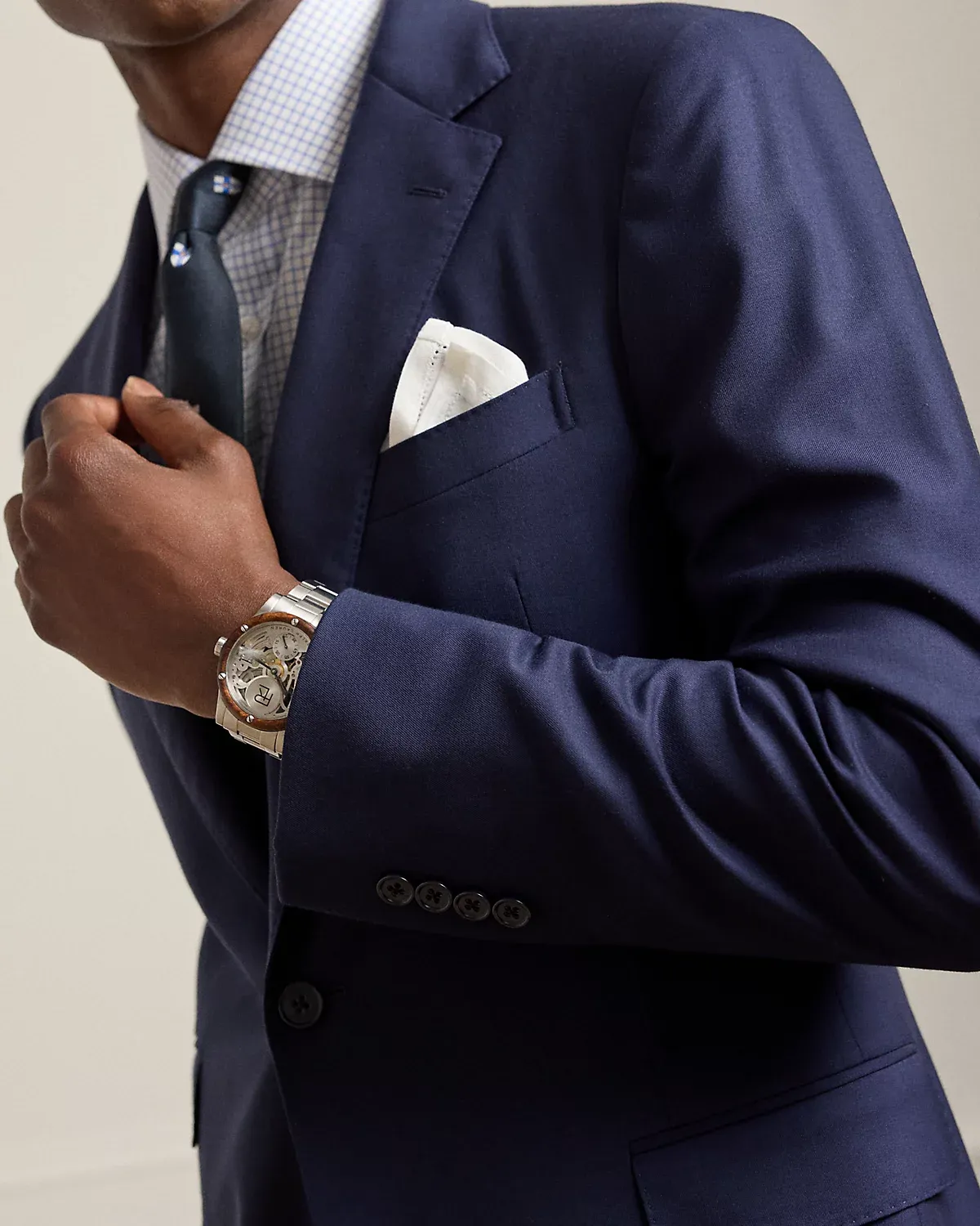The Gregory combines lightweight canvassing and a modern silhouette with Purple Label’s unparalleled quality and fine Italian craftsmanship. At the start of construction, pattern pieces are hand-cut by expert tailors, ensuring precision of the highest caliber. Custom-developed wool serge combined with considered details such as hand-sewn divholes and edges complete this signature suit.