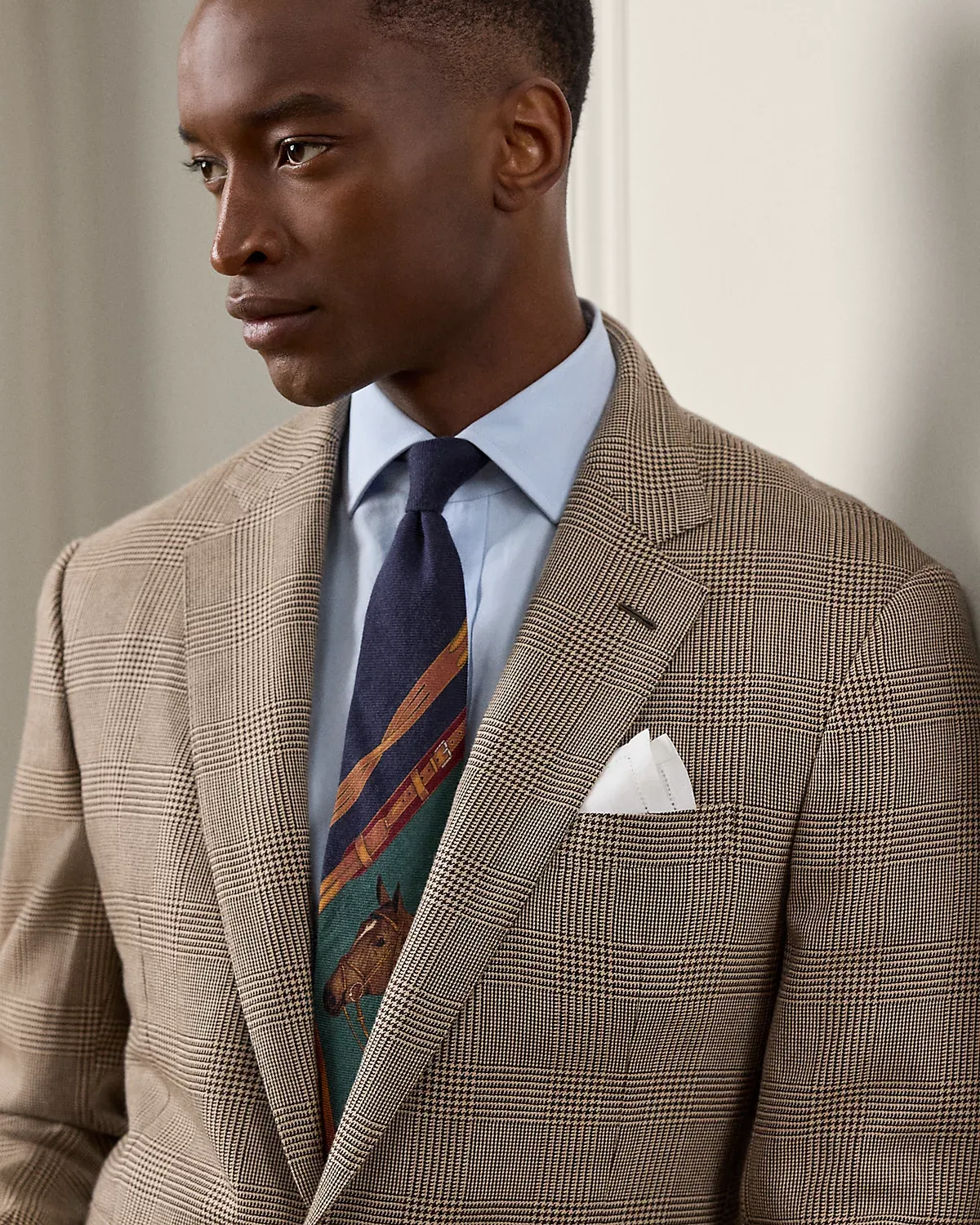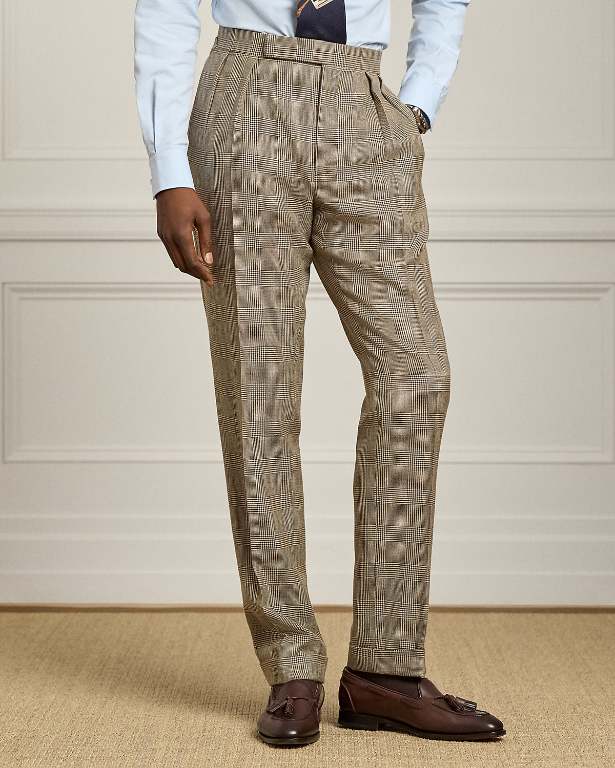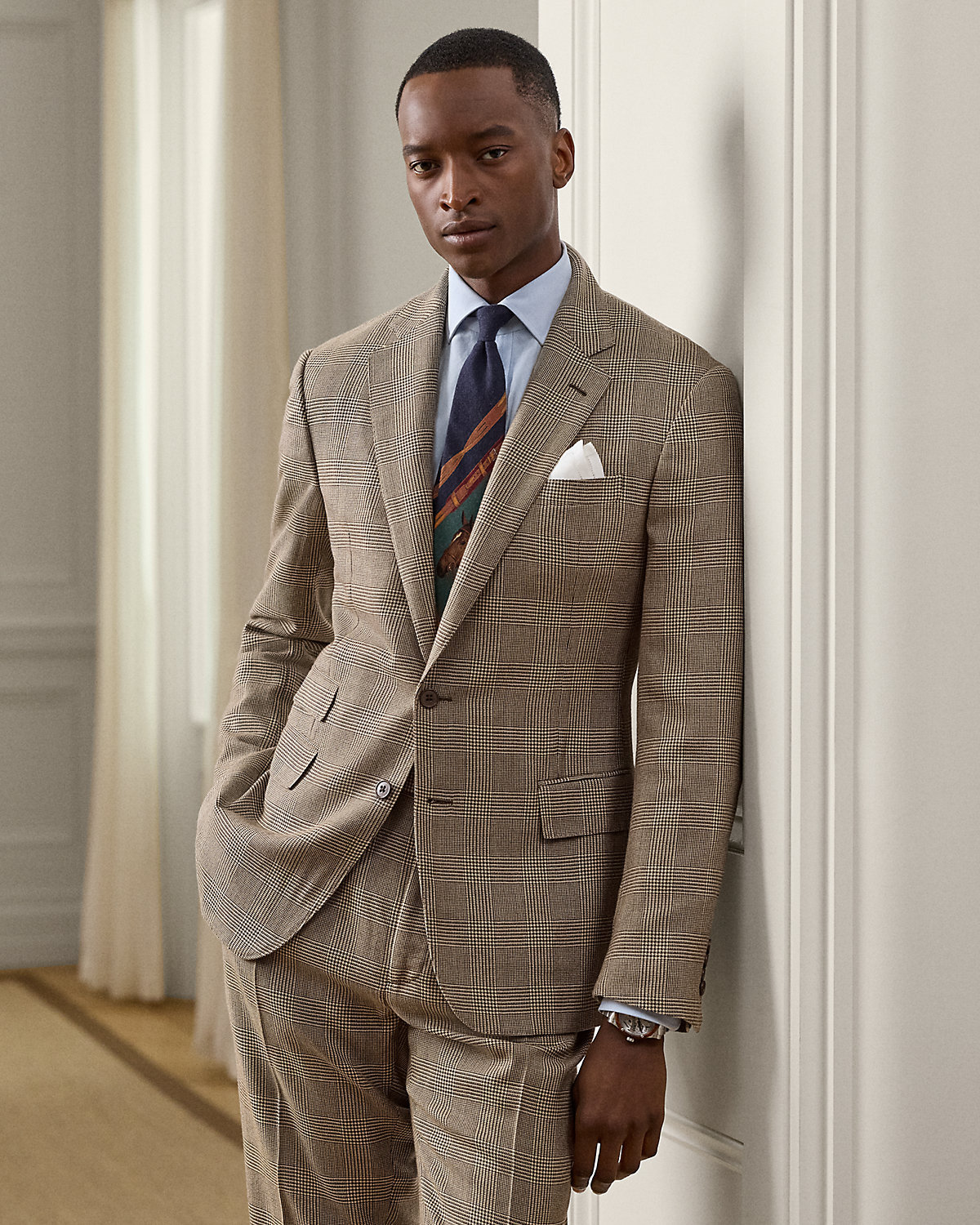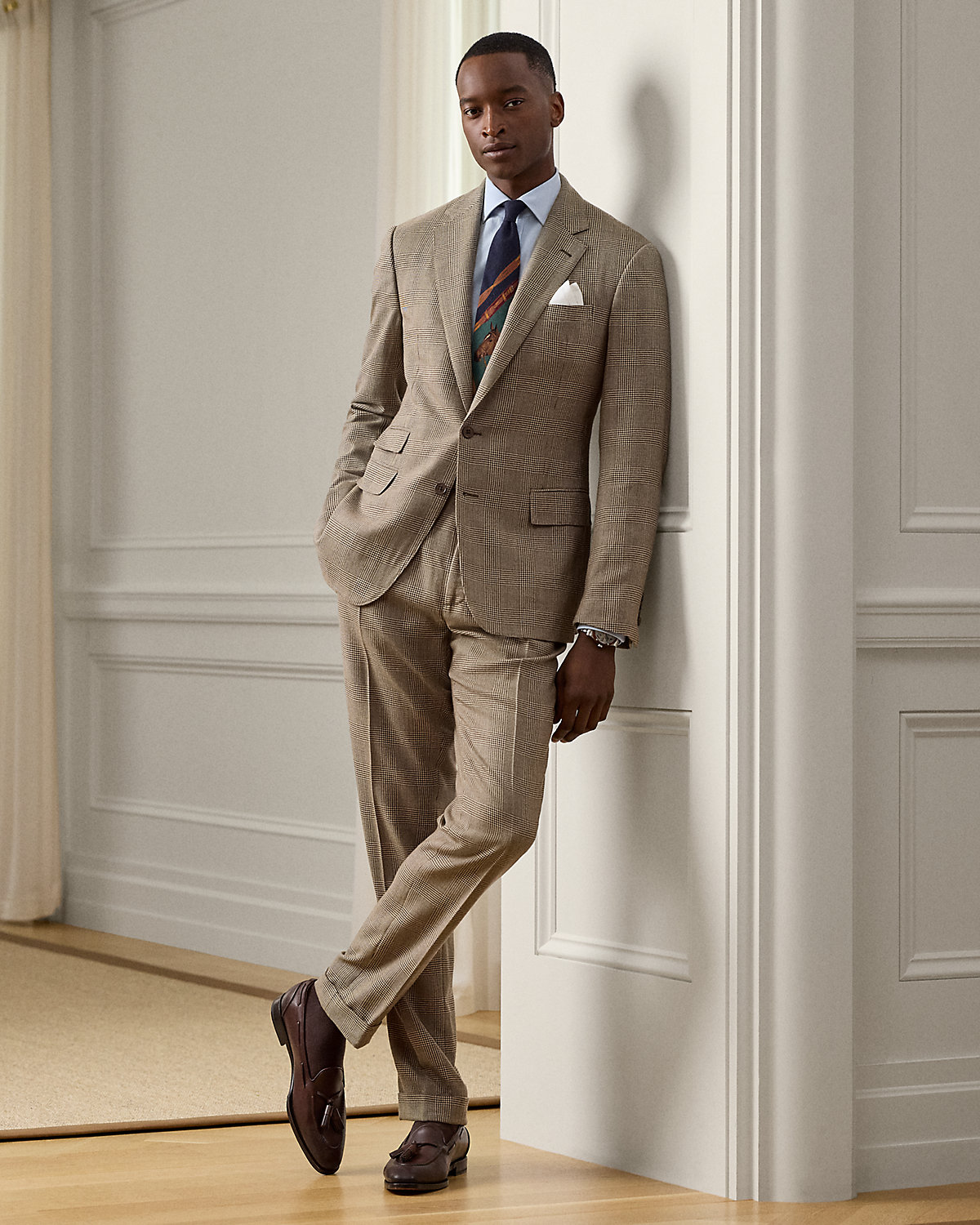 Hand-tailored in Italy, the Kent combines a lighter construction with fine canvassing and a soft shoulder to create a more natural profile. This version, which pairs with our double-pleated Gregory trousers, is crafted from one of Purple Label’s most iconic fabrications that is developed in a classic Ralpthth Lauren haberdashery pattern. The cashmere-and-wool twill was custom-woven by a renowned English mill that was founded in the late 1800s.