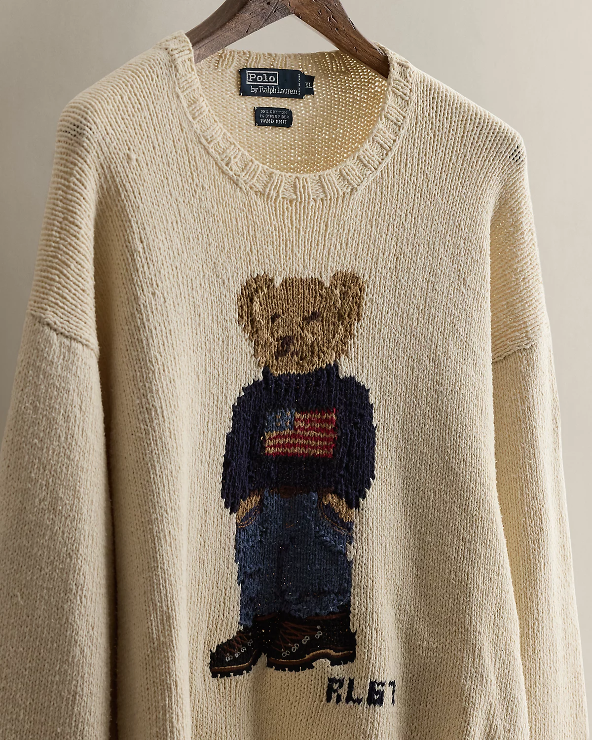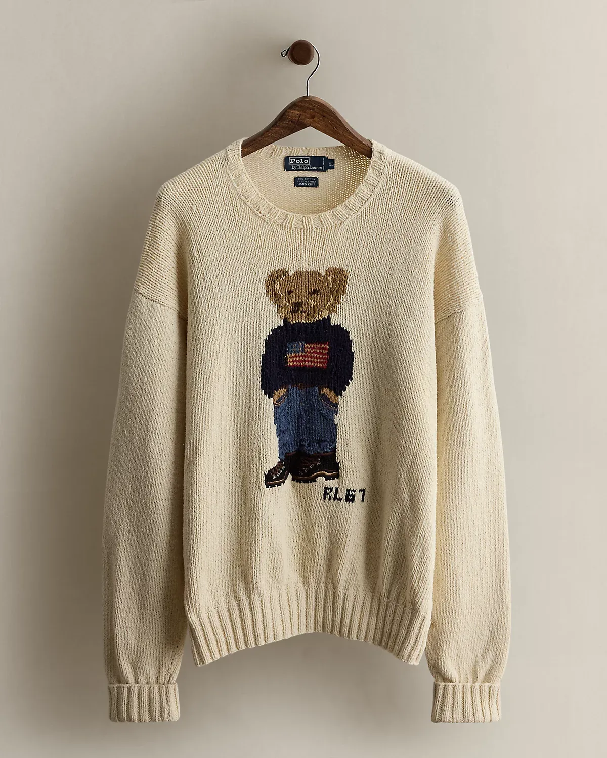 - Polo Bear and “RL 67” knit at the center front.