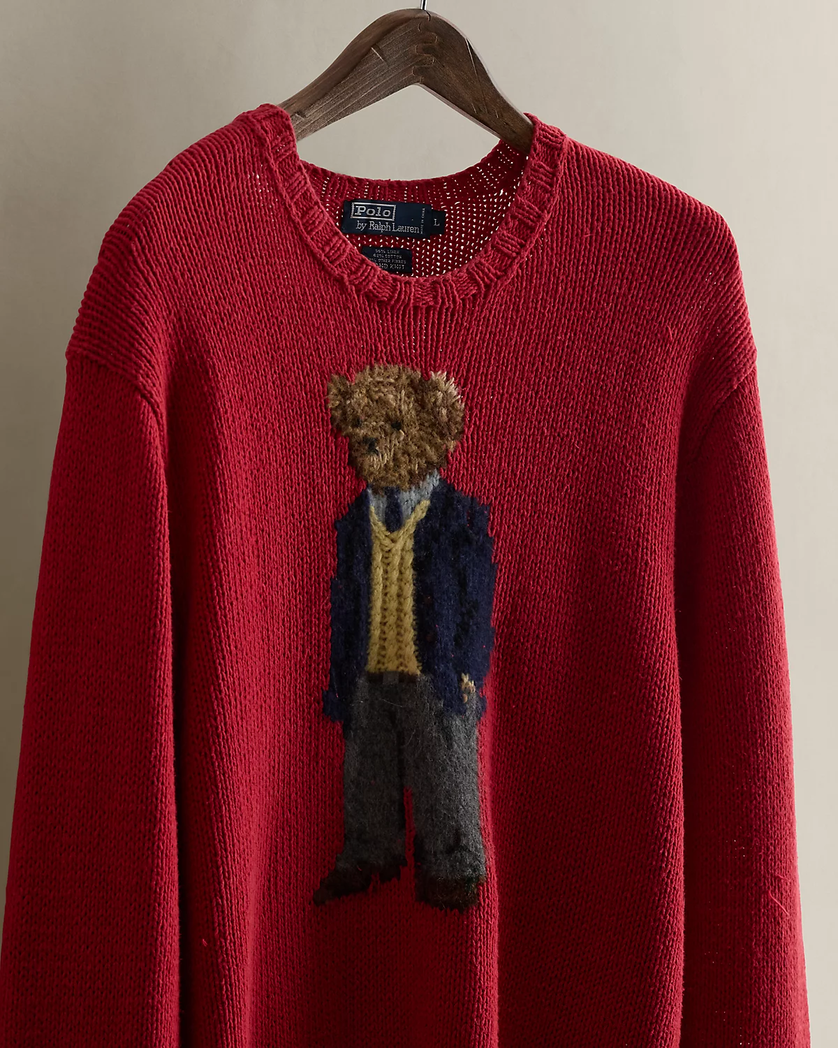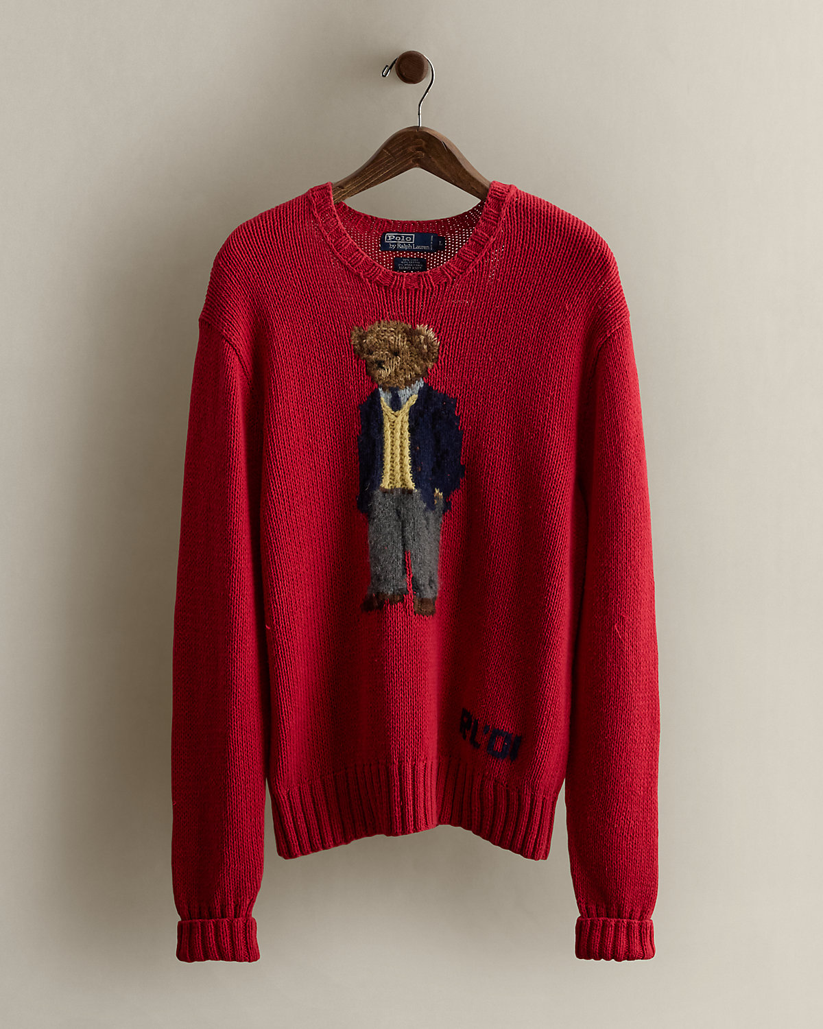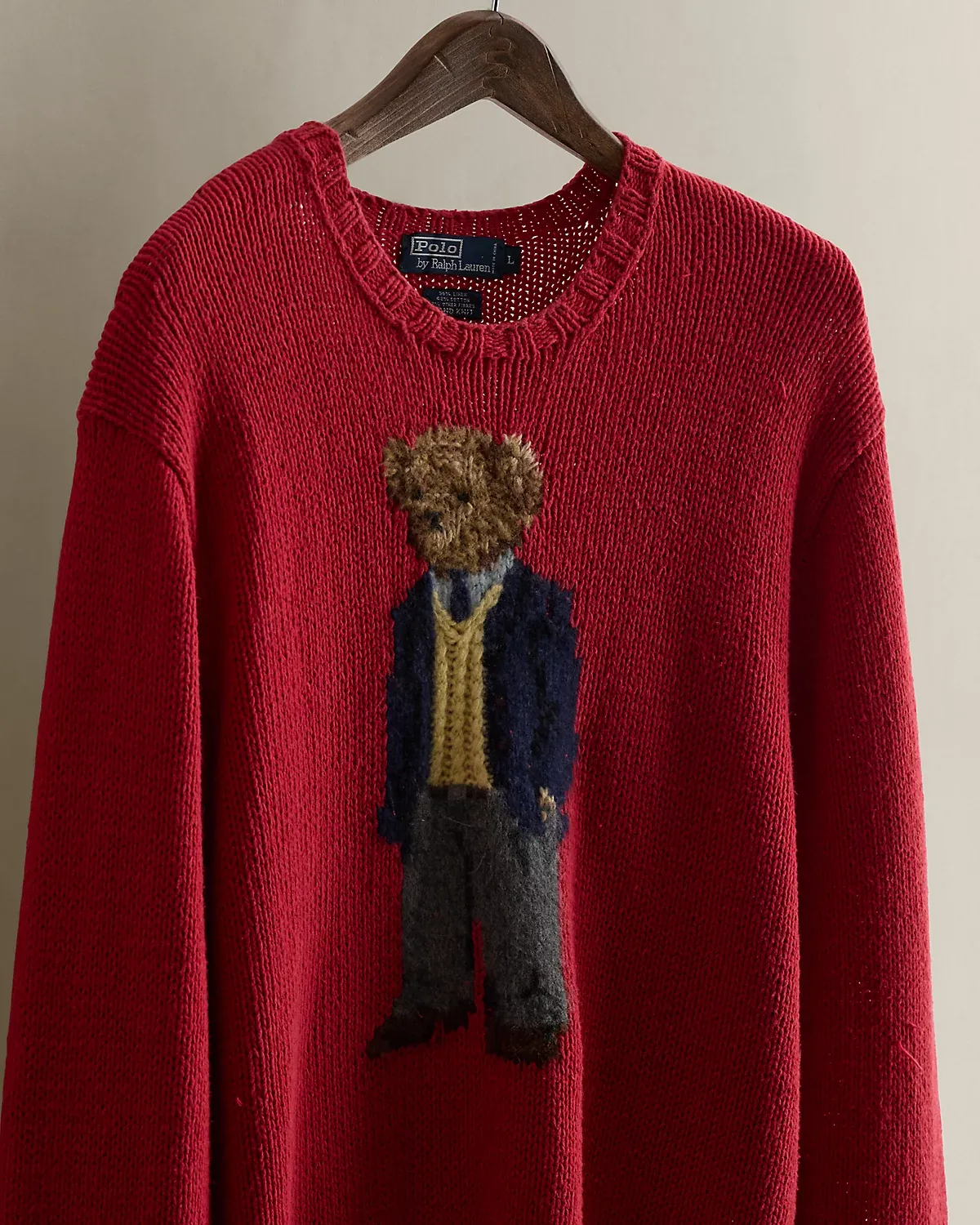 - Polo Bear knit at the center front.